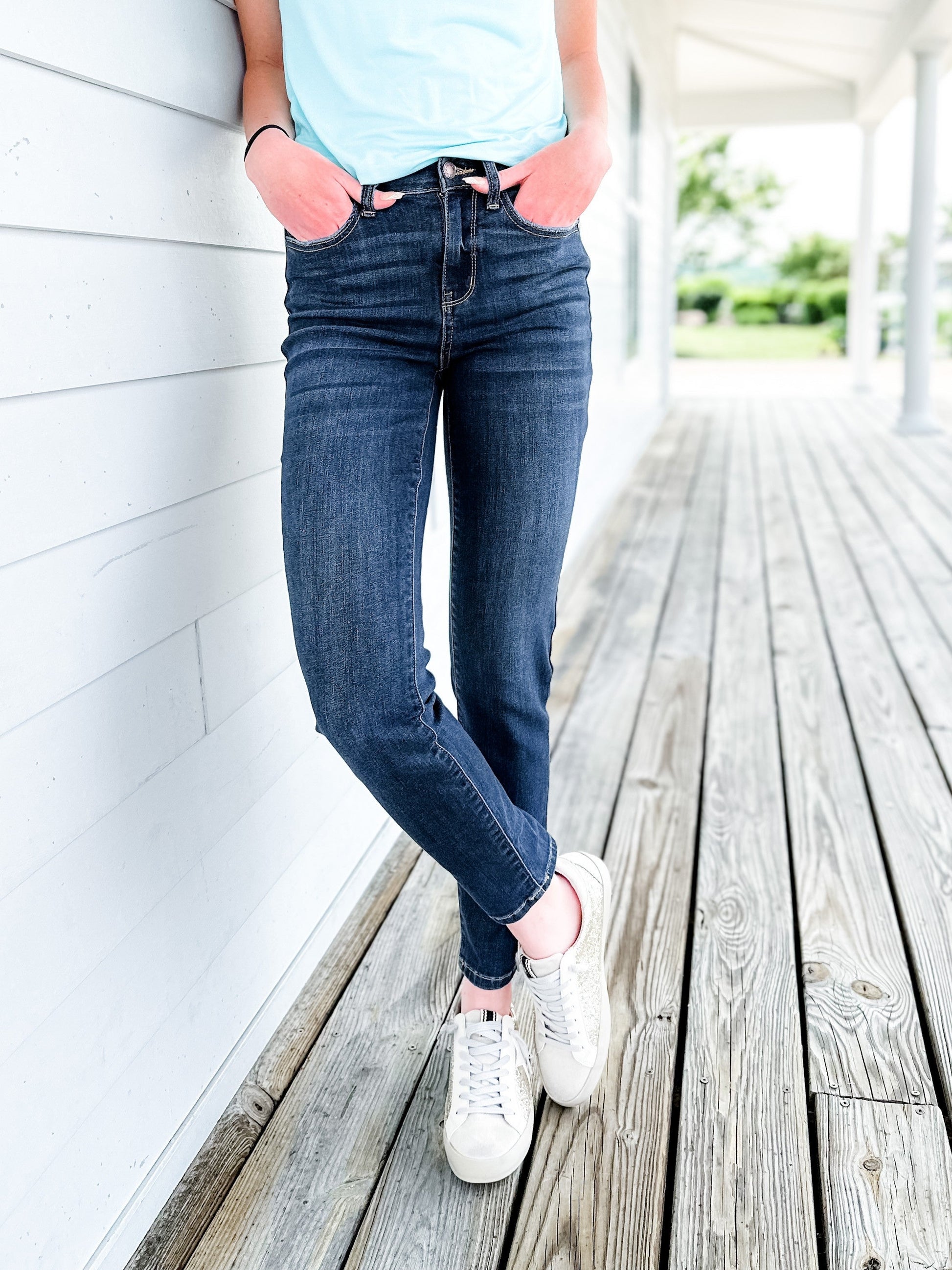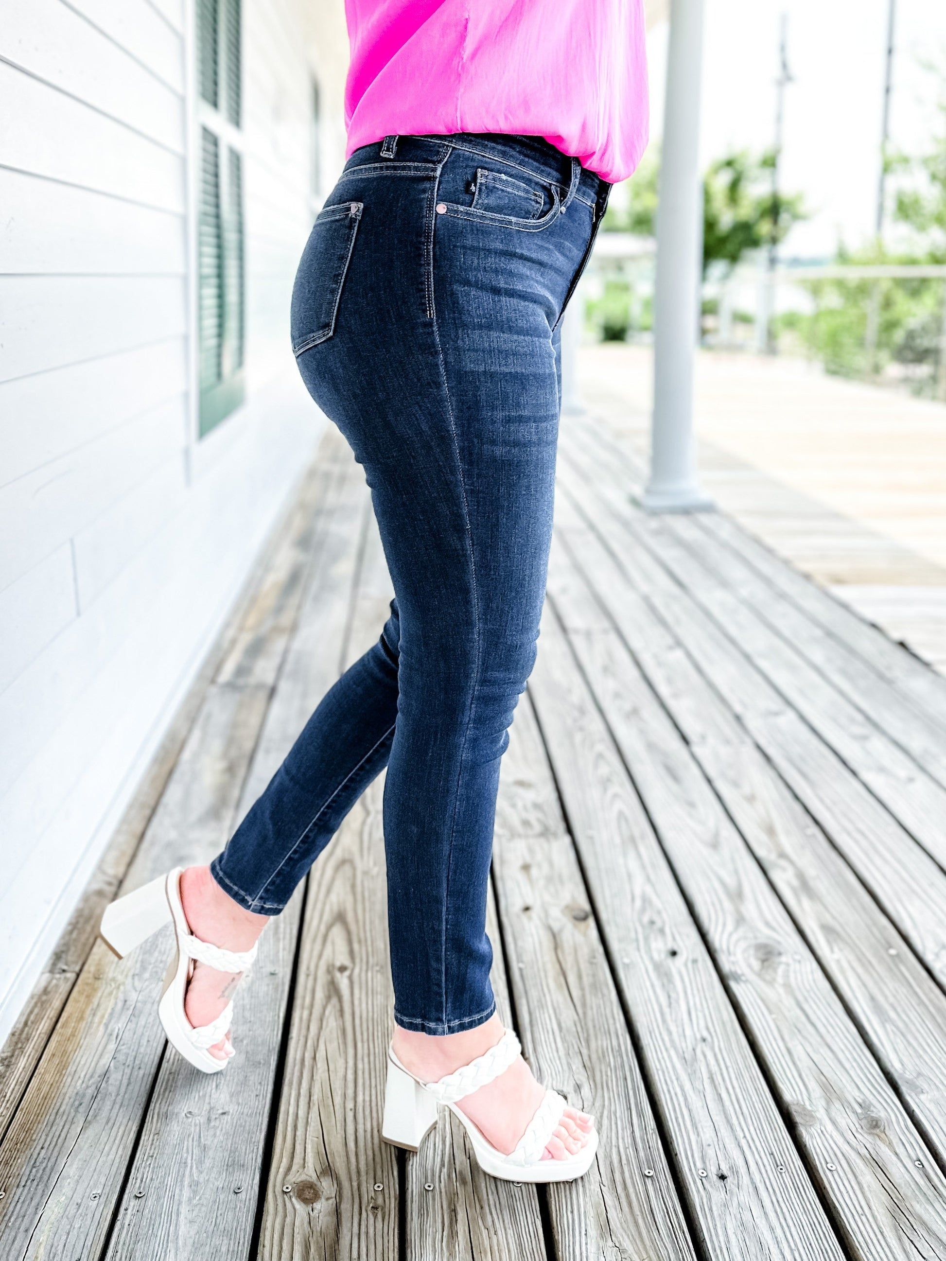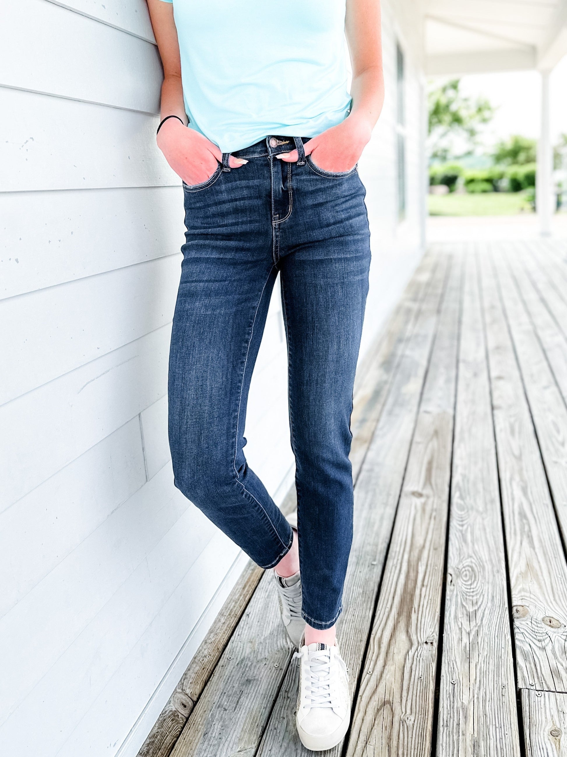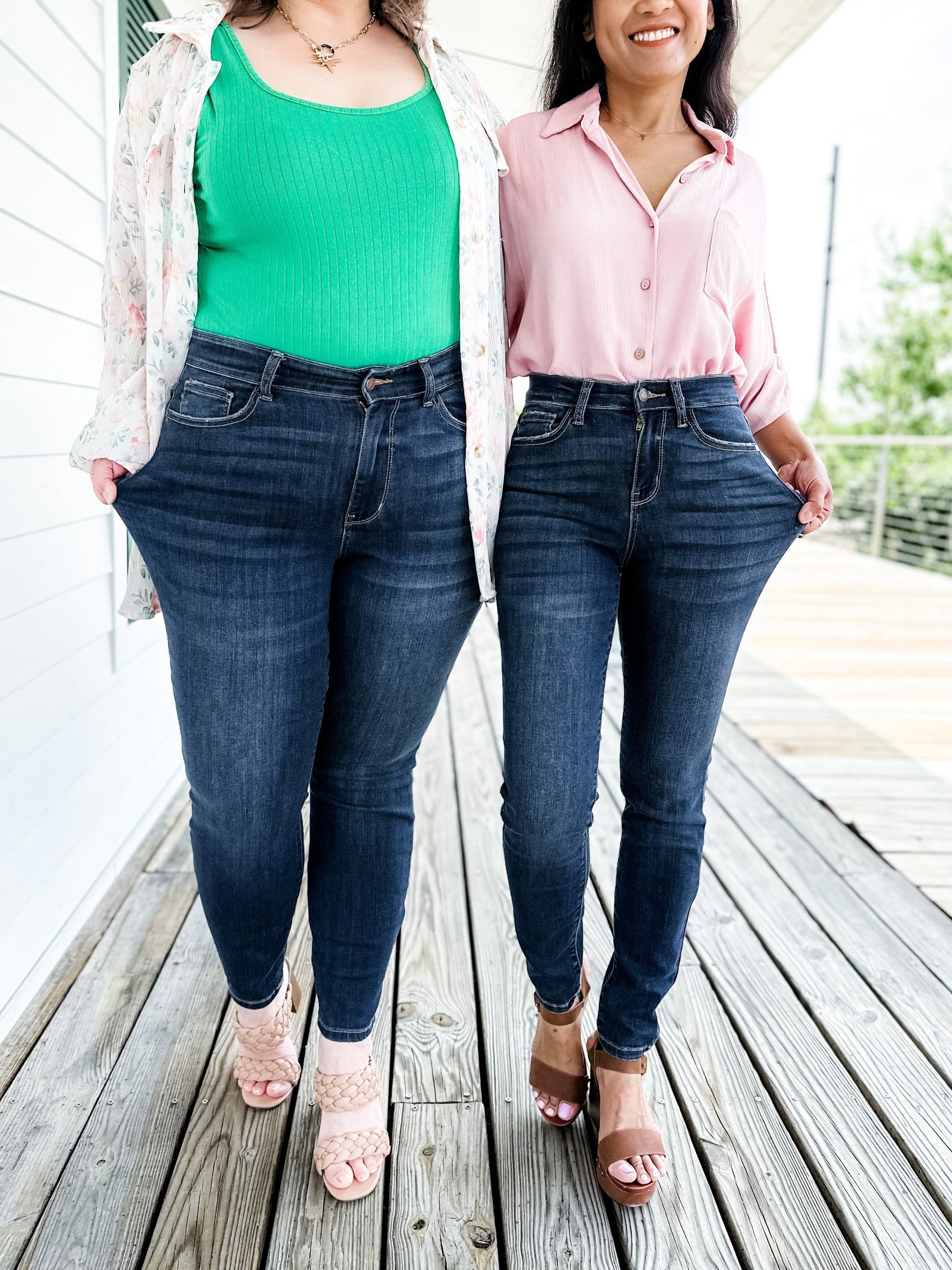 Next is fit for this pair: These are made from Judy Blue's softest and lightest weight denim! They have a subtle high rise, a slim relaxed fit, and INSANE STRETCH with instant recovery (they don't stretch out!
