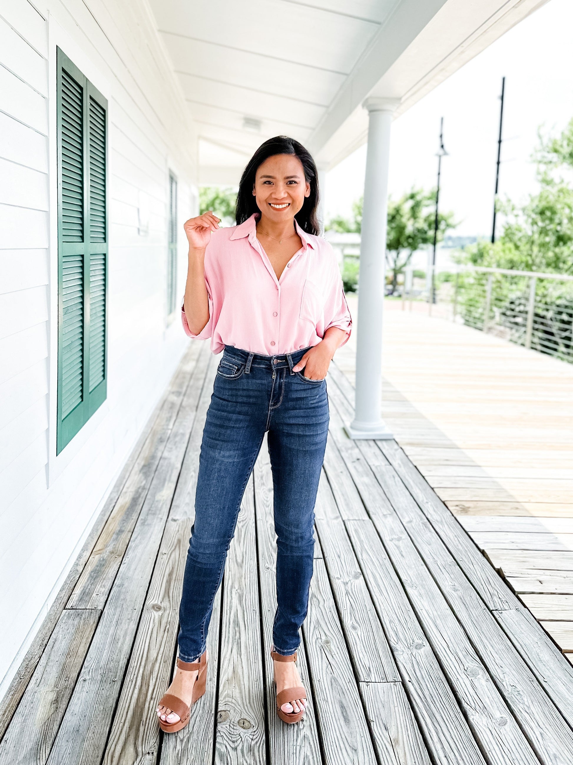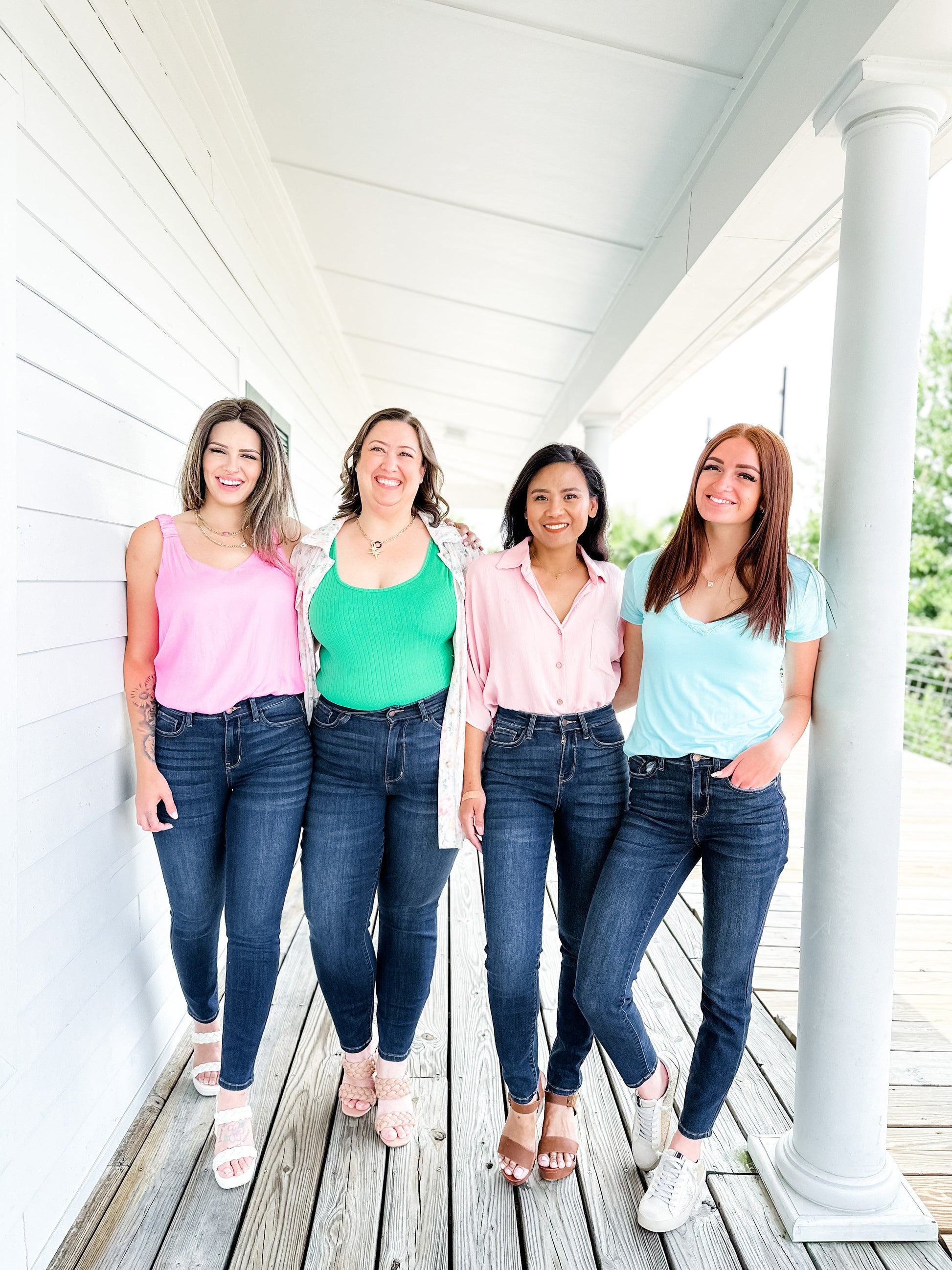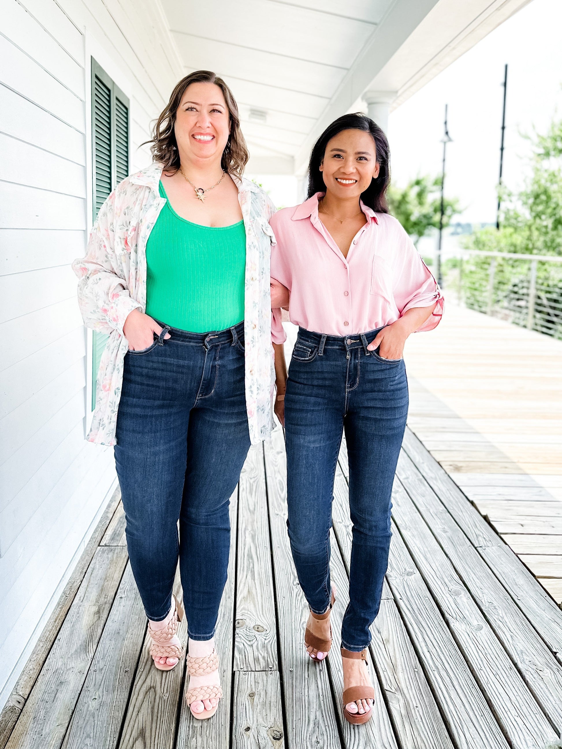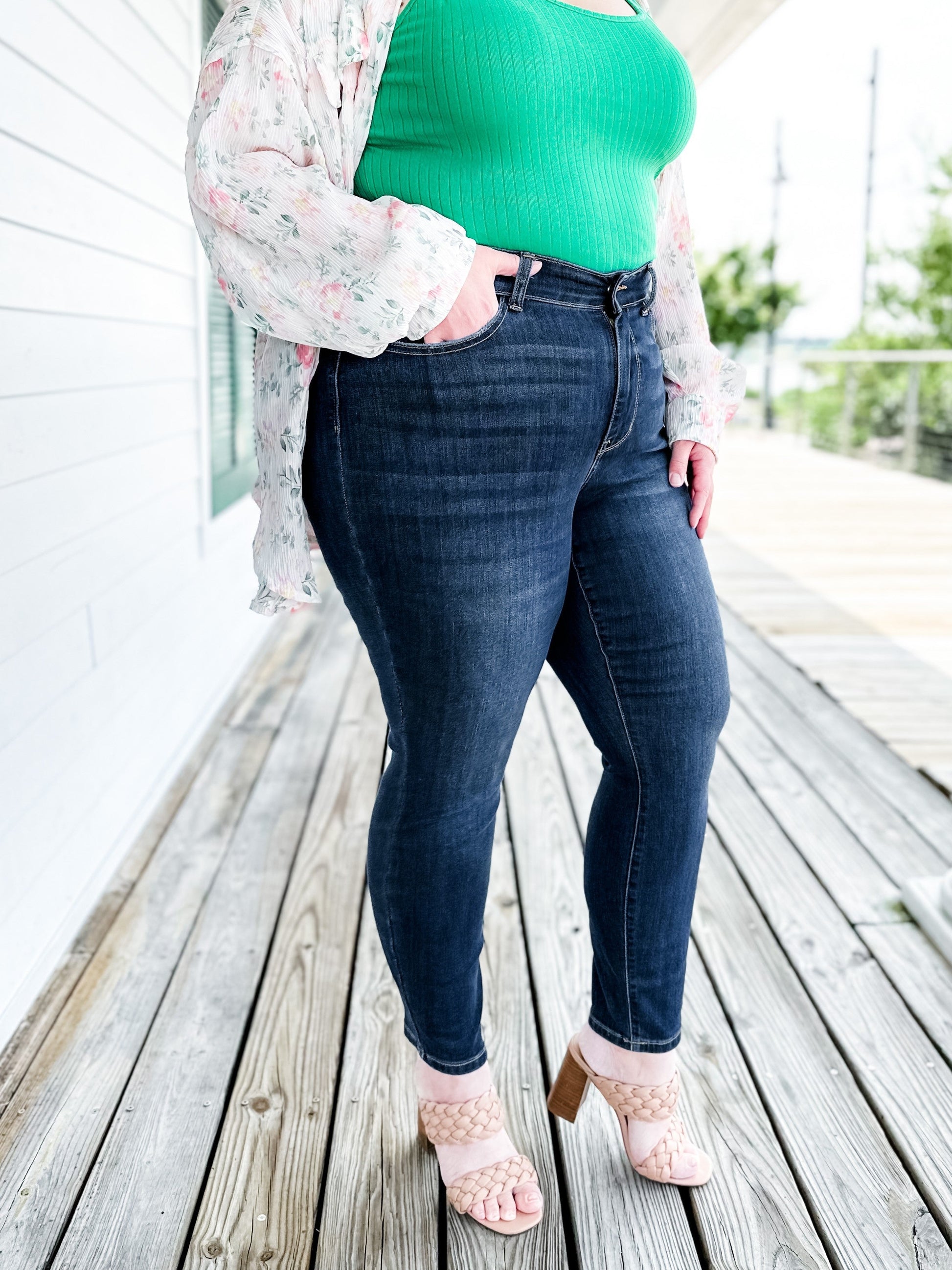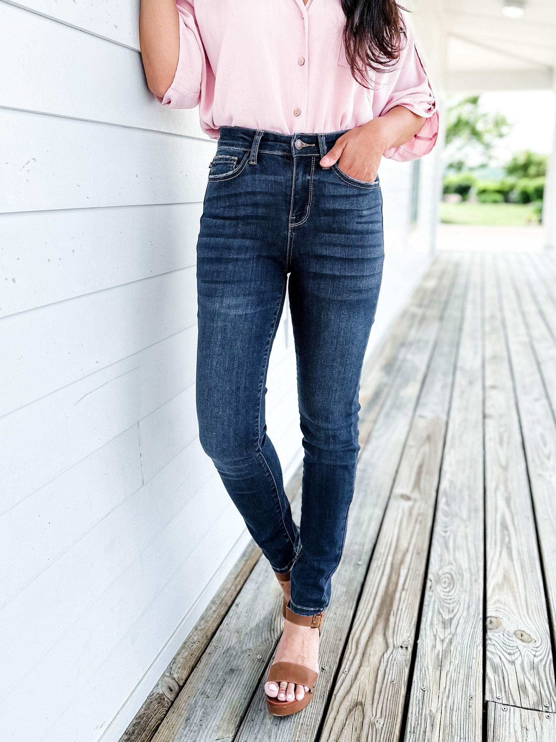 Next is fit for this pair: These are made from Judy Blue's softest and lightest weight denim! They have a subtle high rise, a slim relaxed fit, and INSANE STRETCH with instant recovery (they don't stretch out!