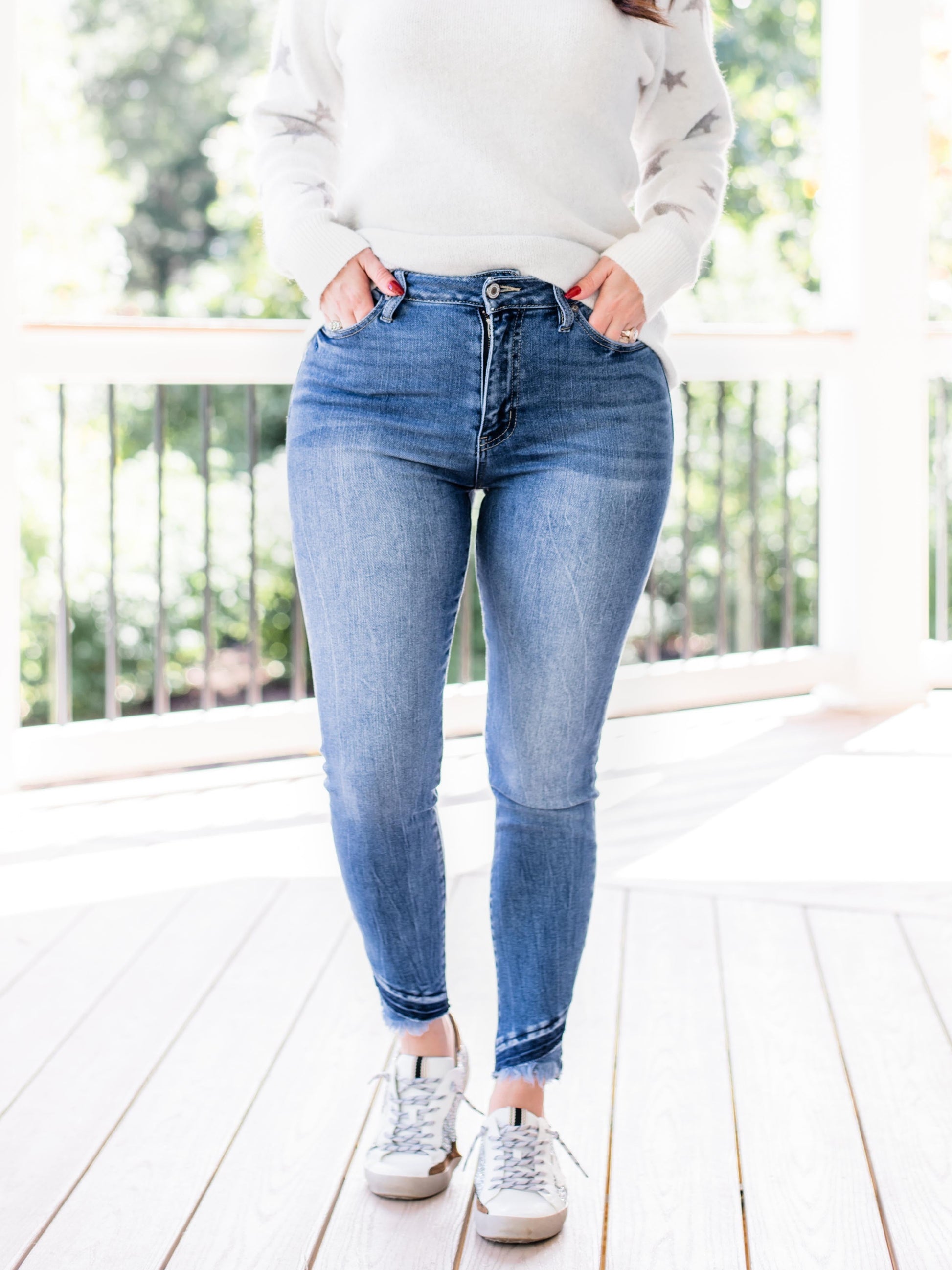 KanCan Medium Wash Skinny Jeans with Hem Detail