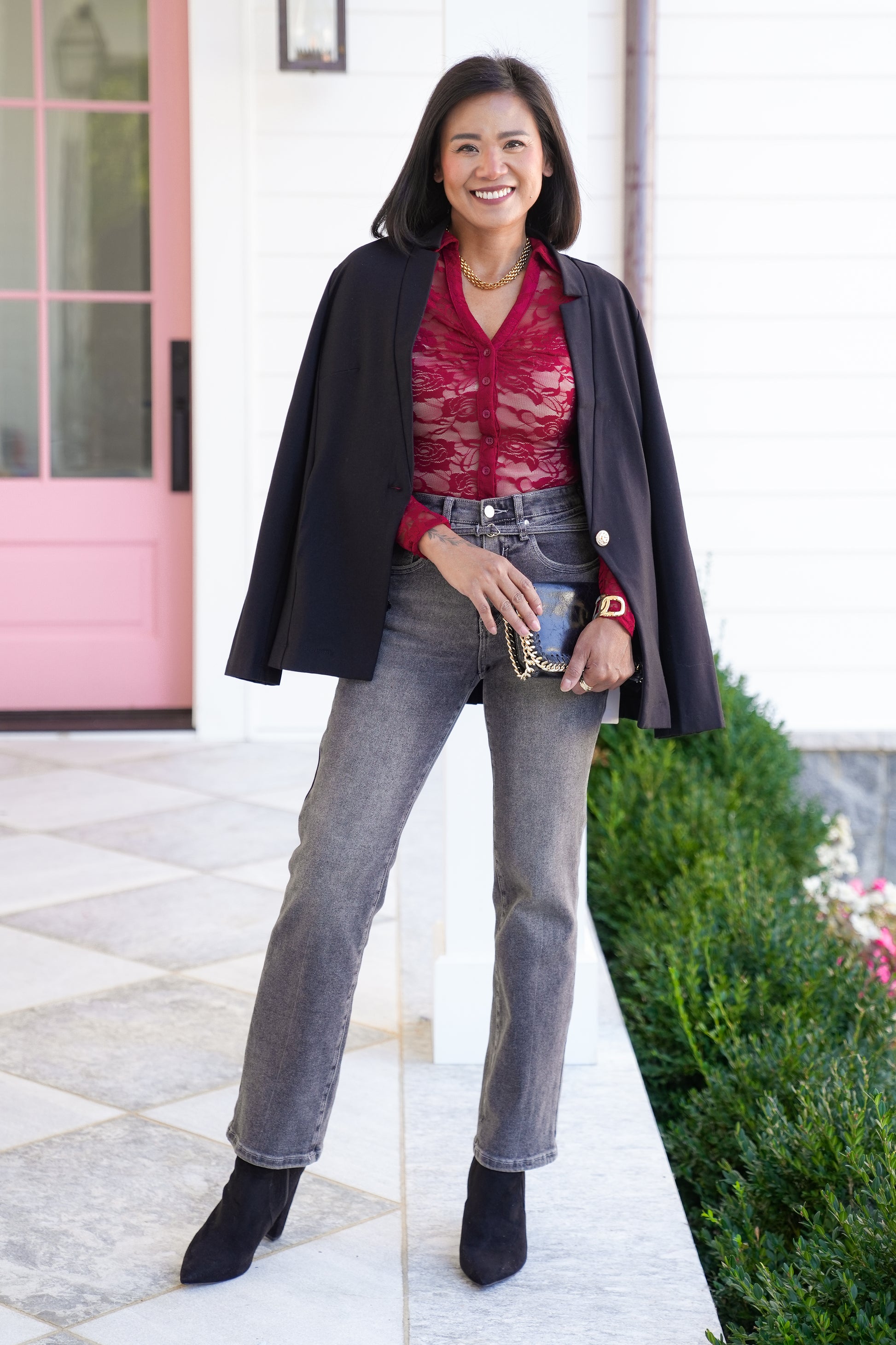 This top brings instant edge with a confident, dressed-up feel. The lace mesh design adds drama while still feeling wearable, and the button up front lets you control the vibe from layered and subtle to bold and styled. Wear it over a bralette with denim for a night-out look, or layer it under a blazer for a sleek, impactful look.