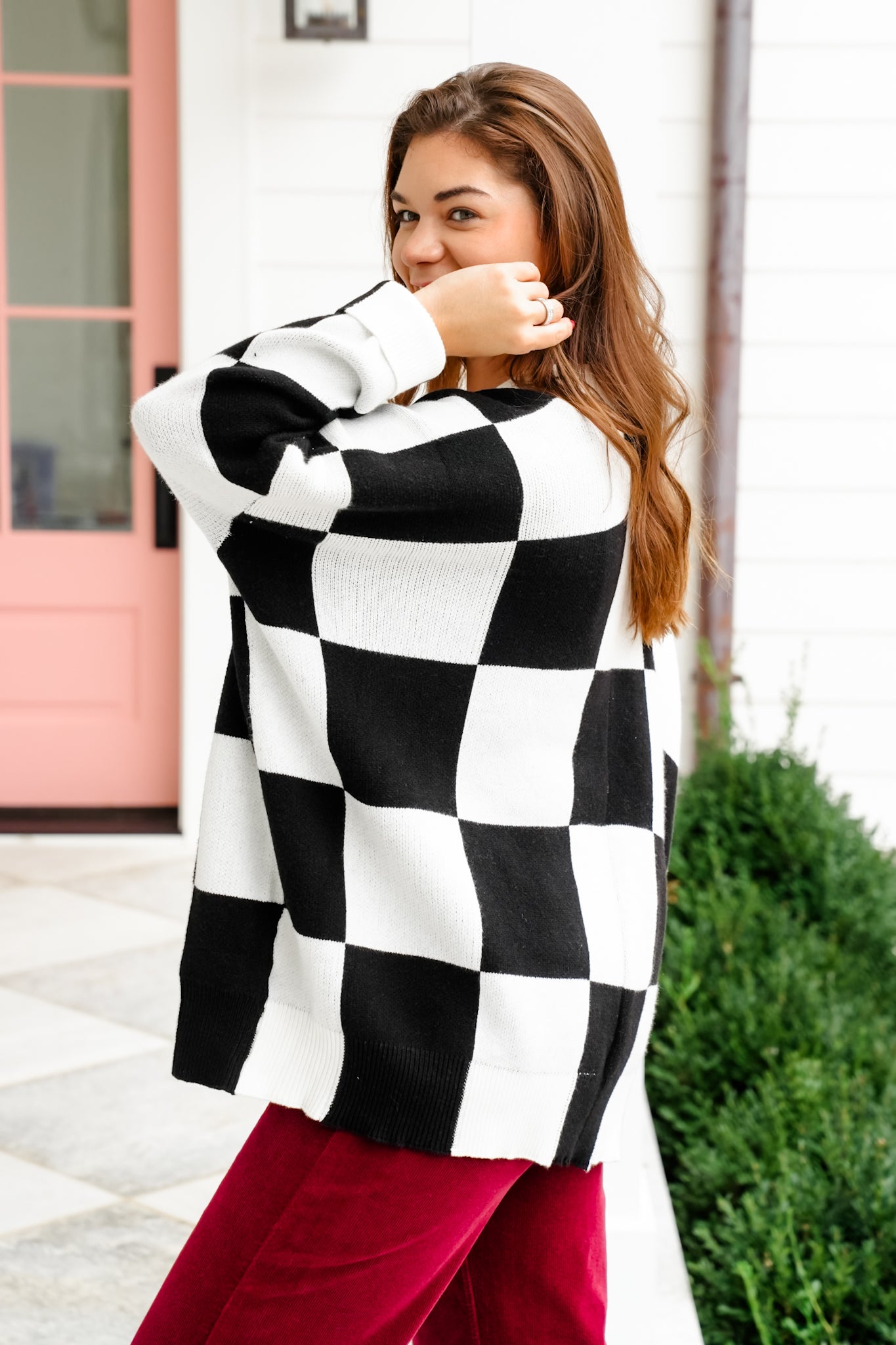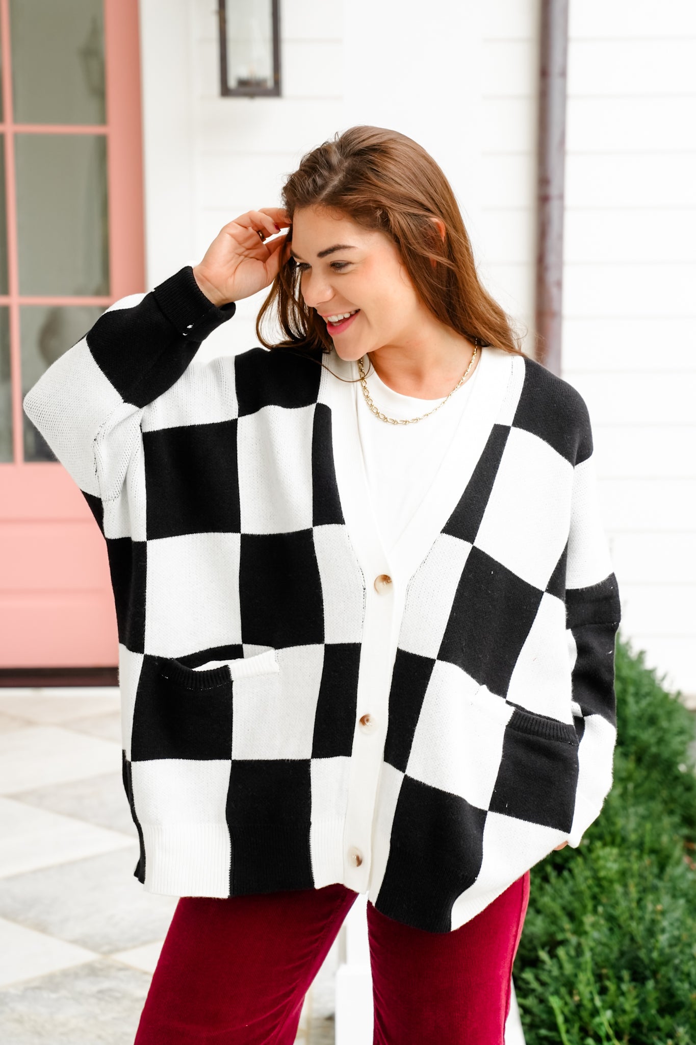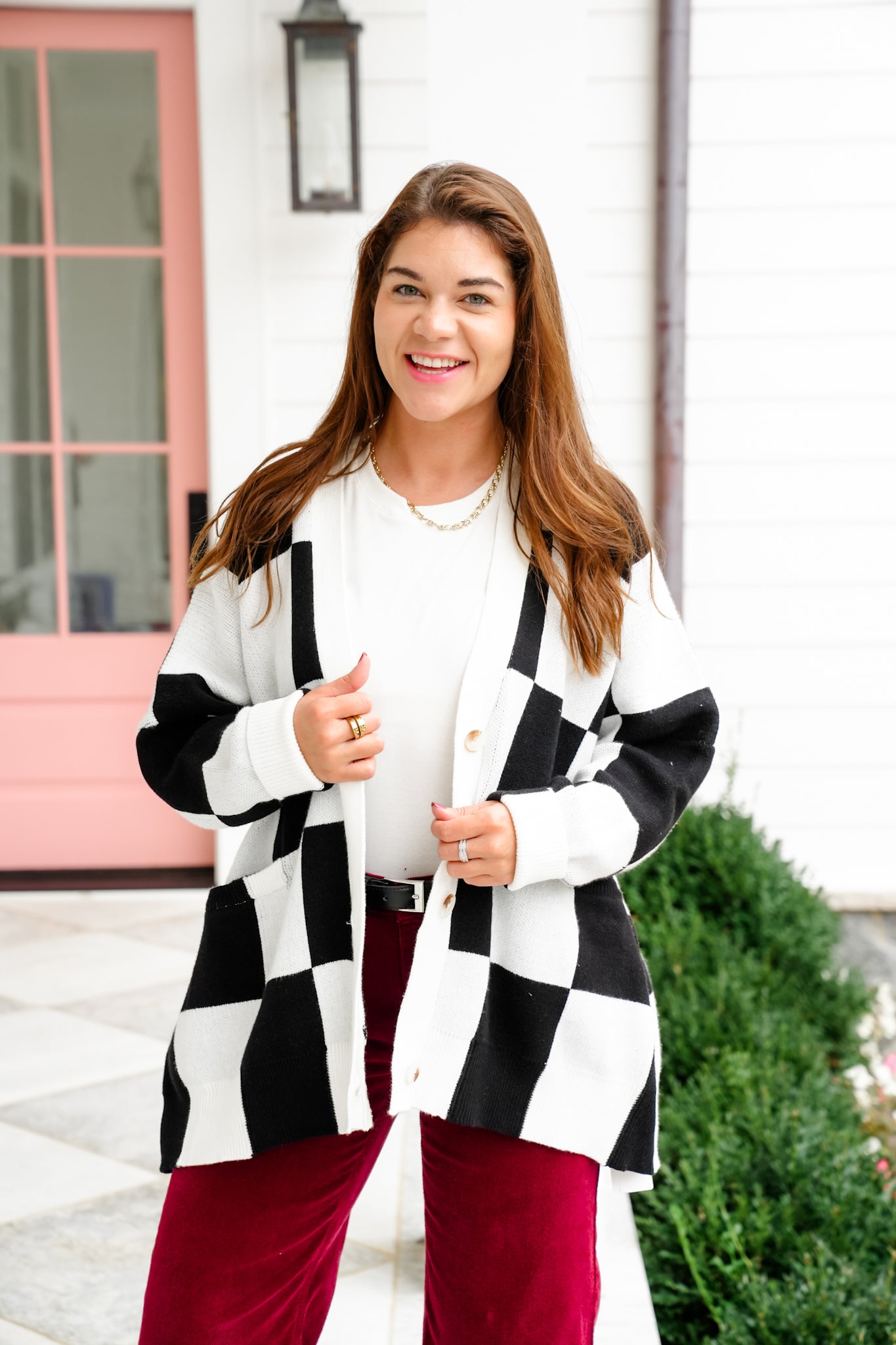 This cardigan is pure statement style. The oversized checker pattern feels modern and bold, while the soft knit makes it cozy enough for everyday wear. Style with denim and a simple tee for instant boutique vibes, or belt it for a chic layered look.