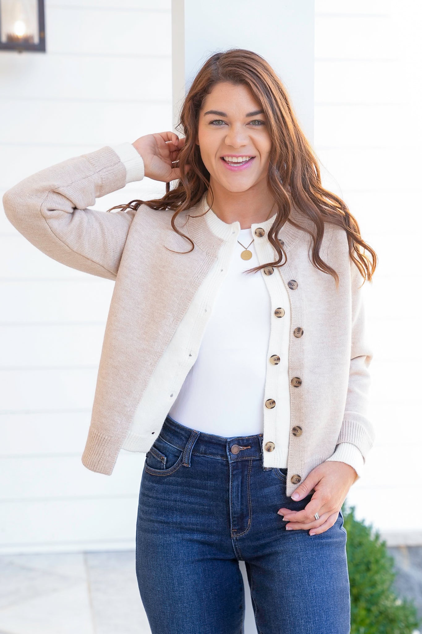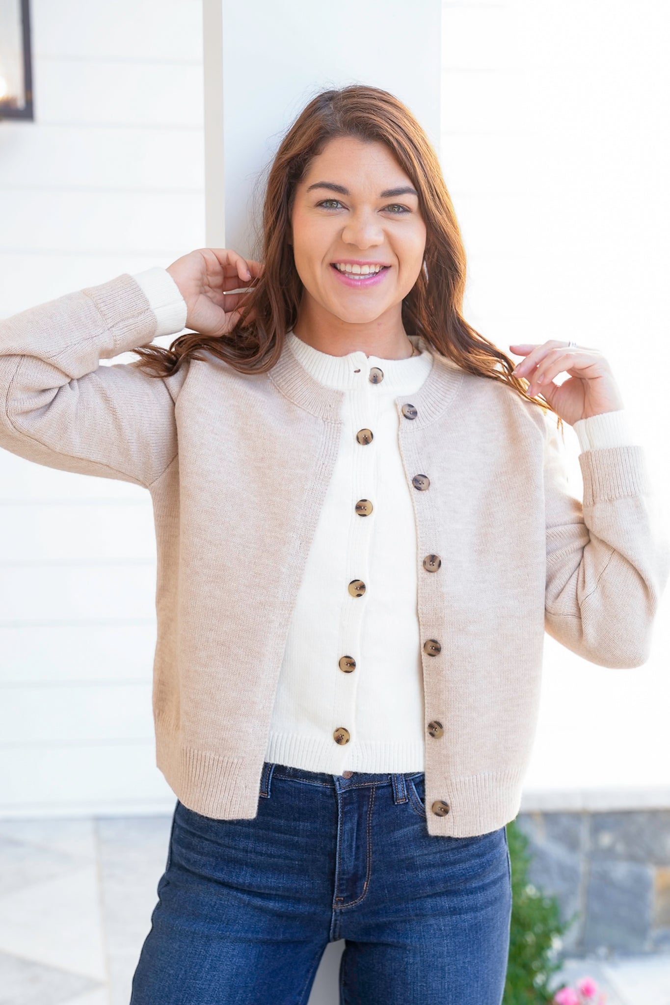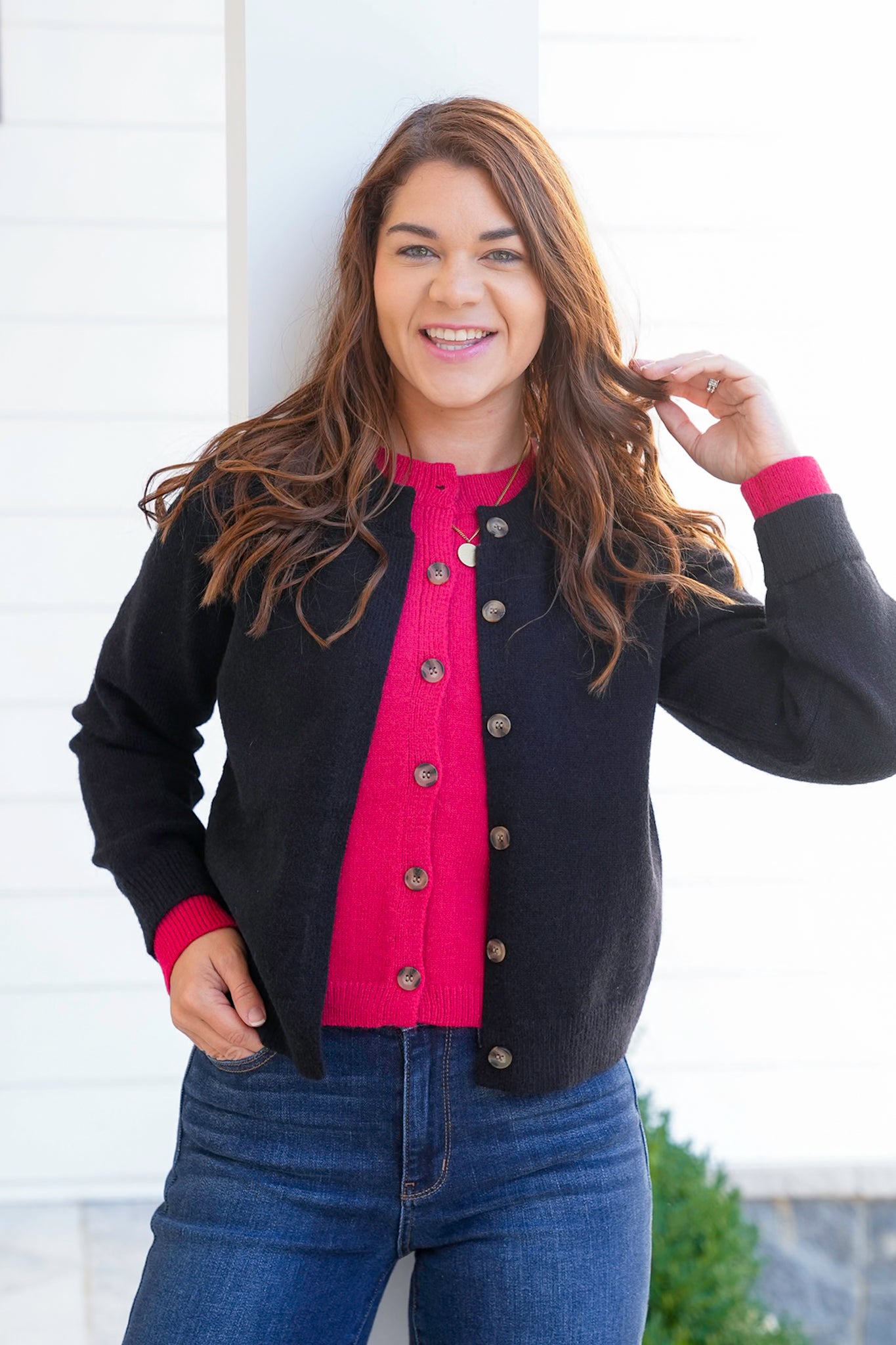 This knit, layered-look cardigan is the perfect layering piece that blends timeless style with everyday ease. With its functional button closure and soft knit feel, it adds just the right touch of cozy polish to any outfit.