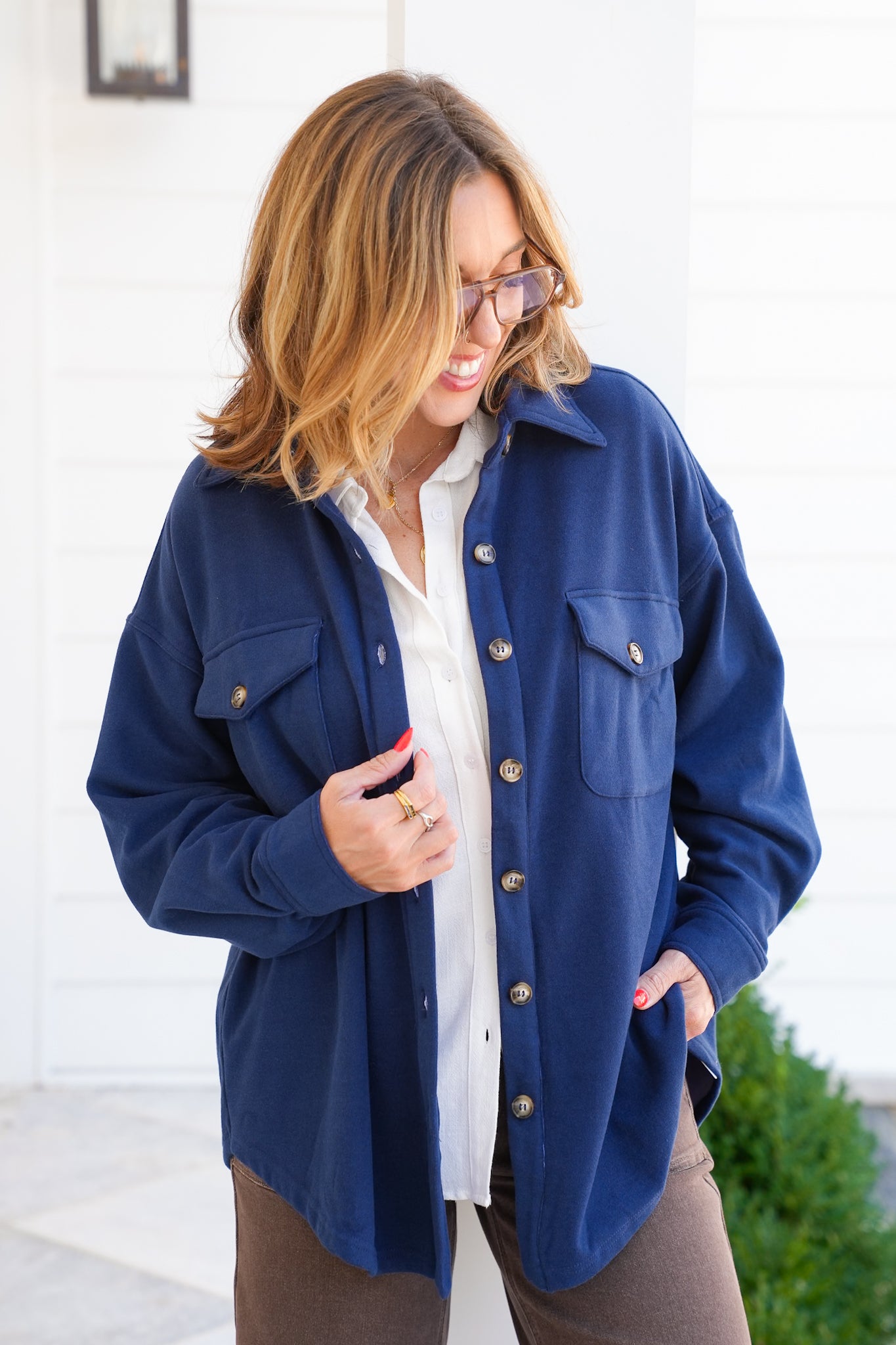 This knit shacket is the perfect blend of shirt and jacket, giving you that layered look without any bulk. With its soft inside, stretchy fabric, and easy button-down front, it’s an effortless throw-on piece that works from casual days out to cozy nights in.