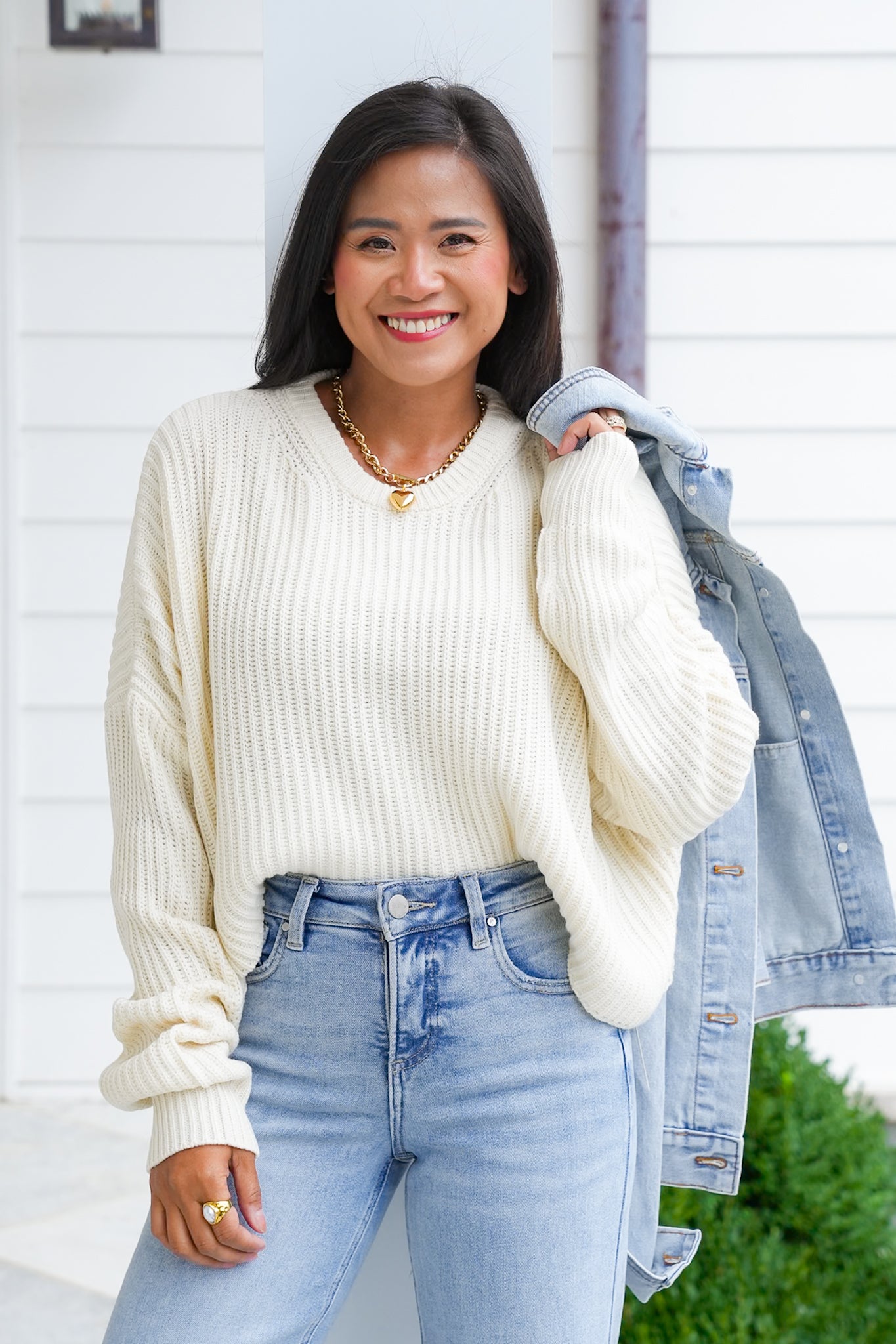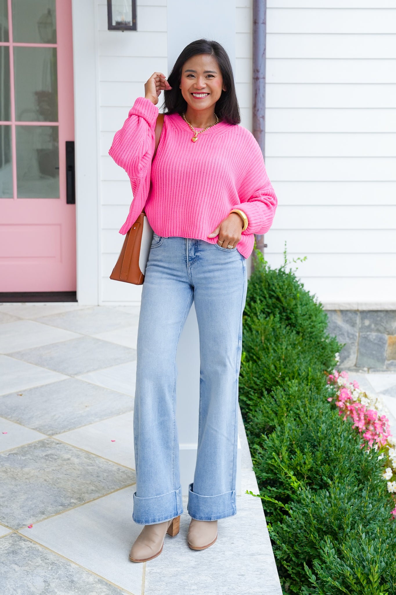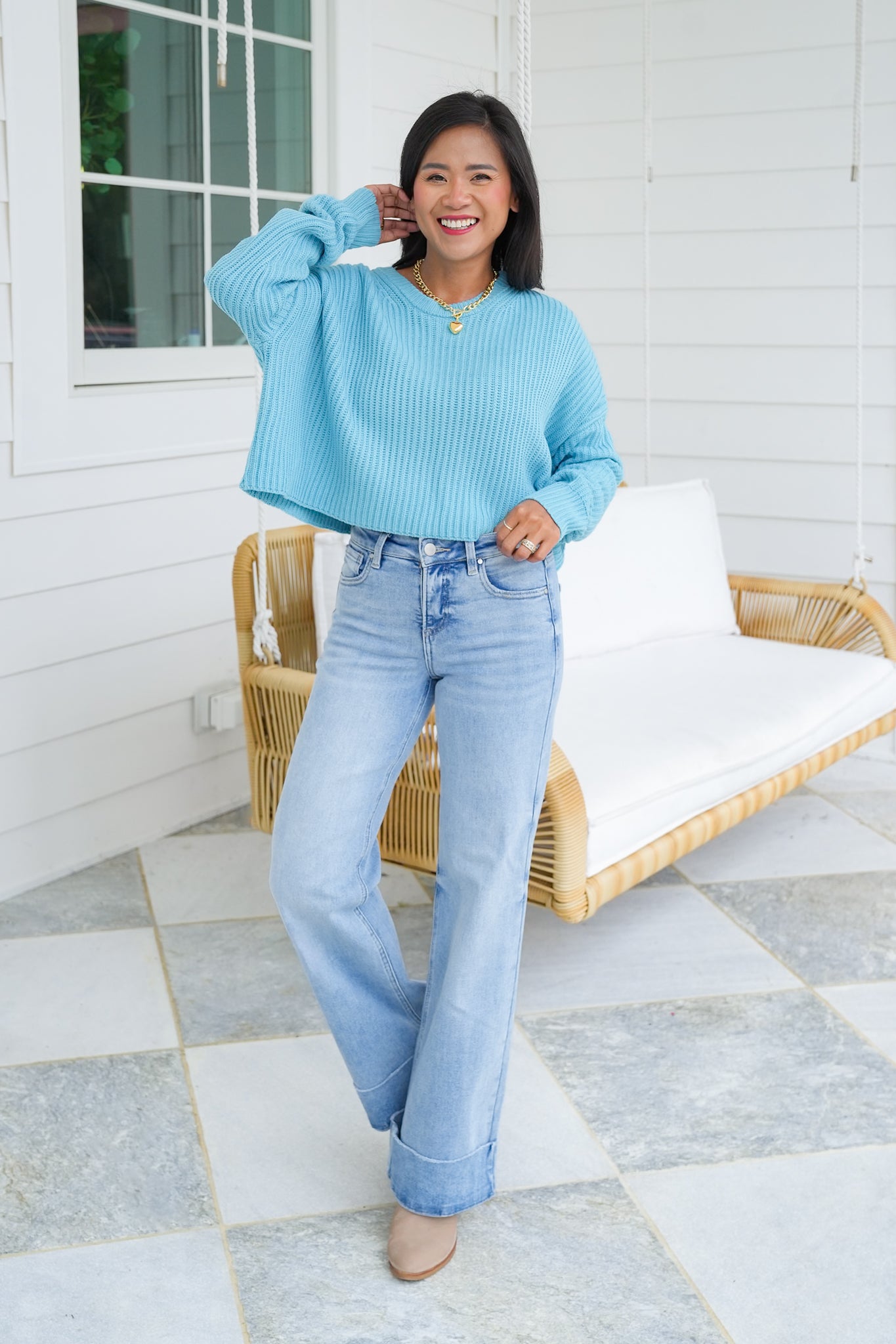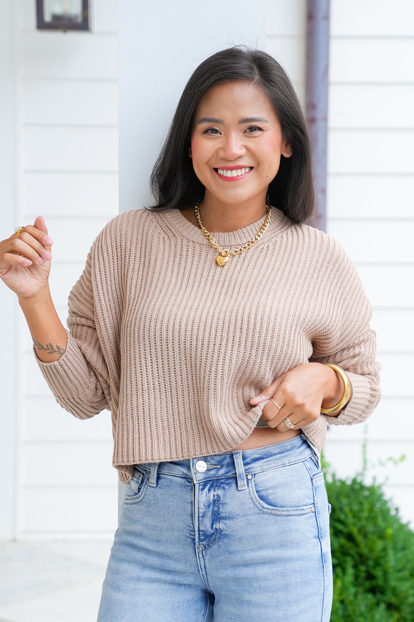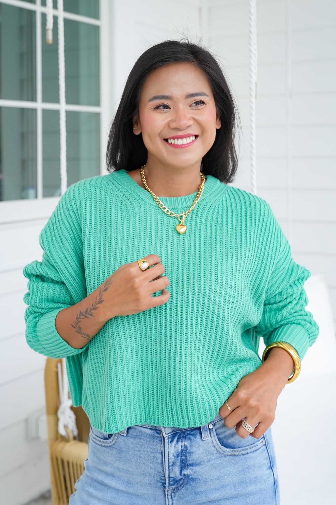 This cropped knit sweater is soft, cozy, and so easy to wear, with a boxy shape and just the right length to pair with high-waisted denim or skirts. The crew neckline keeps it classic while the bright color options add a fun twist you’ll love reaching for again and again.