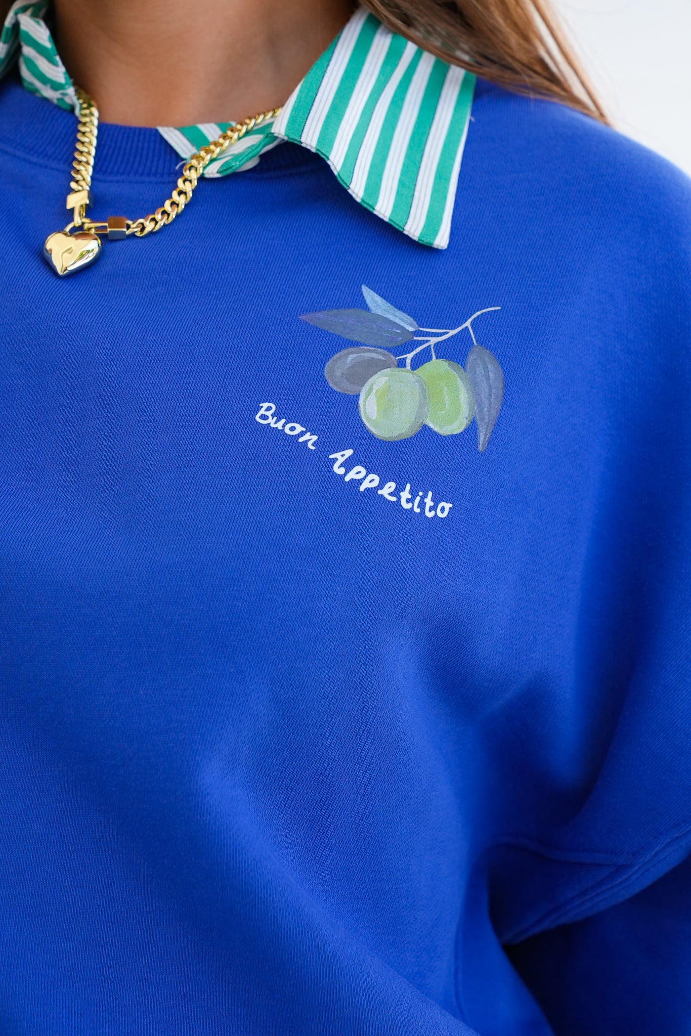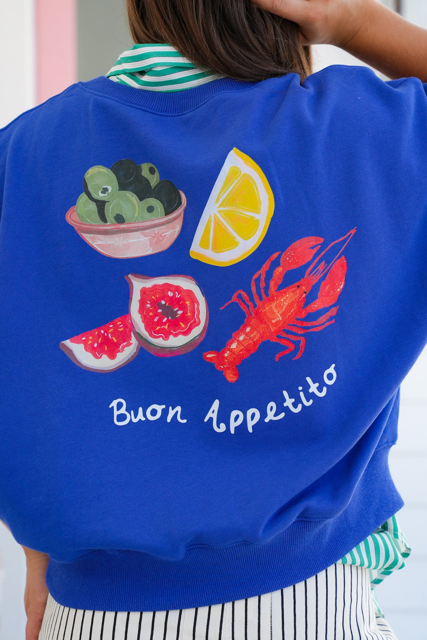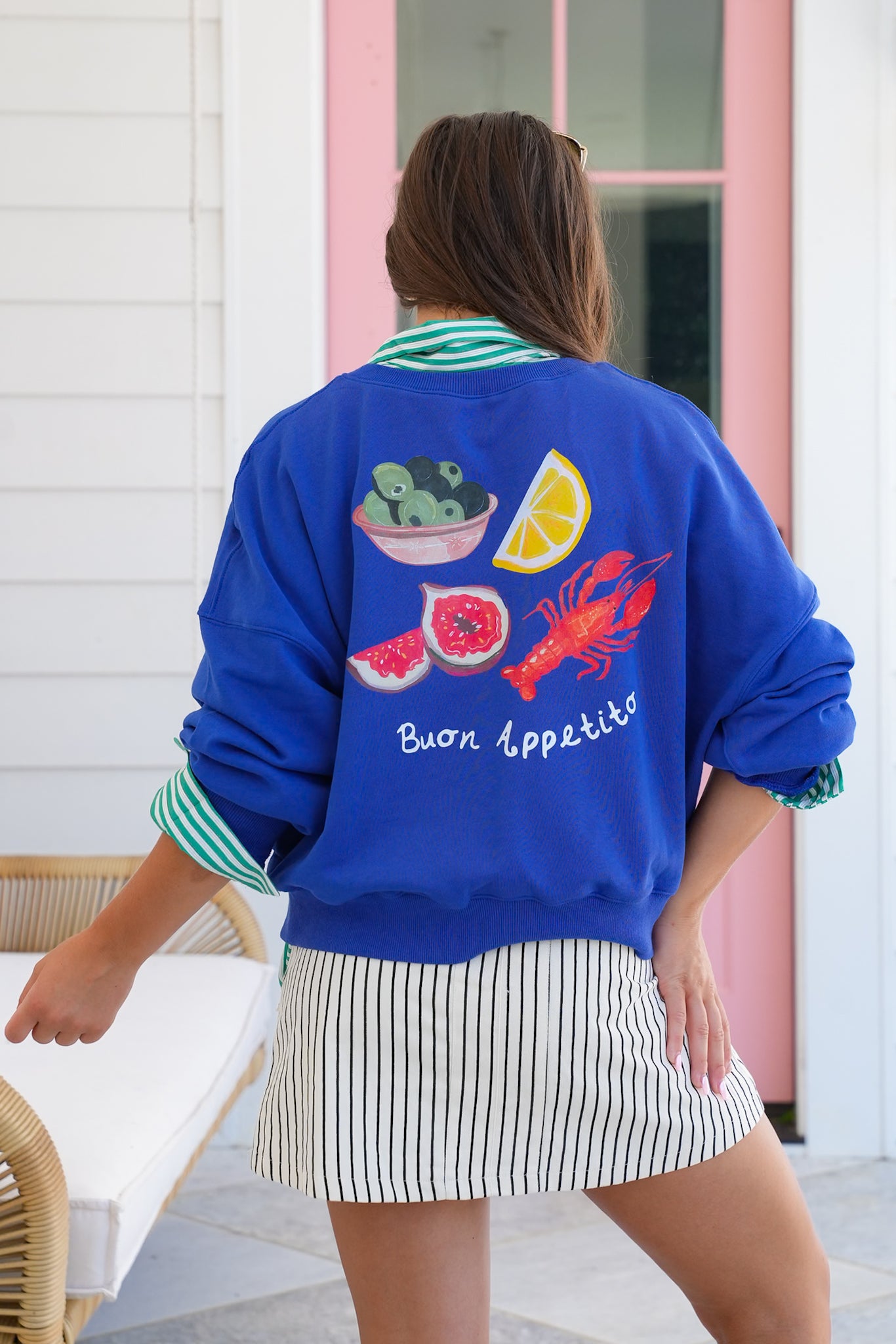 Long Sleeve Crew Neck Sweatshirt with Fruit and Lobster "Buon Appetito"