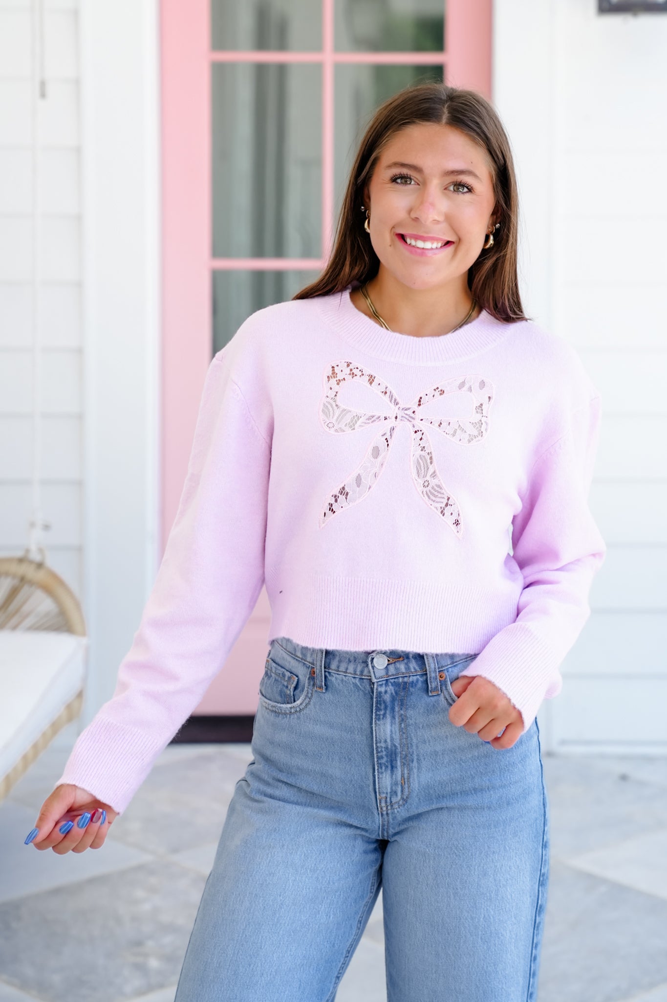 Long Sleeve Crop Sweater with Lace Bow Detail