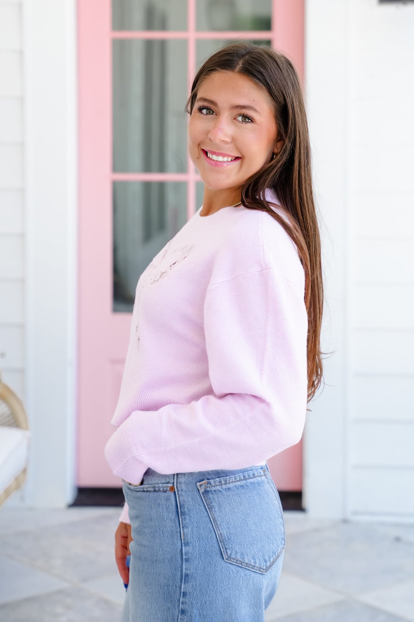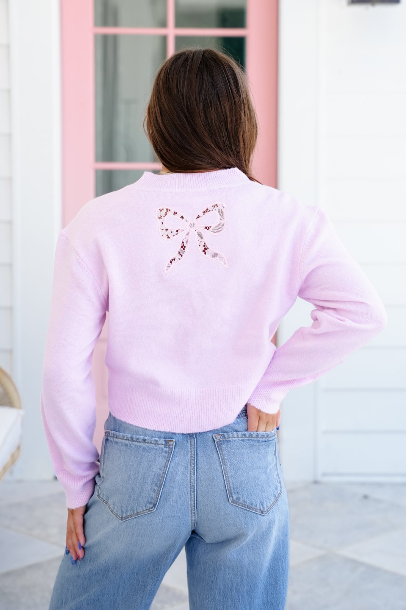 This sweater is all sweetness and charm with just the right dash of sophistication. The lace bow detailing instantly catches the eye, while the soft lavender color adds a romantic, playful touch. Pair it with denim for casual days or dress it up with a skirt and heels for brunch with the girls. It’s cozy, chic, and a little flirty too.