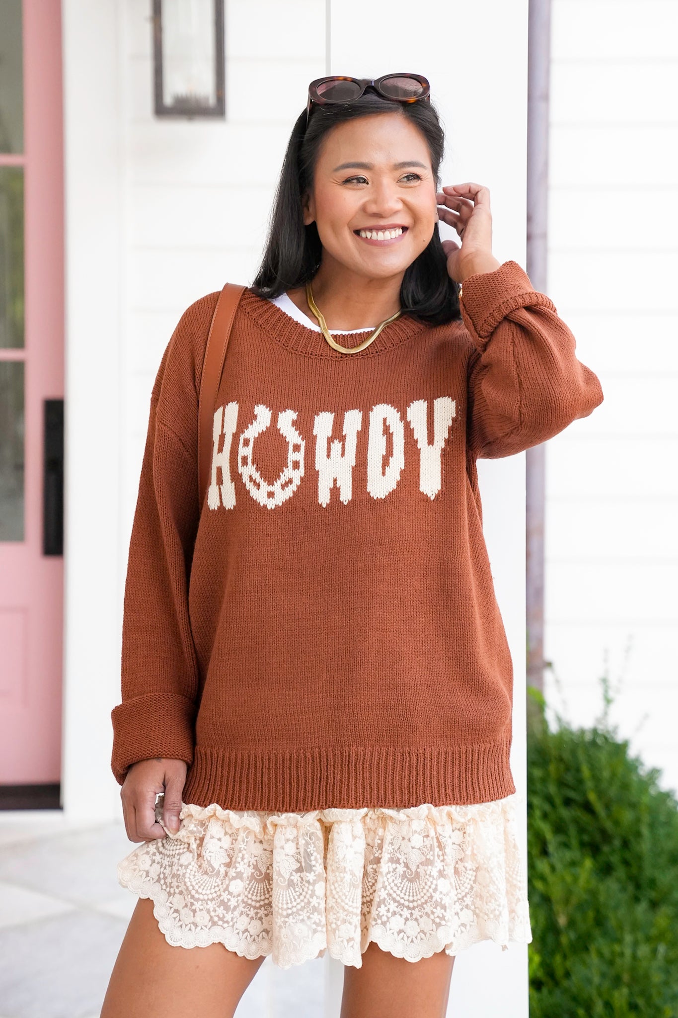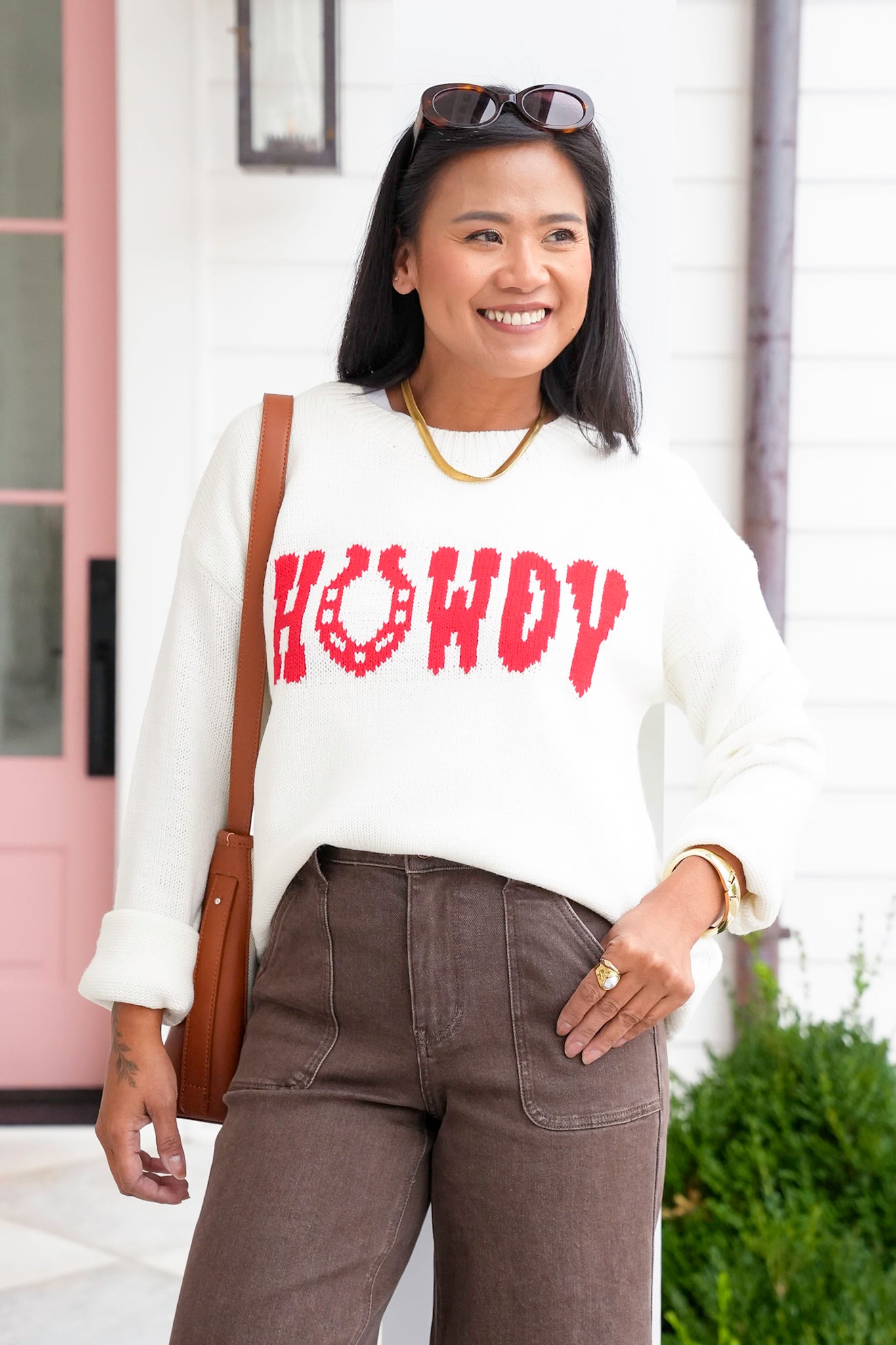 This sweater brings playful Western charm to your wardrobe. The graphic detail makes it stand out, while the soft knit keeps it comfortable enough for all-day wear. Pair it with denim and boots for a true western-inspired outfit, or layer under a shacket for an effortless, casual look with personality.