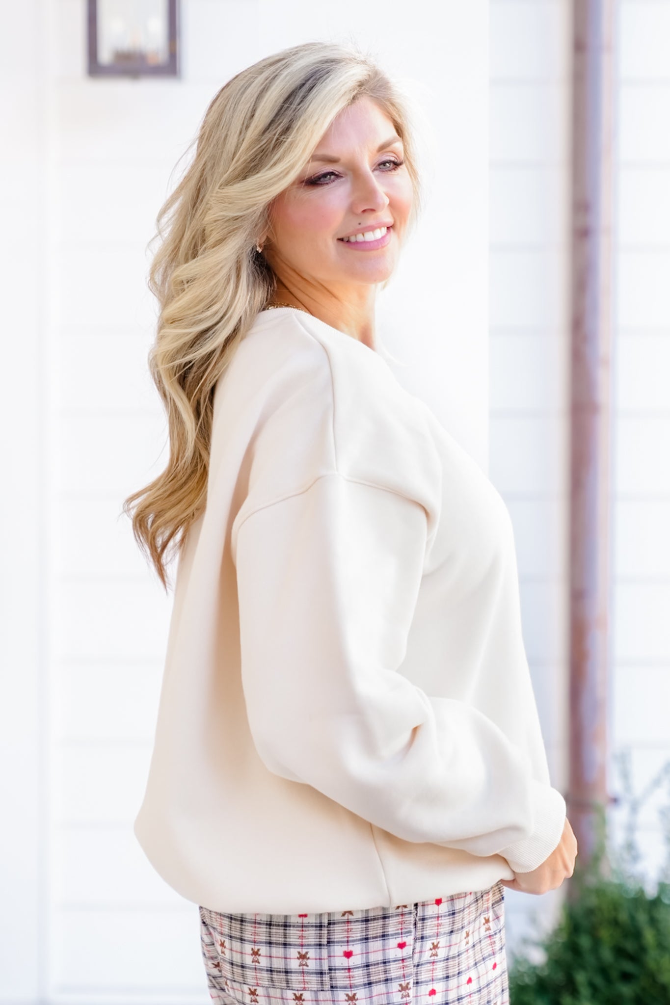 Bring on the holiday sweetness with this cozy “Milk and Cookies” sweatshirt! The fleece interior feels plush and warm, making it ideal for chilly mornings or relaxed nights by the tree. Pair it with plaid lounge shorts, leggings, or joggers for a cozy night in—or style it with denim and sneakers for a cute casual look while running errands this holiday season.