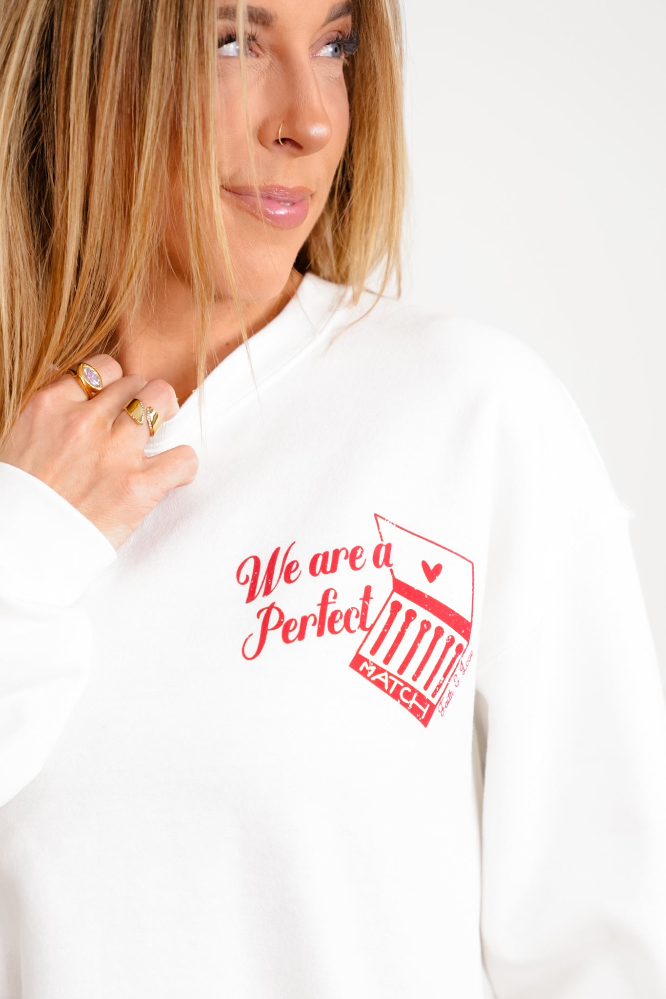 A cozy, easy pullover with a playful matchbook graphic that adds just the right amount of fun to your everyday lineup. The soft feel and relaxed shape make this an easy grab for denim, lounge bottoms, or casual layering days.