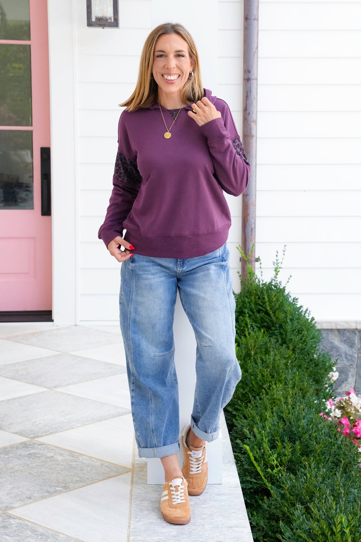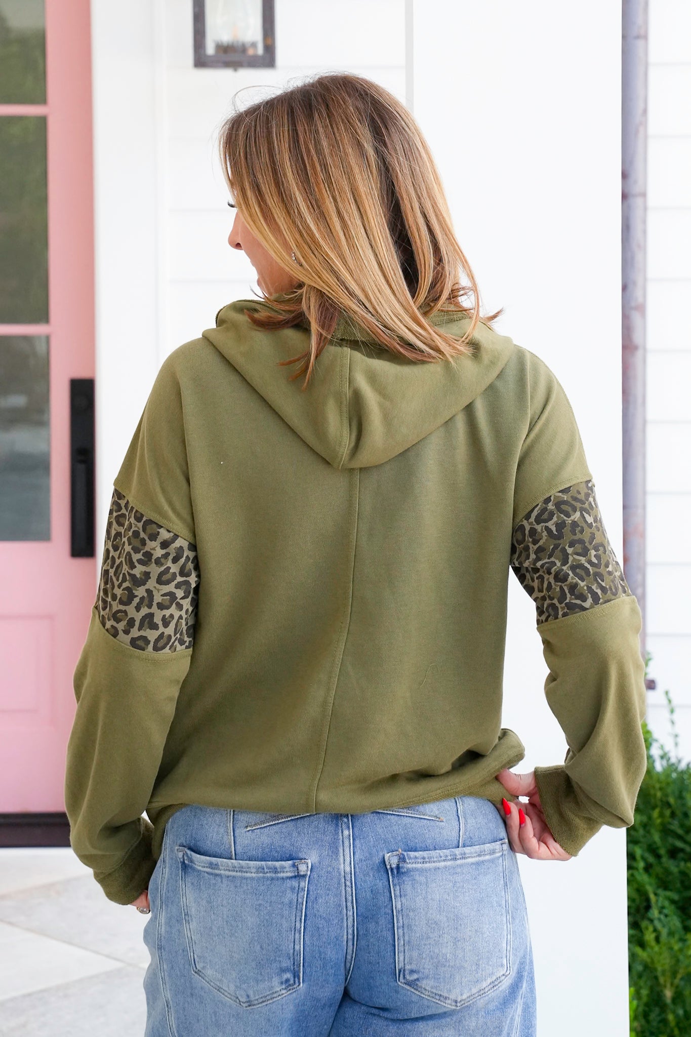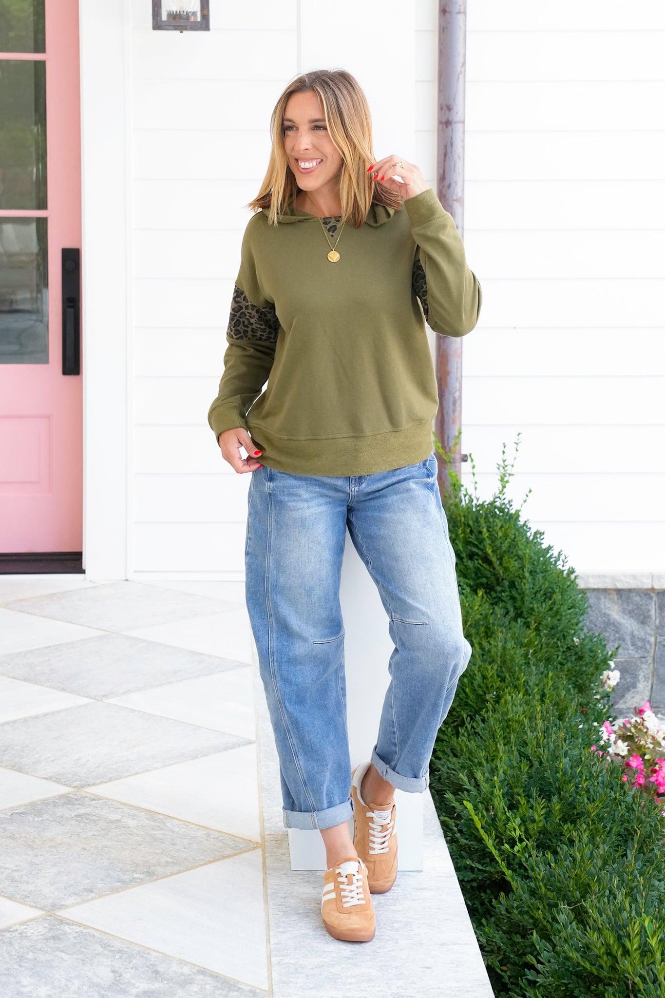 This hoodie brings together casual comfort with a playful twist. The leopard detailing adds just the right amount of boldness while the lightweight fabric makes it an everyday favorite.