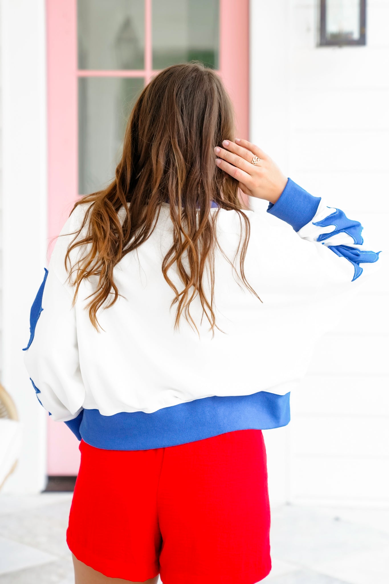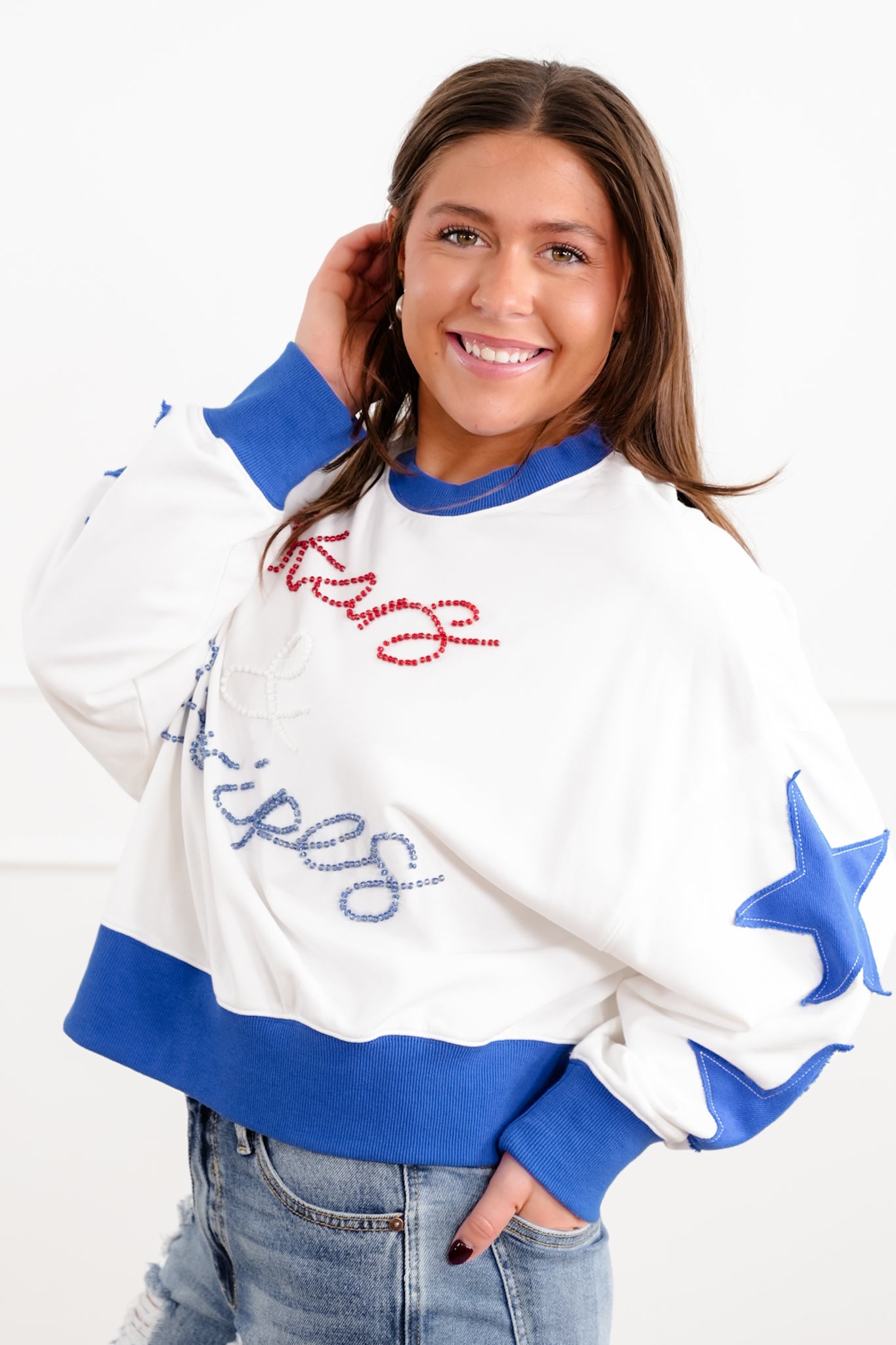 Long Sleeve Sweatshirt with Beaded "Stars And Stripes" Detail