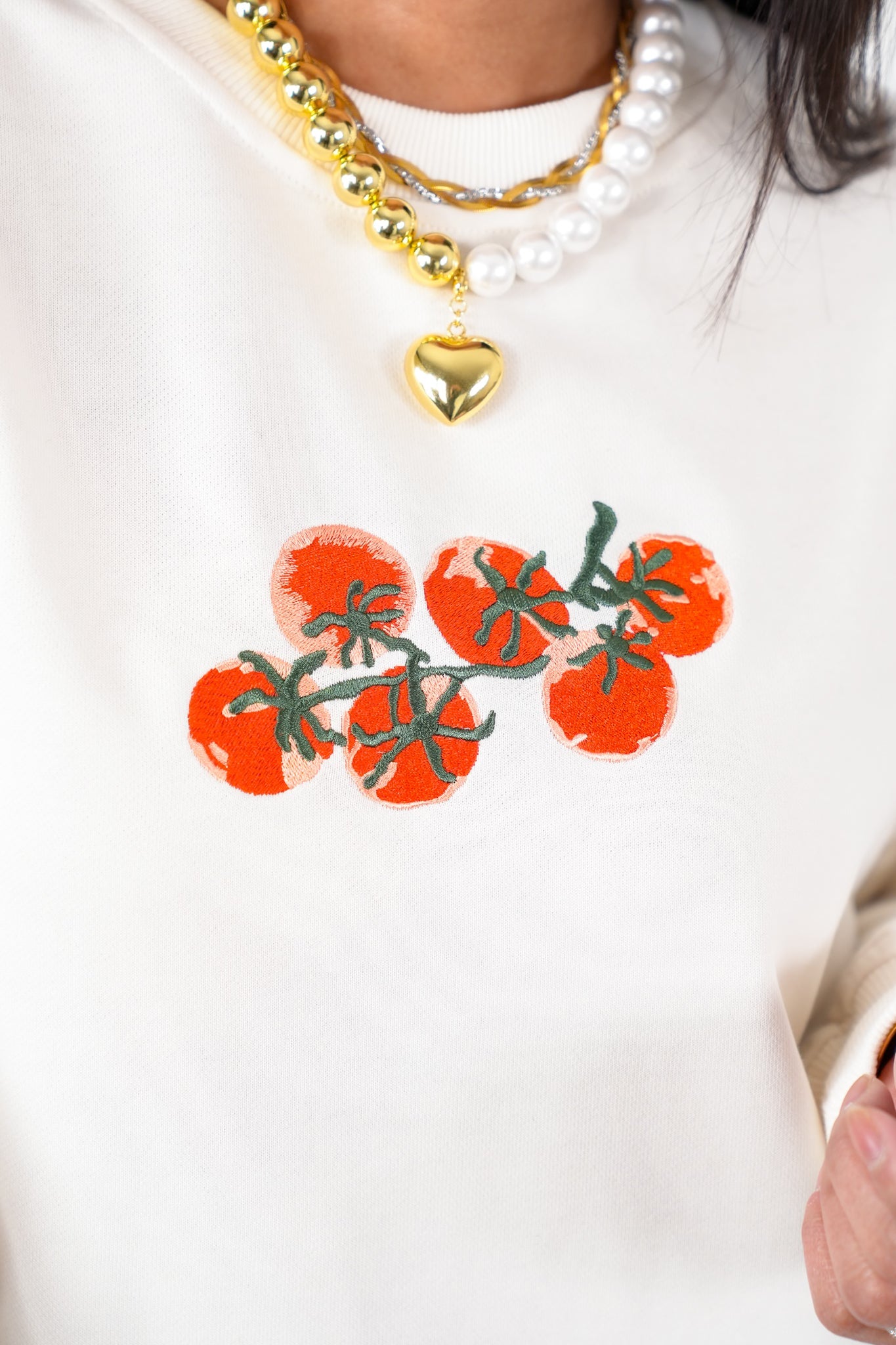 Long Sleeve Sweatshirt with Embroidered Tomatoes Detail