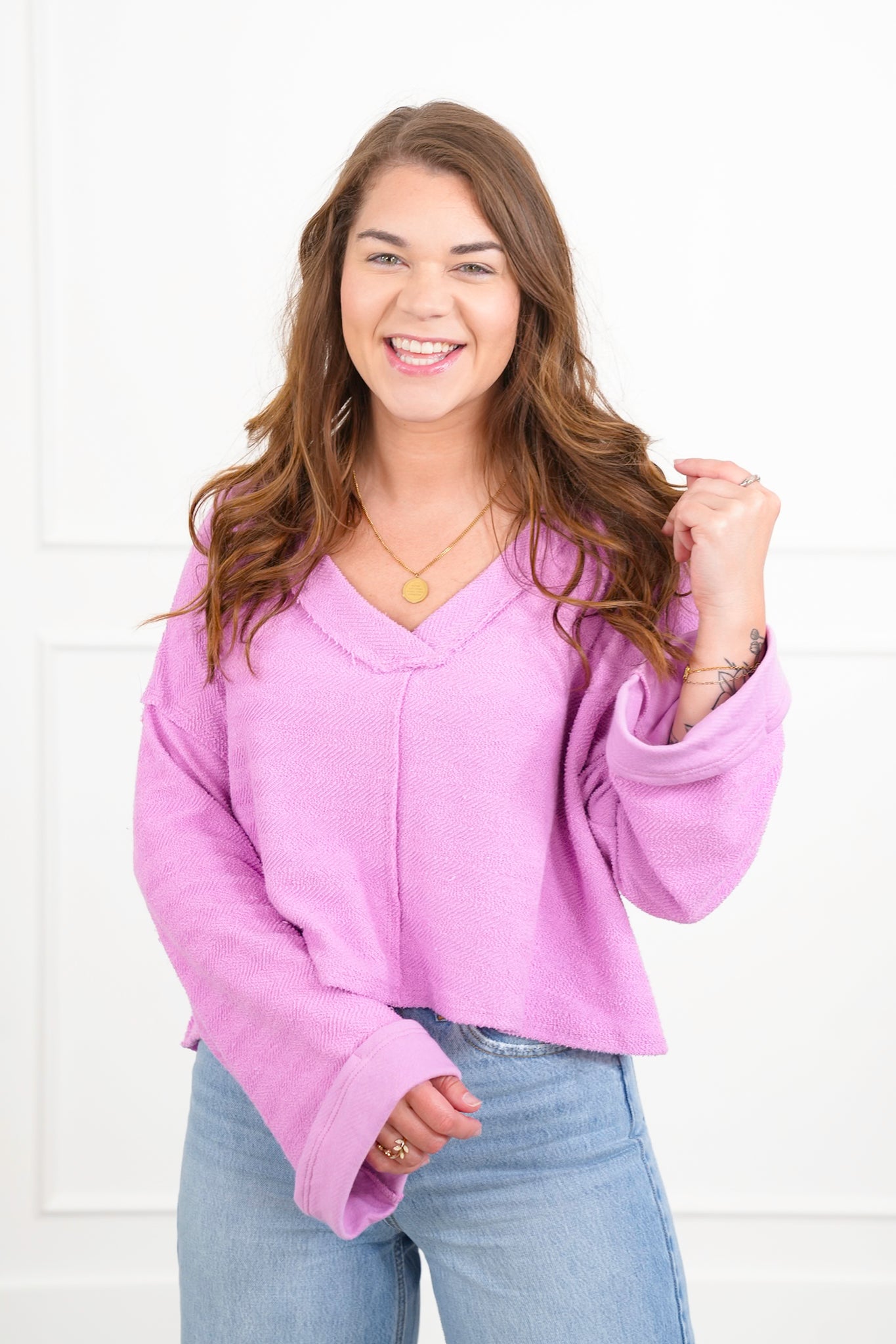 Long Sleeve V Neck Top with Cut Out Back Detail