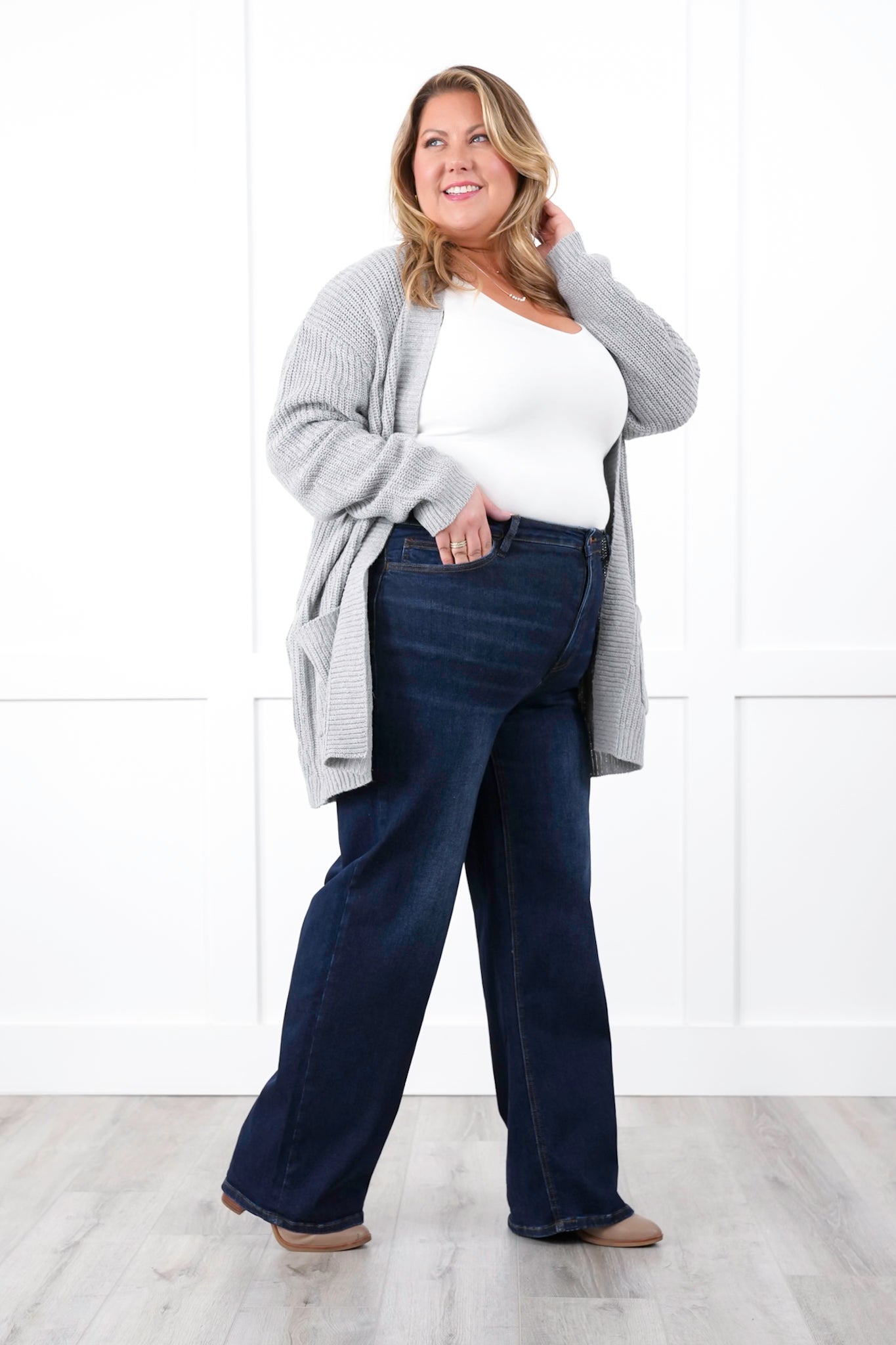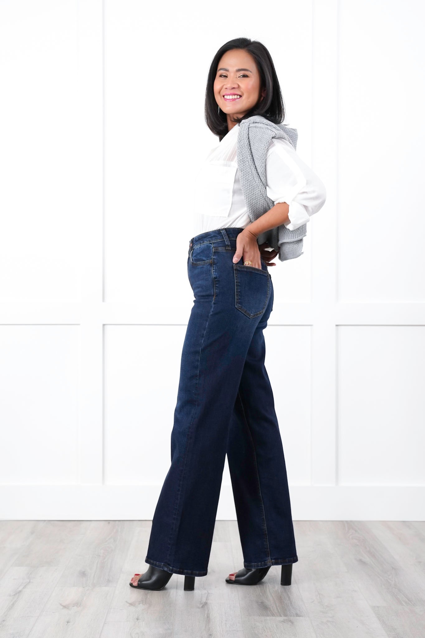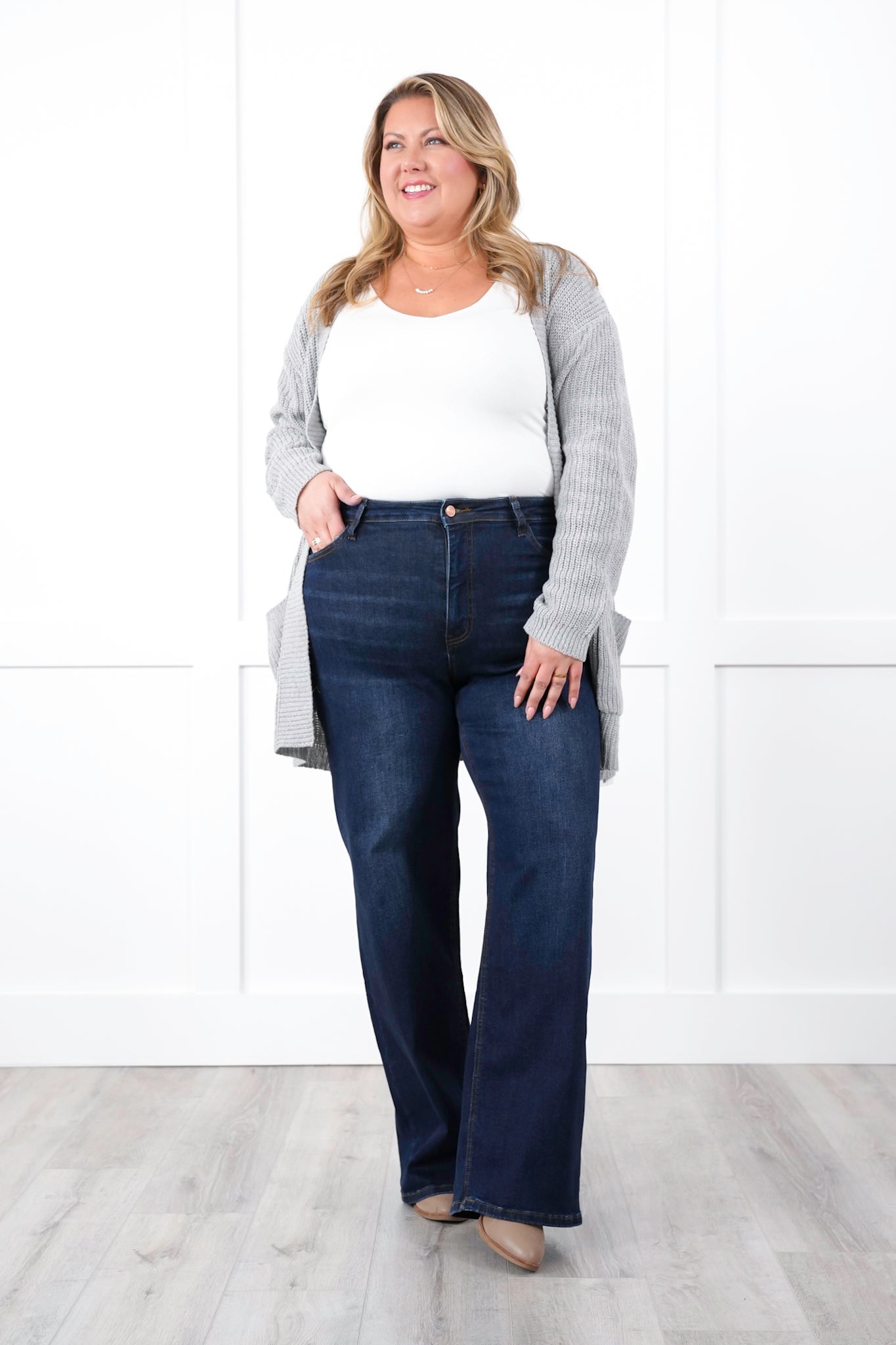 These incredible Lovervet jeans will ROCK YOUR BODY and give you so much confidence. These are high-rise and completely non-distressed, featuring the perfect vintage dark wash, gorgeous graining, and ample stretch. They may be the perfect jeans.
