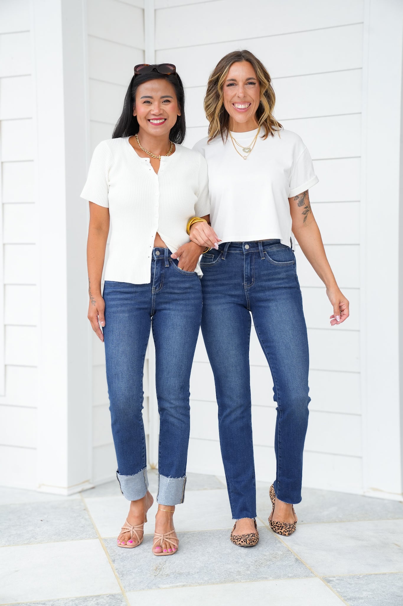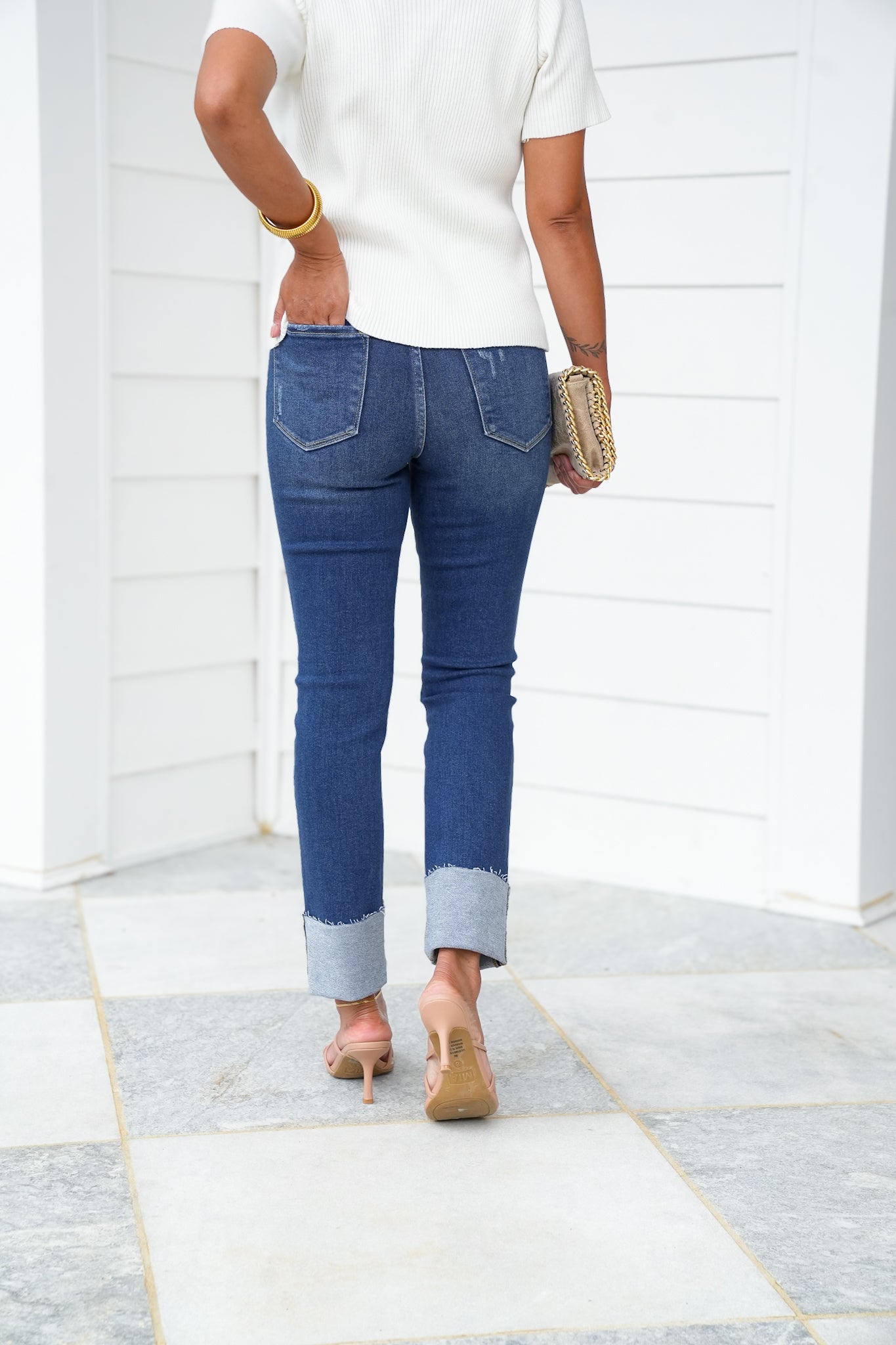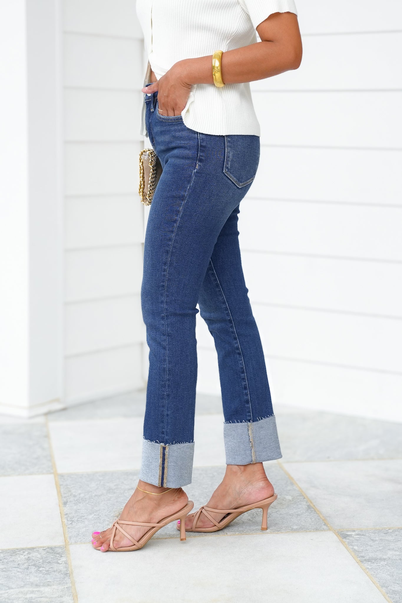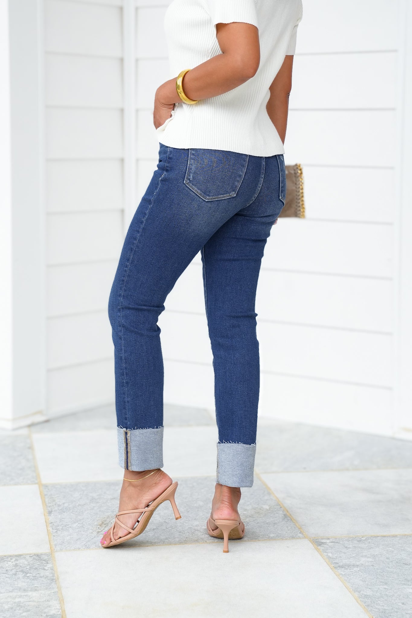 Lovervet High Rise Dark Wash Cuffed Slim Straight Leg Jeans