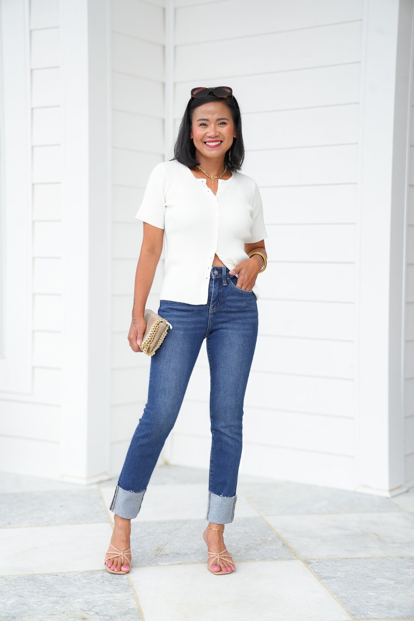 The cuffed raw hem adds just the right touch of an effortless, cool-girl touch, but you can uncuff them for a custom inseam. Dressed up or down, these jeans bring style and stretch in equal measure—and trust us, your closet will thank you.