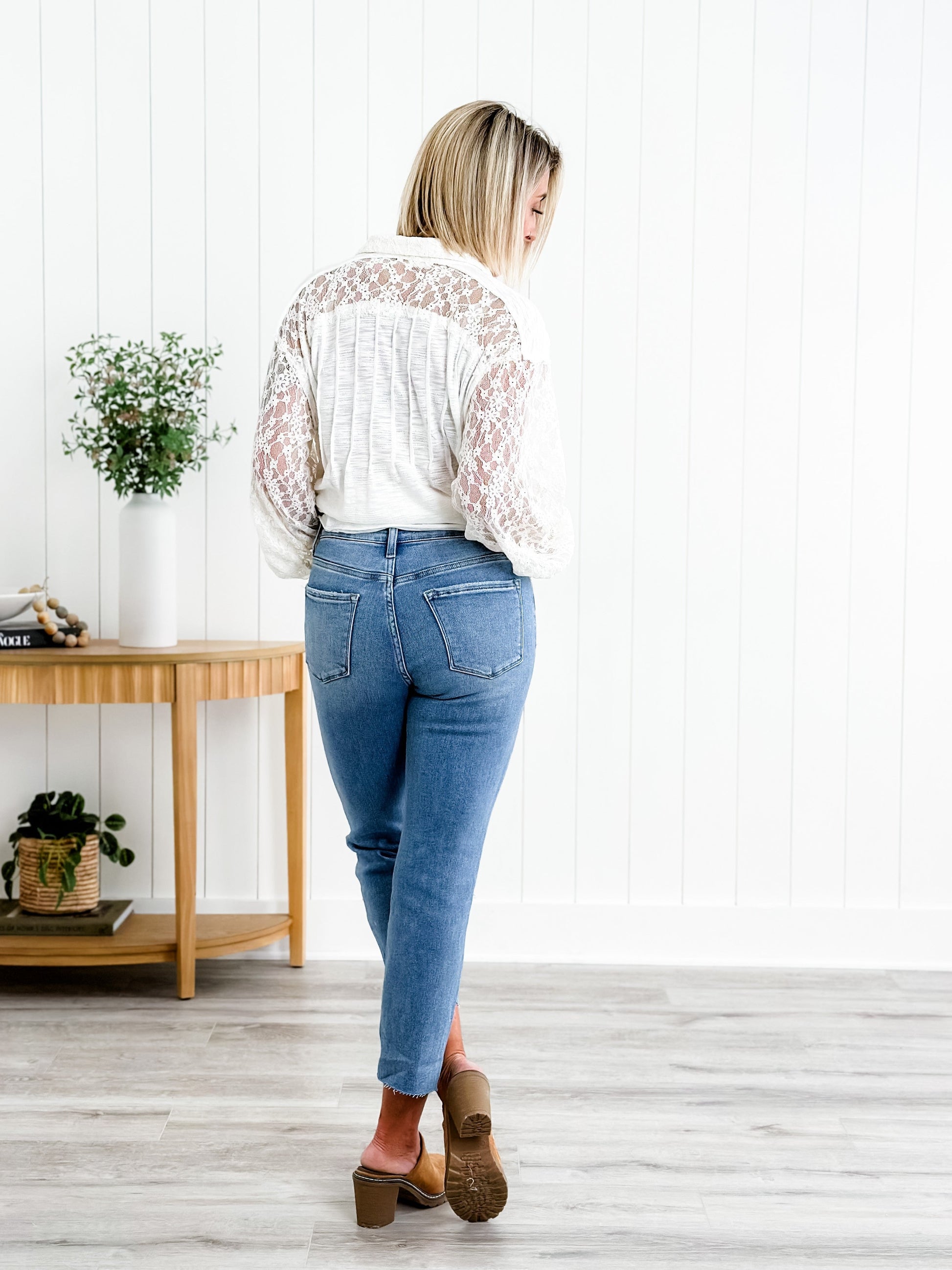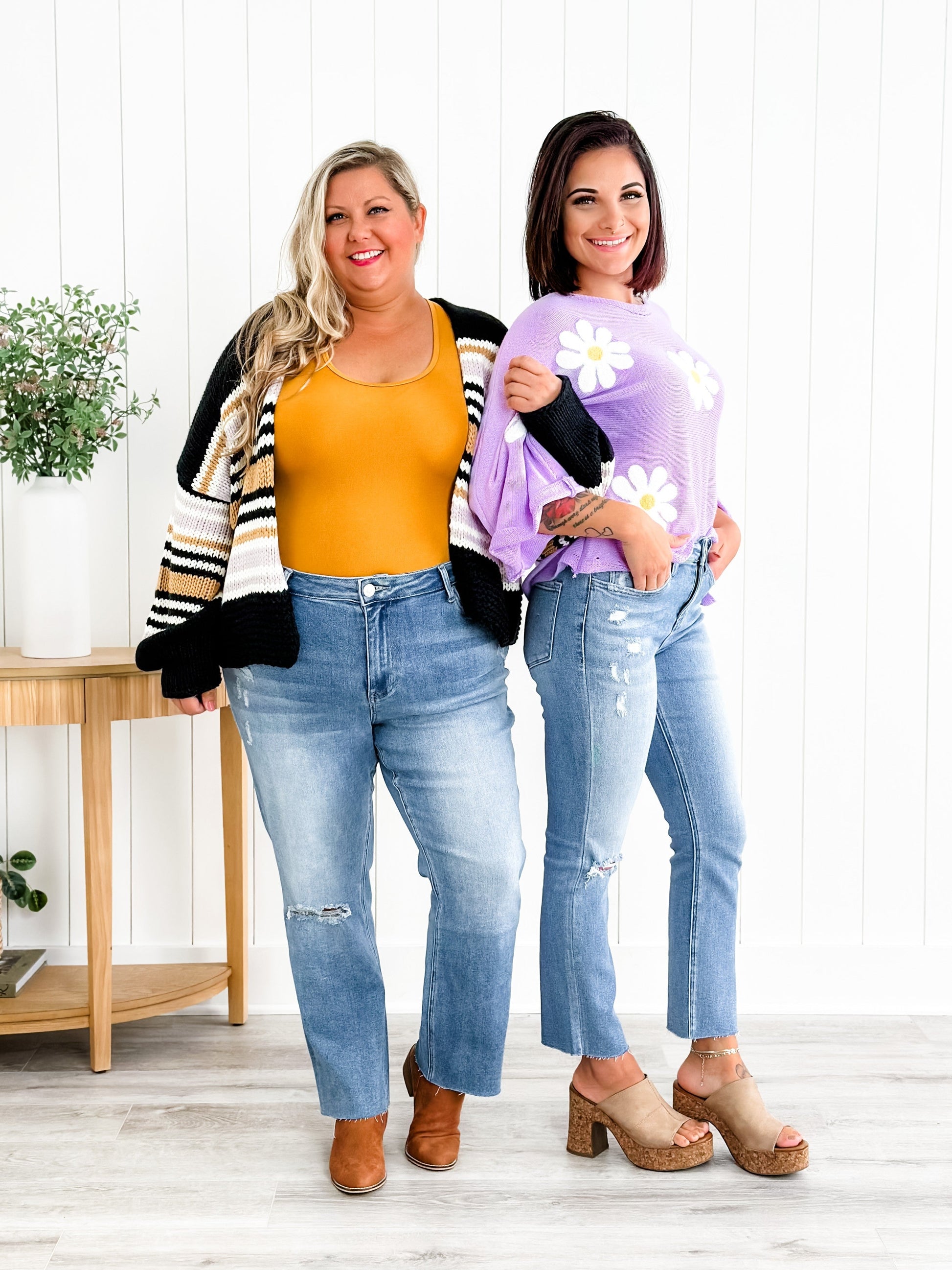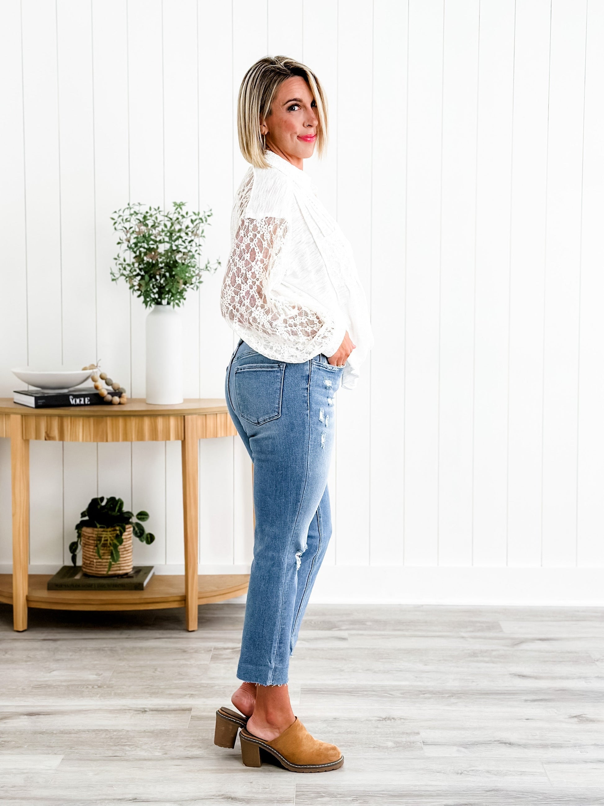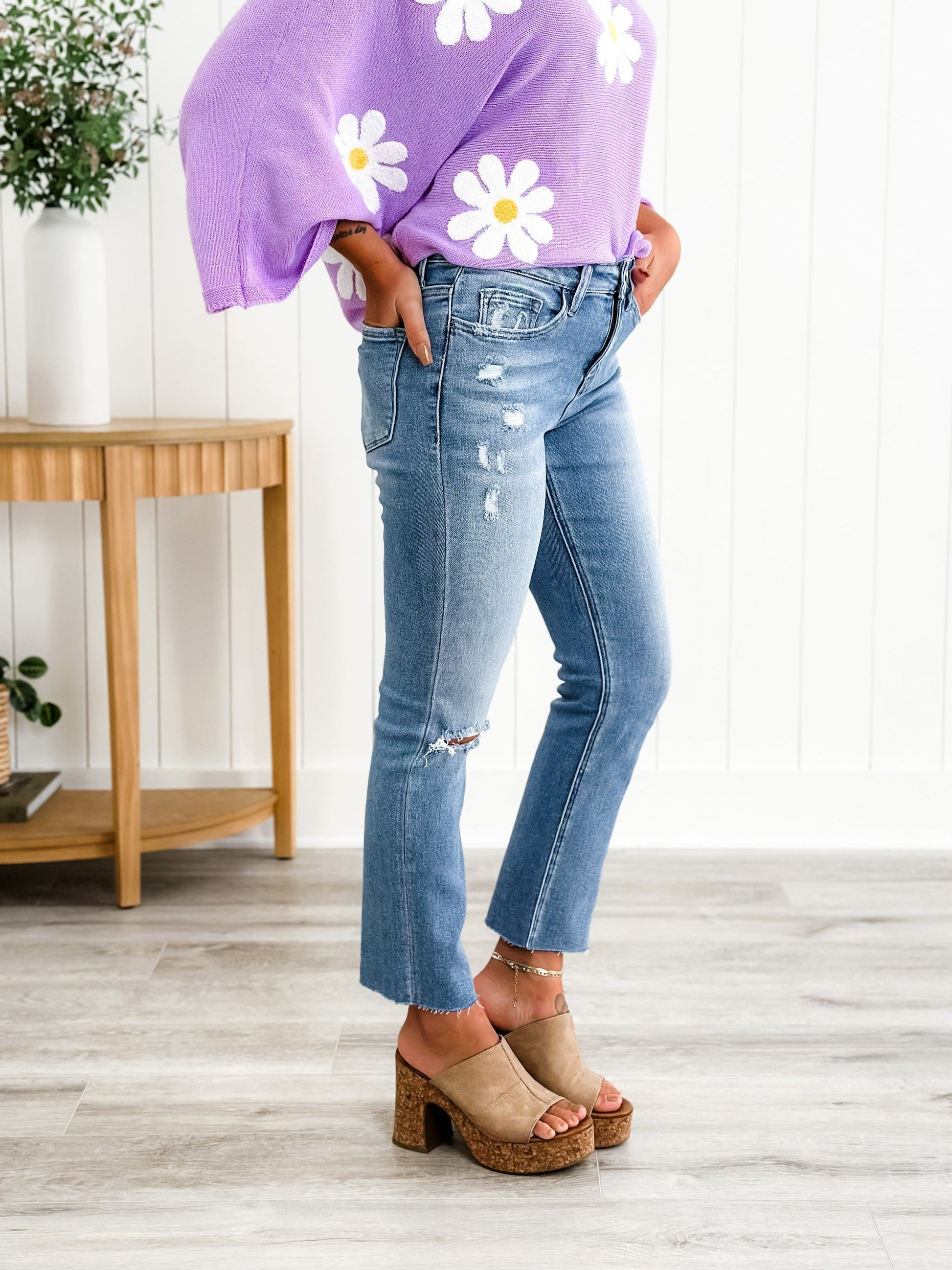 As soon as we put these on we knew they'd be an instant favorite! From the gorgeous denim wash, the subtle but sexy distressing, to the trendy crop straight fit.. these jeans are everything we've been looking for in denim! These jeans will work whether you're wearing spring sandals or fall booties and a chunky sweater!
