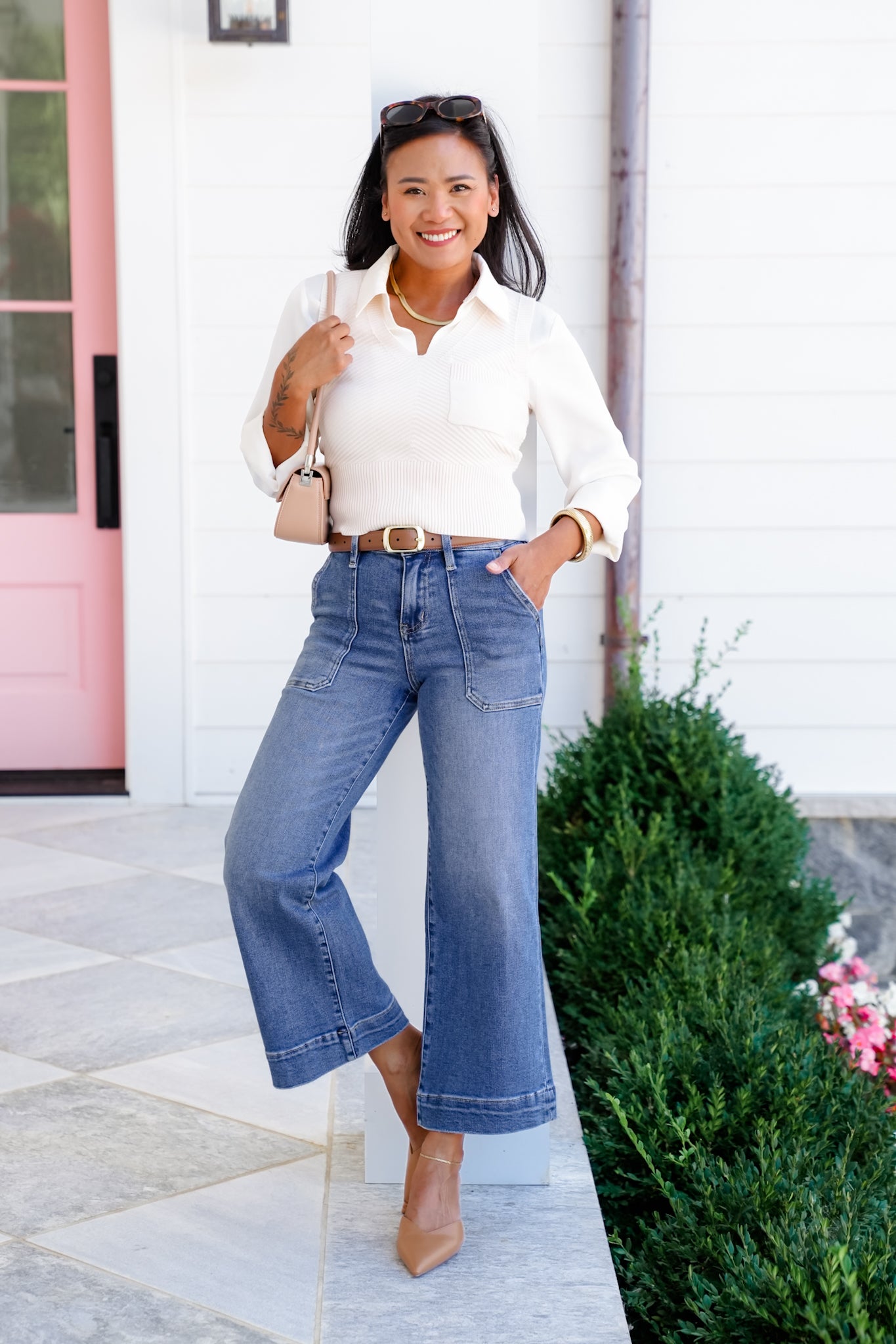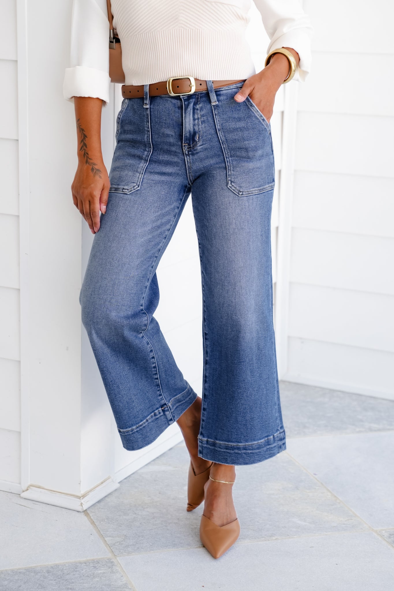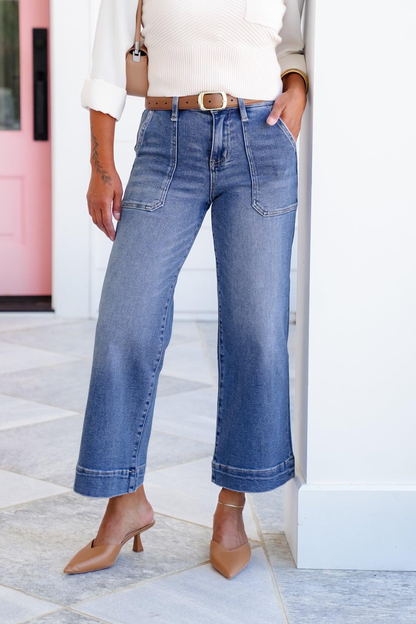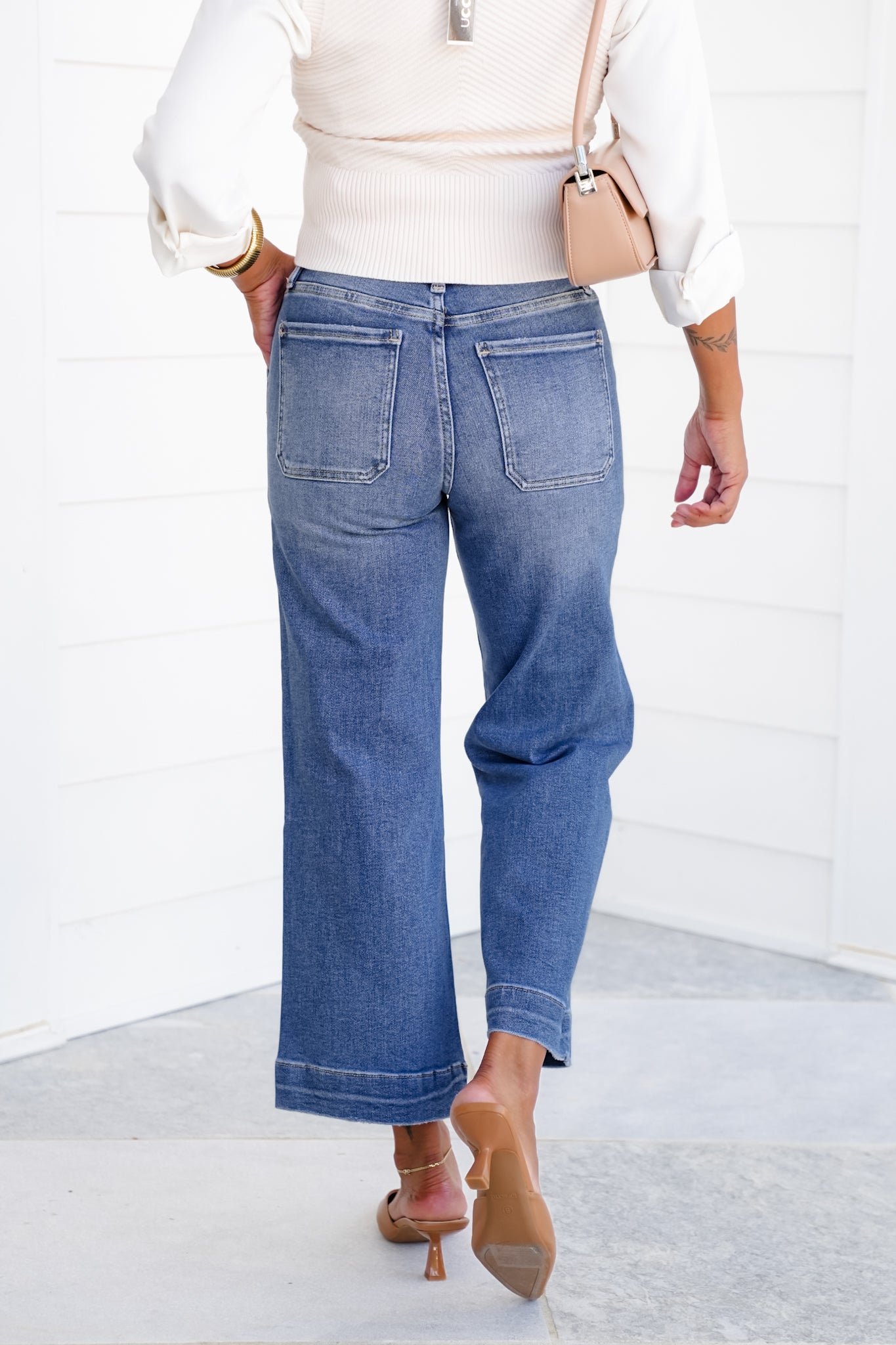 Lovervet Easy Like Sunday High Rise Wide Leg Crop Jeans with Utility Pocket