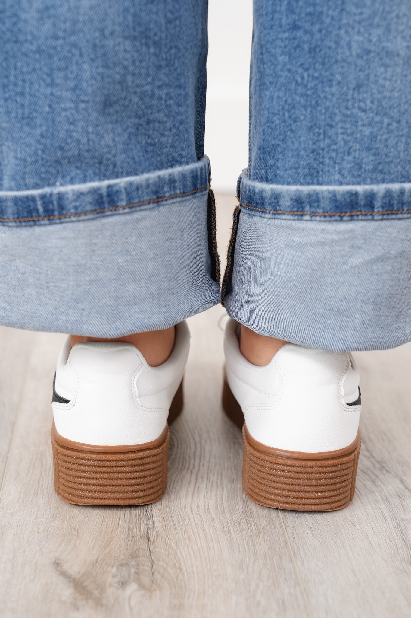 Fit: These sneakers have a roomy, true-to-size fit. The platform adds subtle height, while the textured sole provides additional support. If you're between sizes, we recommend sizing down for a more snug and secure fit.