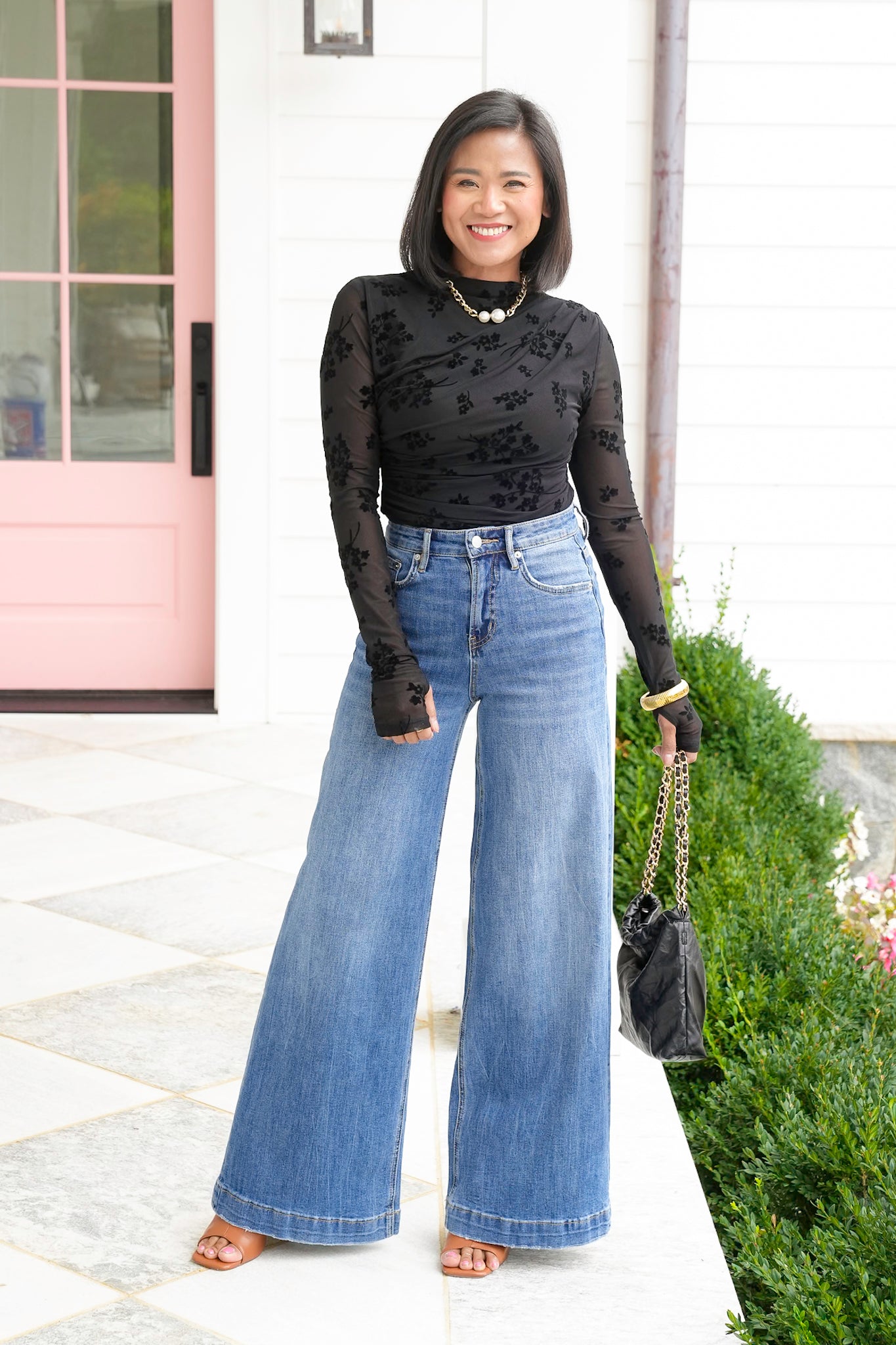 Bring drama and sophistication to any outfit with this stunning mesh bodysuit. The velvet flocking detail gives it a luxe, dimensional texture that instantly elevates your look. The soft, lined mesh keeps it comfortable and sleek, while the thong bottom with snap closure ensures a smooth, seamless fit under jeans or skirts. Pair it with faux leather, denim, or a statement blazer for that chic, confident vibe.