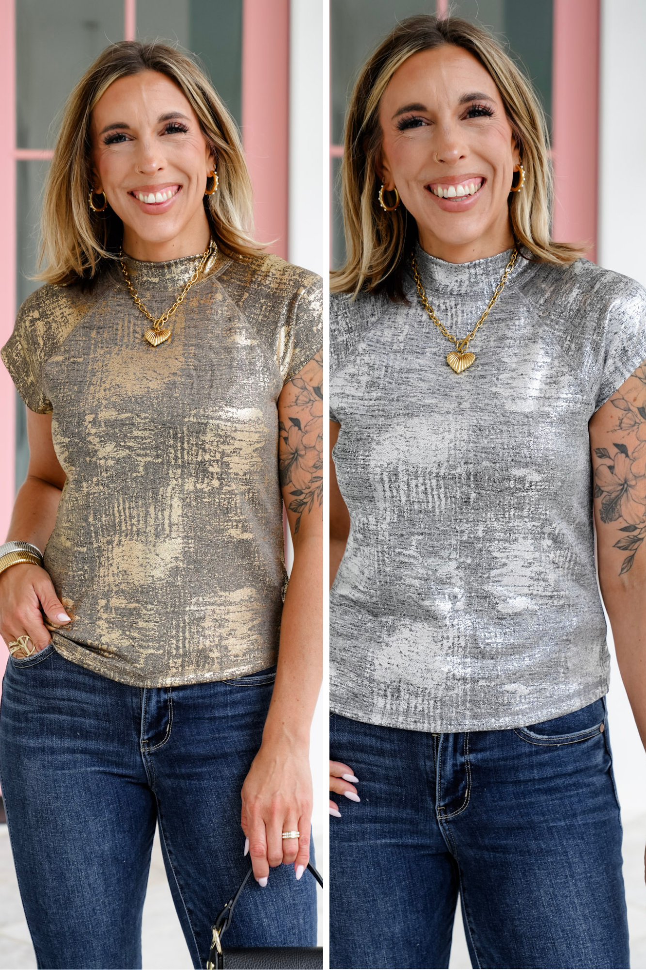 A little shimmer goes a long way! This metallic top adds instant glam with its cap sleeves and soft mock neck. It’s stretchy, comfortable, and fabulous for a girls’ night or holiday parties. Pair it with dark skinnies and statement earrings to sparkle all evening.