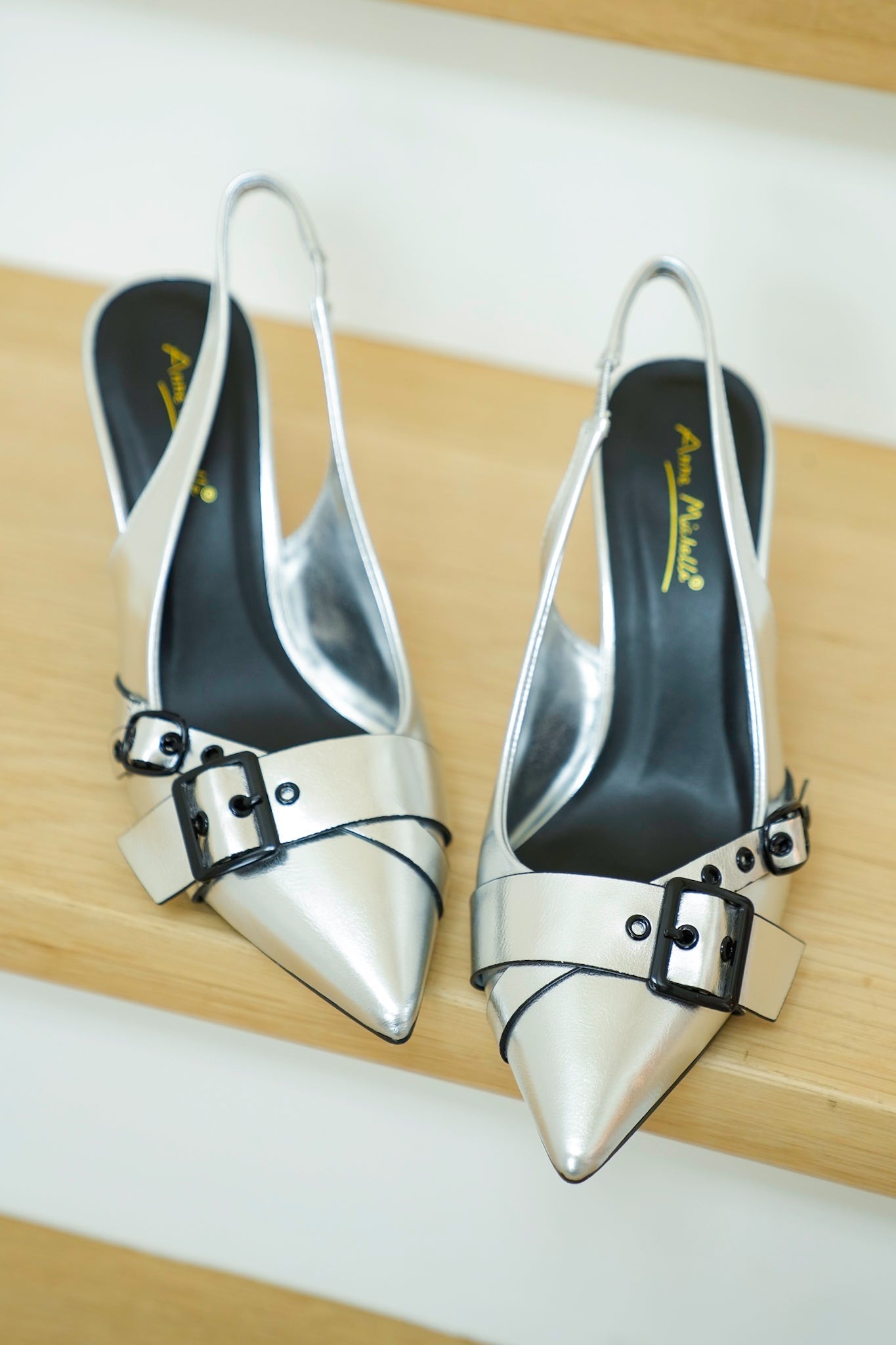 Bring on the shine! These metallic slingbacks are ready to party with their sleek pointed toe, eye-catching buckles, and glossy finish. Pair them with black skinnies and a silky blouse or let them peek out under wide-leg trousers for a glam touch.