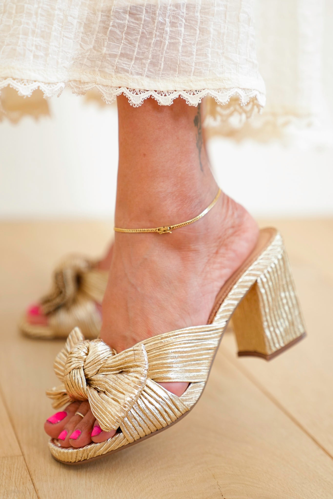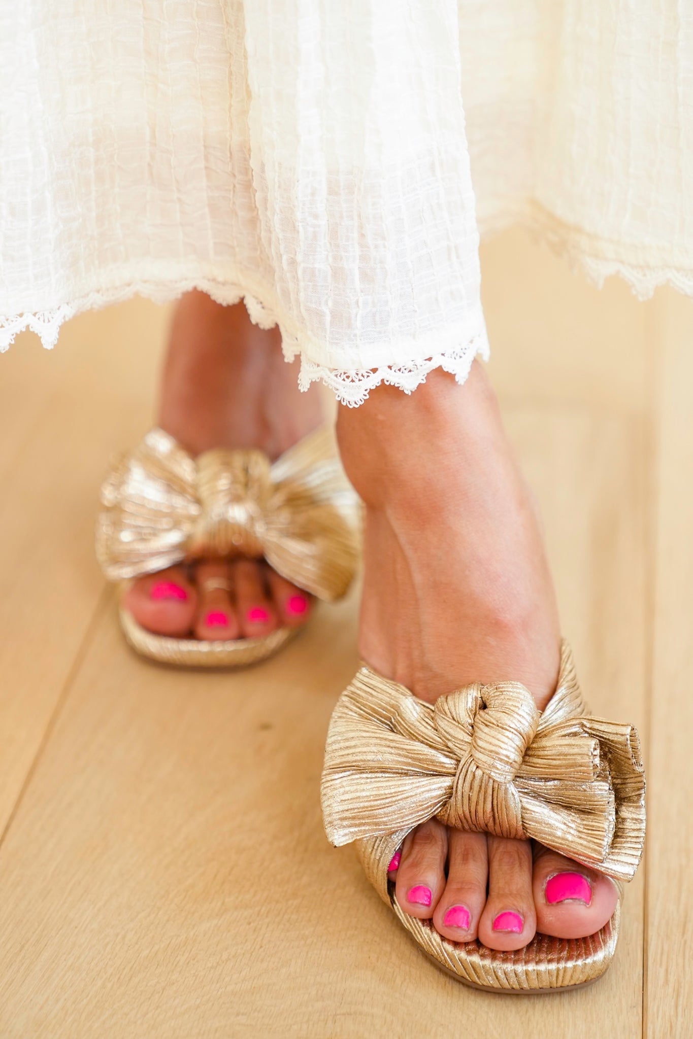 Slip into these beauties and get ready for compliments! These pleated mules feature a playful oversized knotted bow that’s just right for dressing up jeans or finishing a cocktail look. The sturdy block heel gives you a boost while keeping you steady.