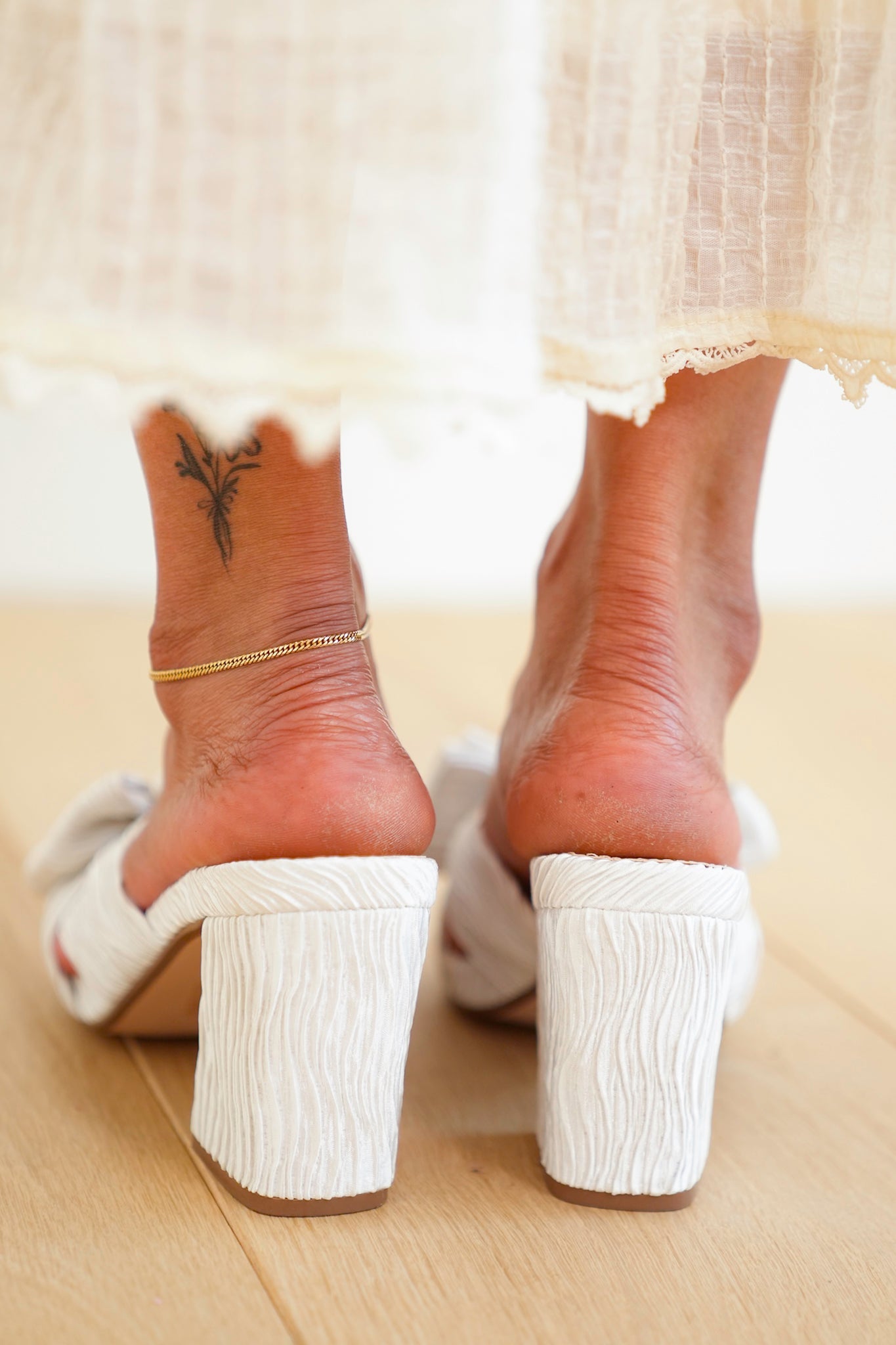 MIA Chic Pleated Open Toe Mule with Knotted Bow