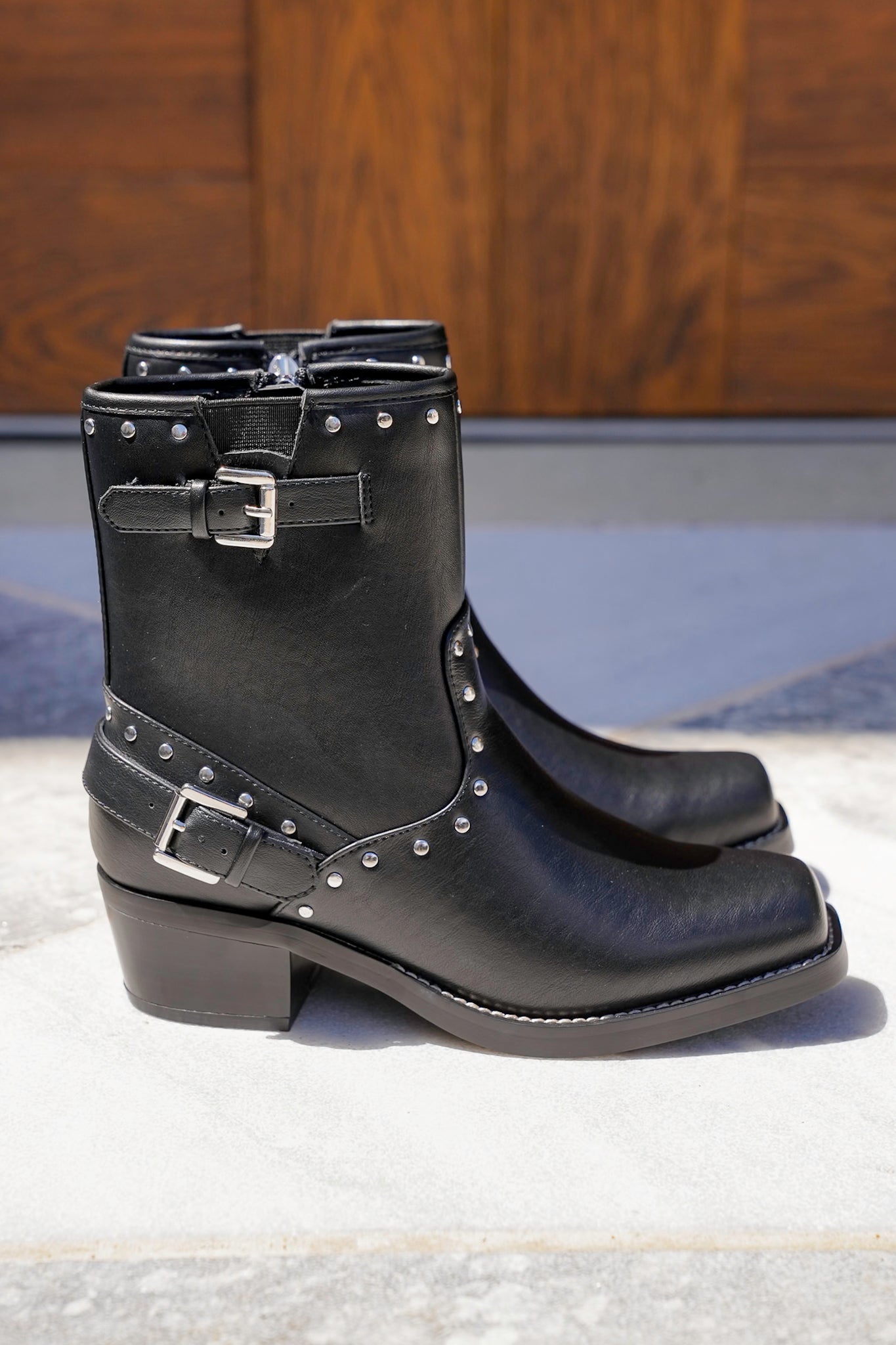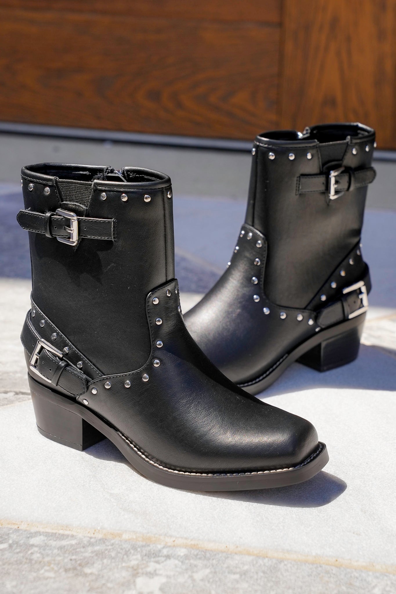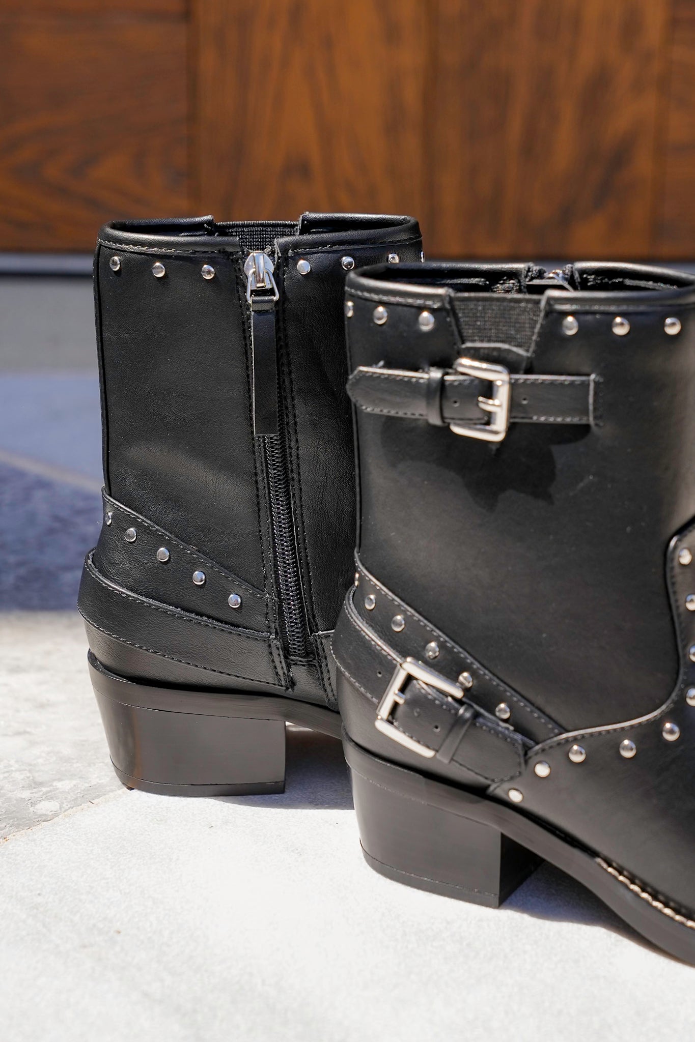 MIA Chunky Heel Vegan Leather Boots with Studs