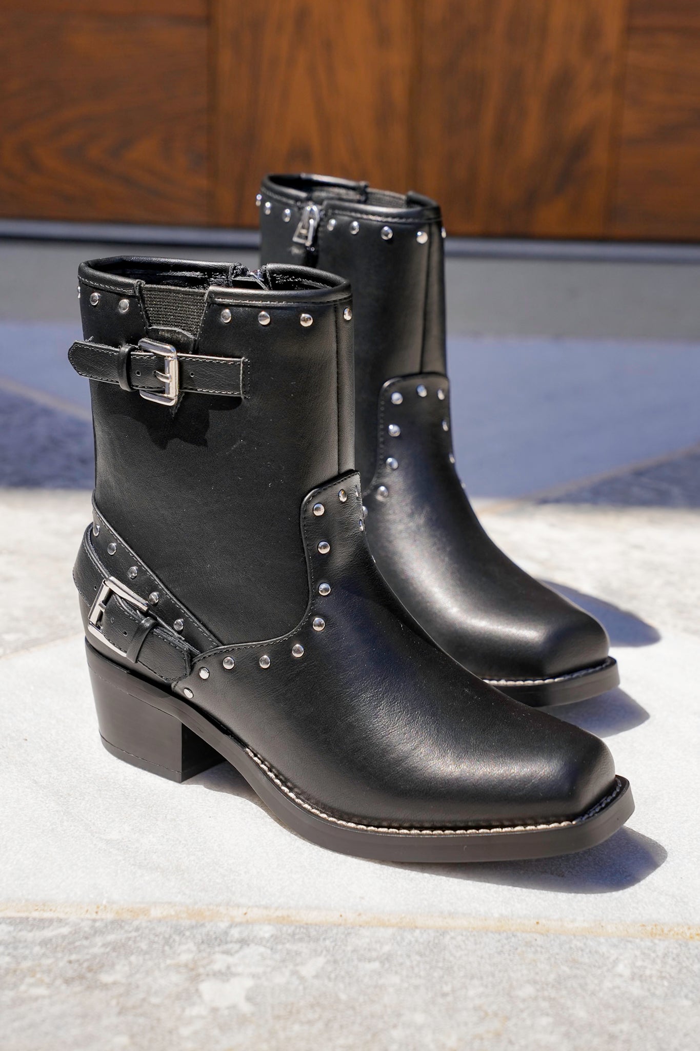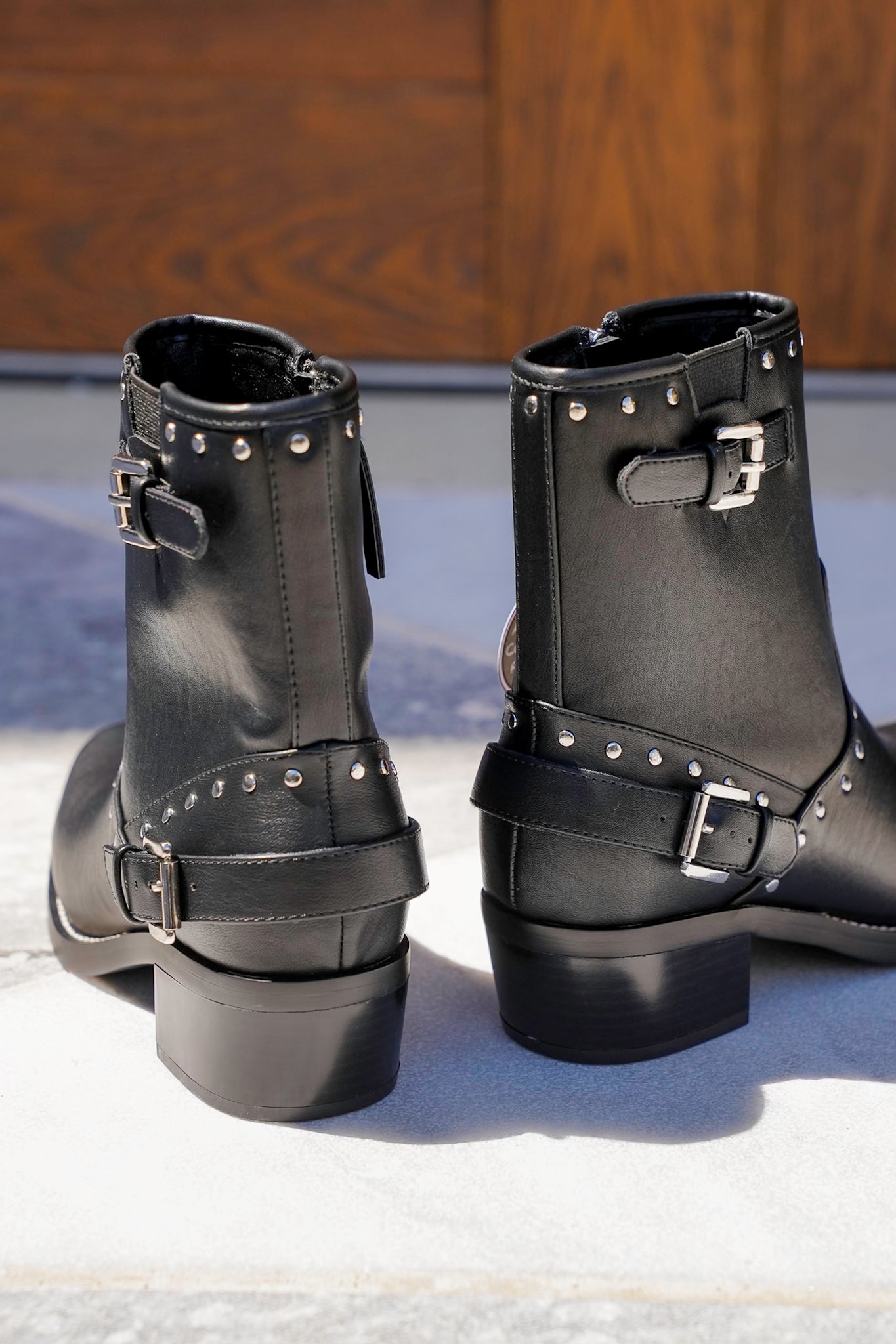 These boots are made to turn heads. With bold stud accents, buckle details, and a chunky heel, they instantly add edge and sophistication to any outfit. Whether you’re pairing them with jeans and a tee or styling them with a skirt and cardigan, they’ll elevate your look with serious style.
