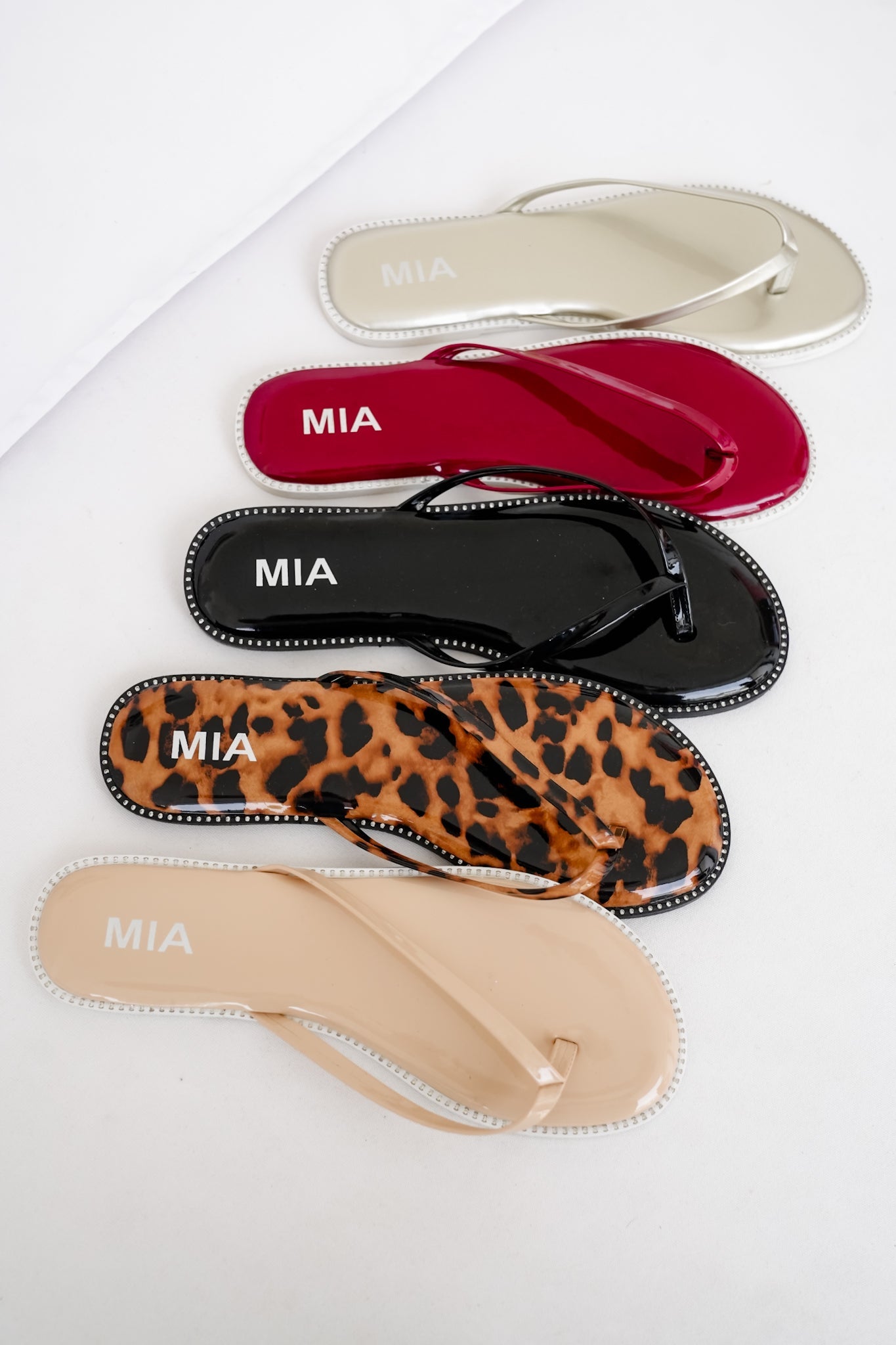 Step into comfort and sparkle with these MIA flip-flops featuring a crystal-paved design. Whether you're heading to the pool or strolling around town, these flip-flops will add a touch of glam to your casual look. Available in multiple colors to match your summer wardrobe!
