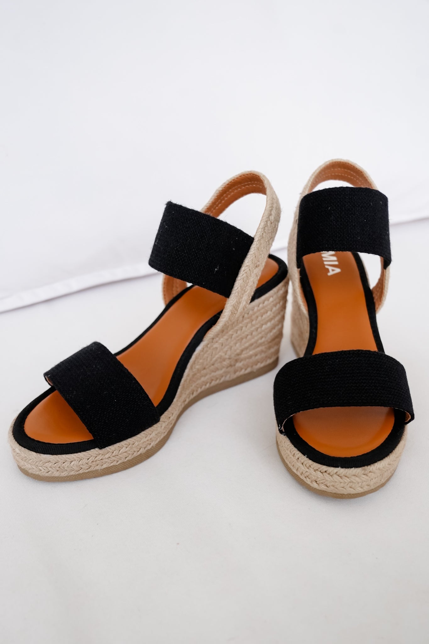 Elevate your summer style with these espadrille wedges, the ultimate combination of comfort and chic. The stretch top strap hugs your foot just right while the cork-like wedge adds a relaxed, beachy vibe to any outfit. Pair them with your favorite sundress or denim for a look that's both stylish and comfortable all day long.