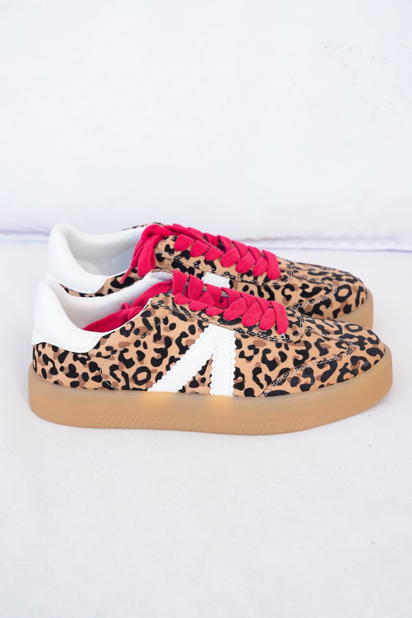 Bring some sass to your sneaker lineup with this statement-making pair! The leopard print adds the perfect amount of wild flair, while the bold red laces keep it playful and trendy. Rock them with jeans and a graphic tee, pair with leggings and a pullover, or even style with a casual dress for that sporty-chic vibe everyone loves.