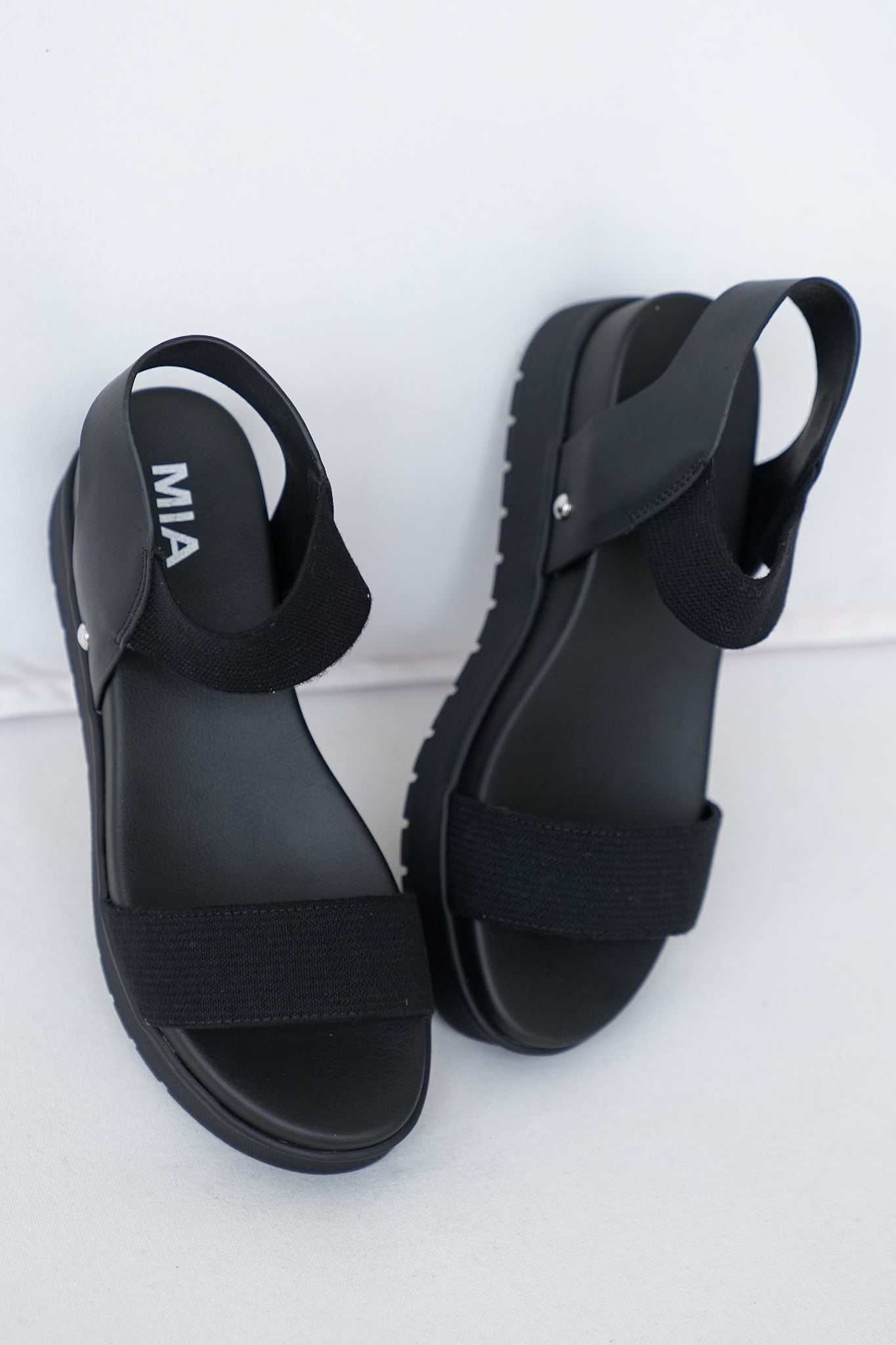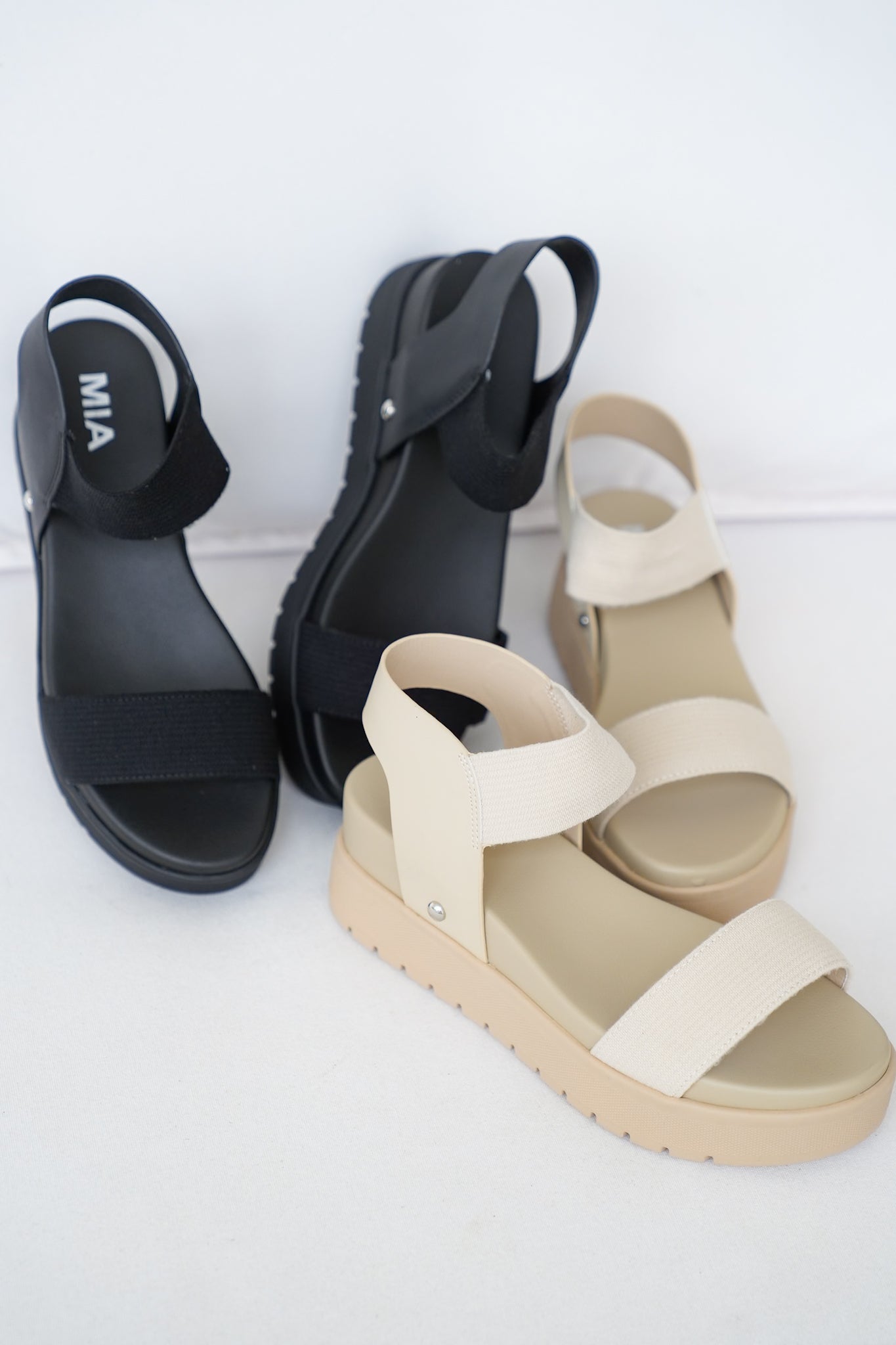 Comfort that keeps up with your day! These MIA platform sandals bring you soft, cushy support with a modern look. The flexible elastic straps hug your feet just right, and the contoured insole is perfect for all-day wear. A great choice for travel, errands, or casual outings.