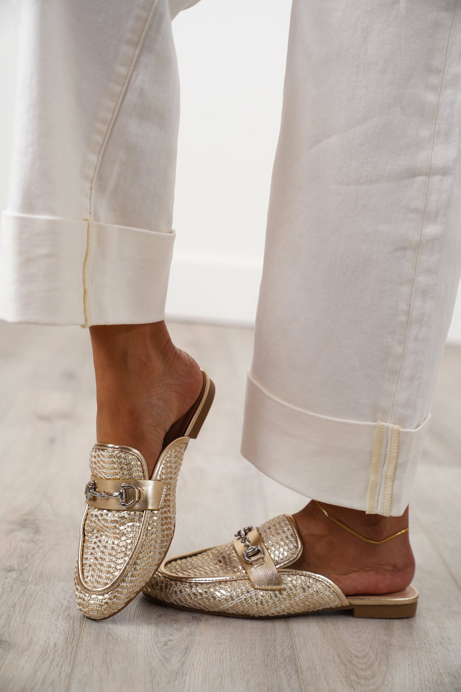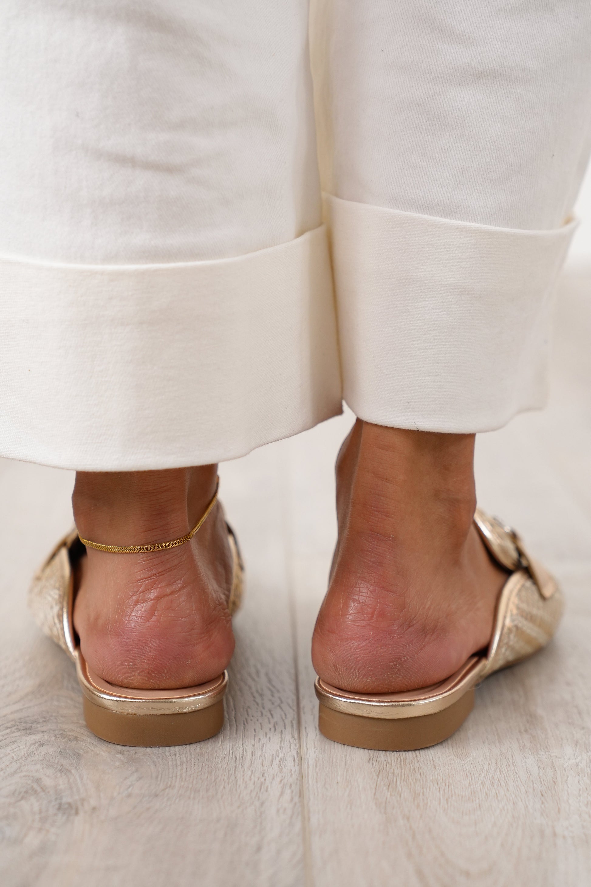 Shimmer and structure, these woven metallic loafers from MIA bring both. The luxe gold tone with that polished metal buckle instantly upgrades your look without trying too hard. Slip them on with wide-leg trousers and a crisp blouse for work, or style them with denim and a breezy top for weekend glam. They’re the kind of shoe that says “yes, I have my life together”, even if you don’t have coffee yet.