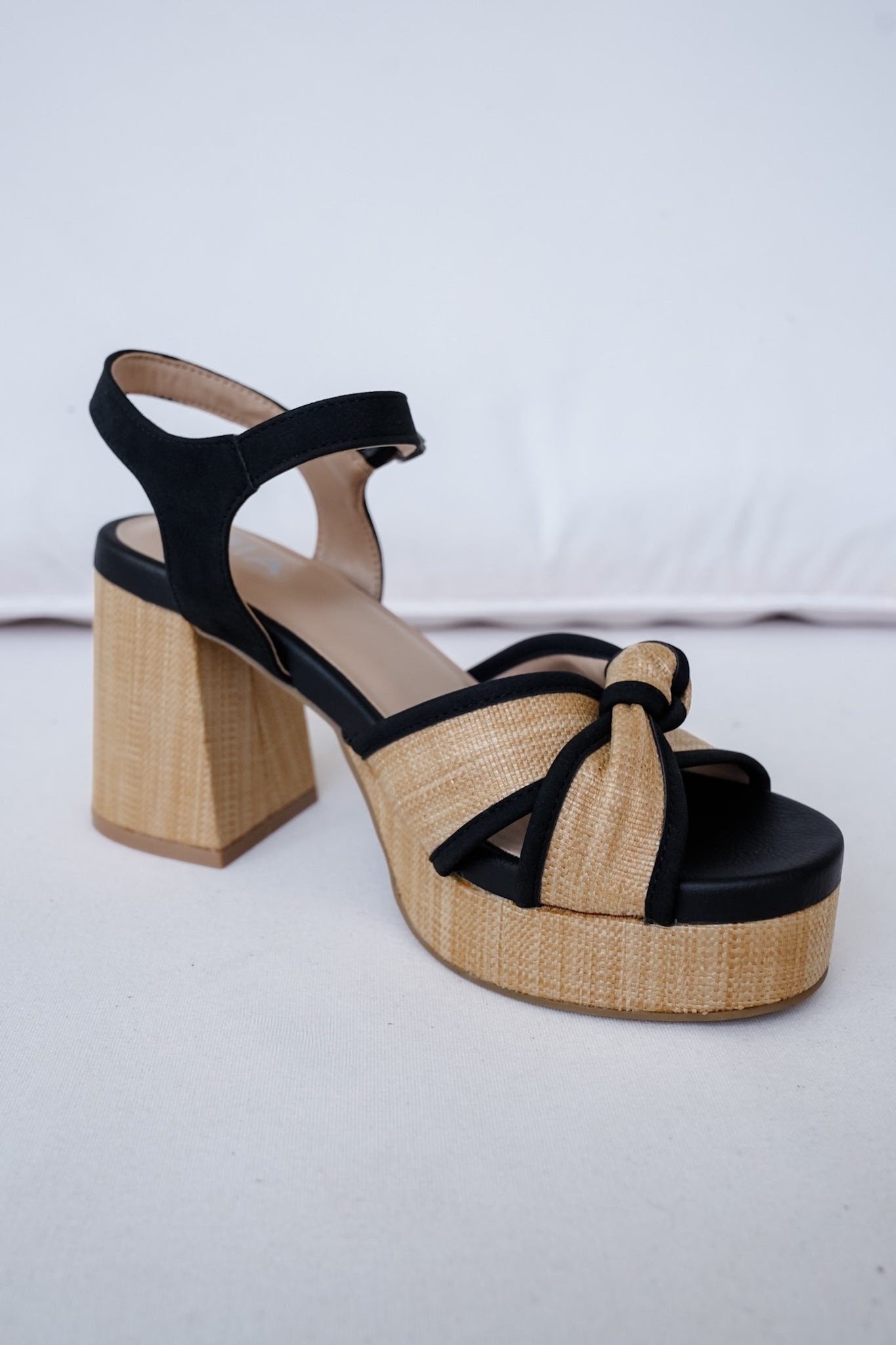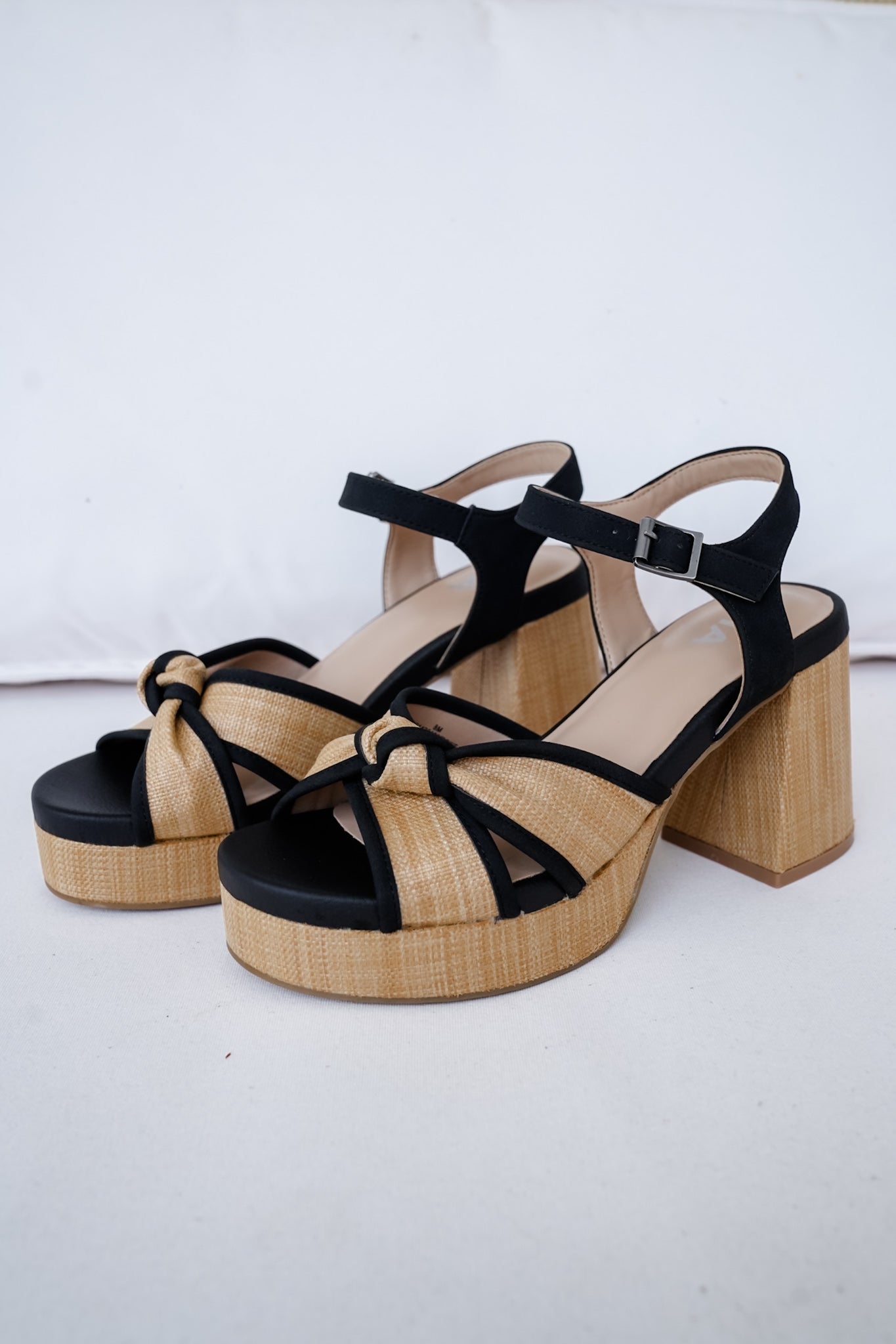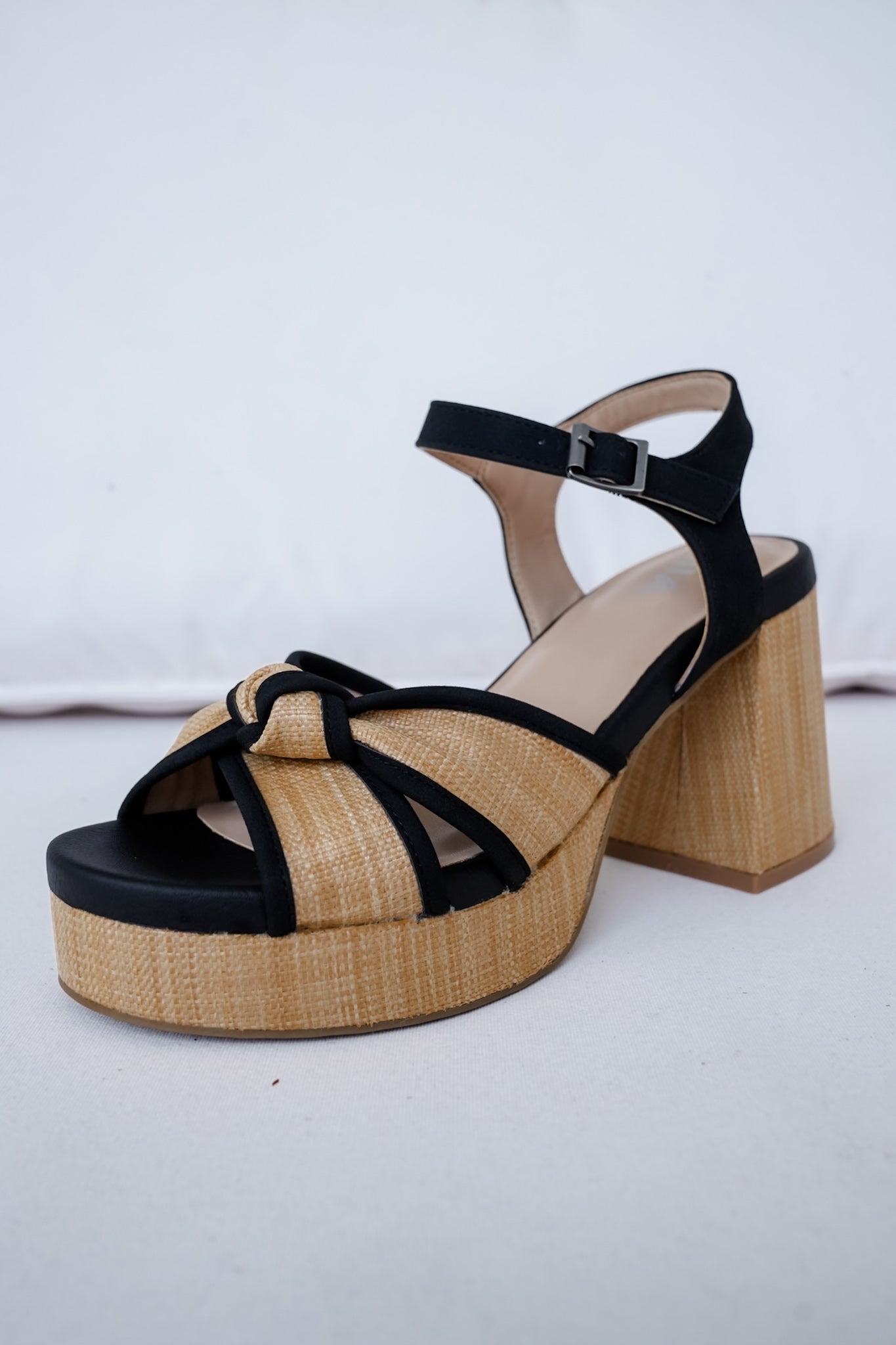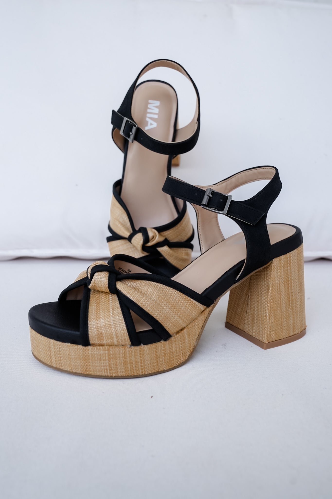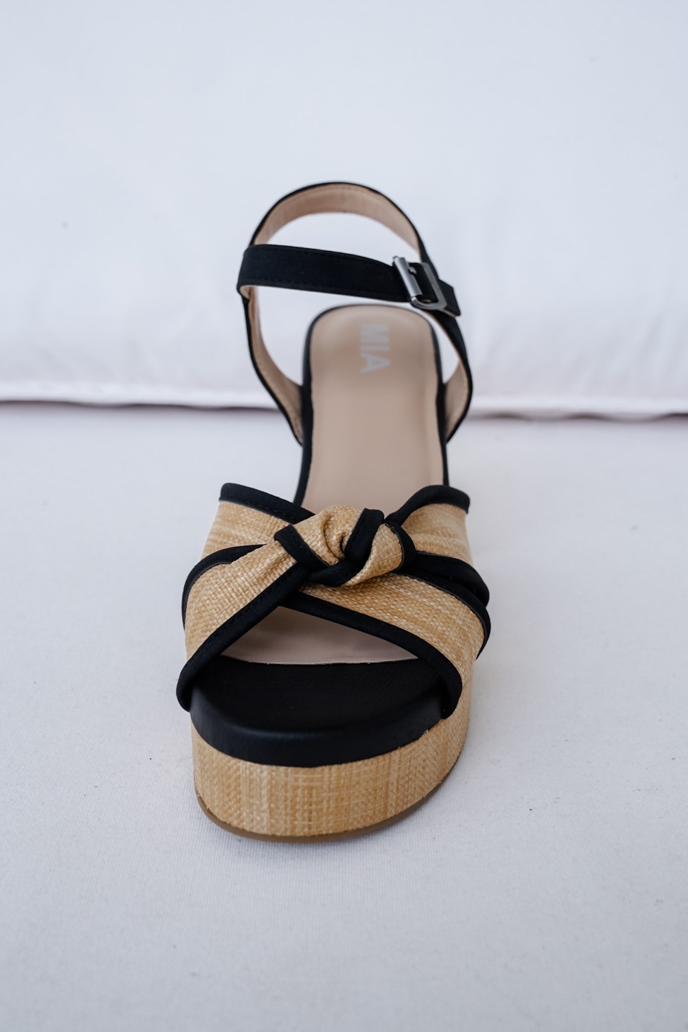MIA Woven Platform Block Heel Sandal with Knotted Detail