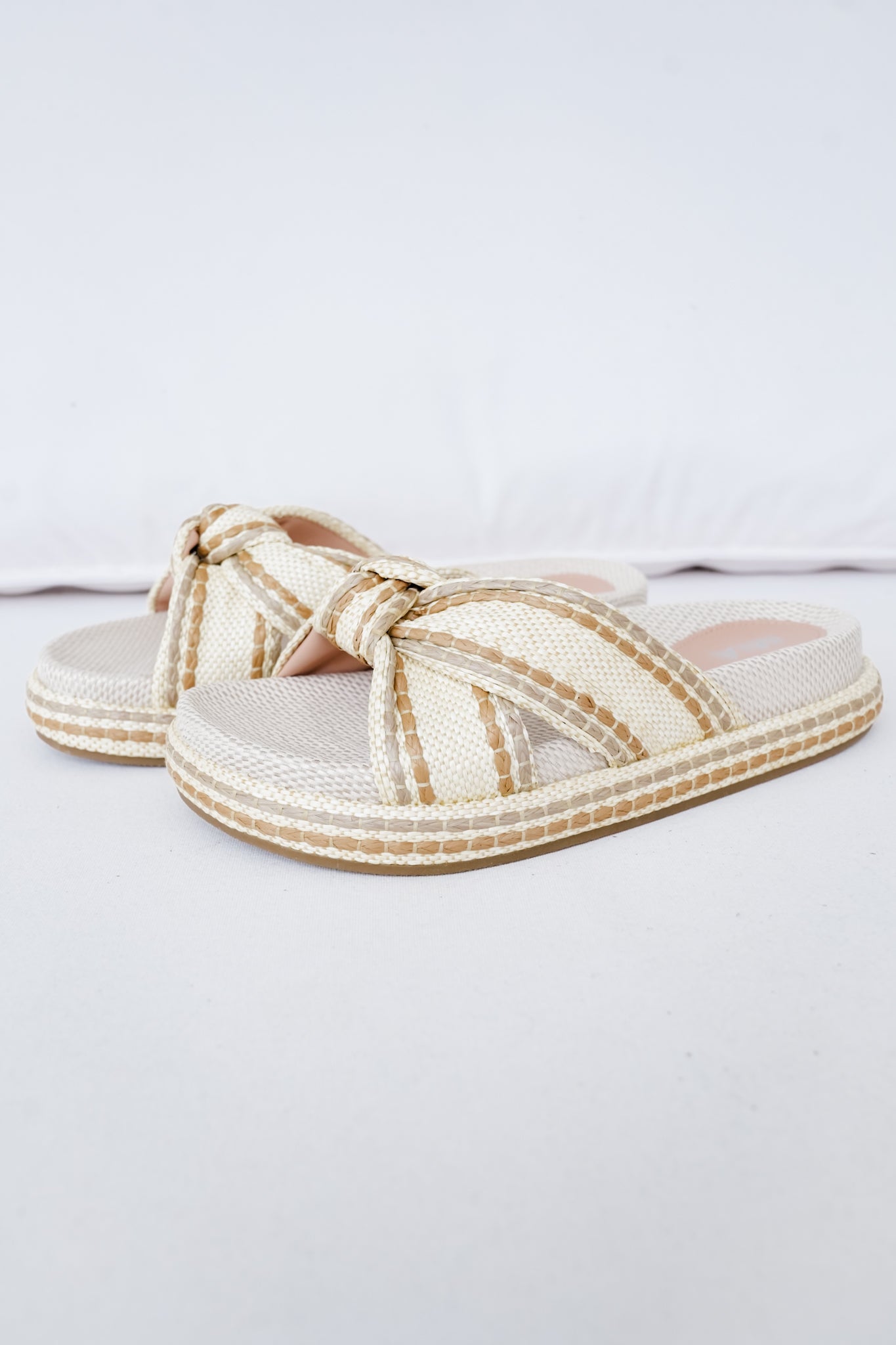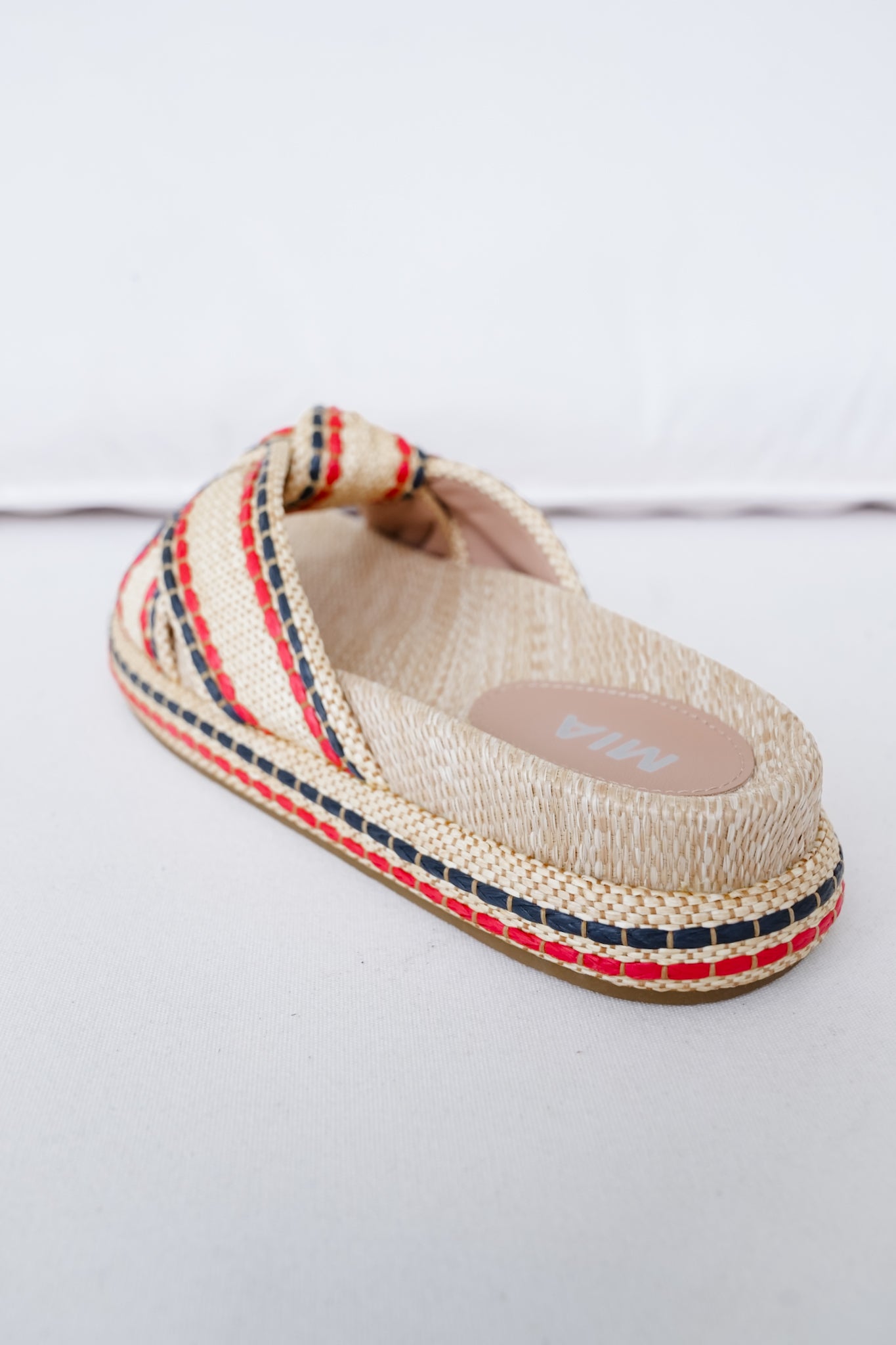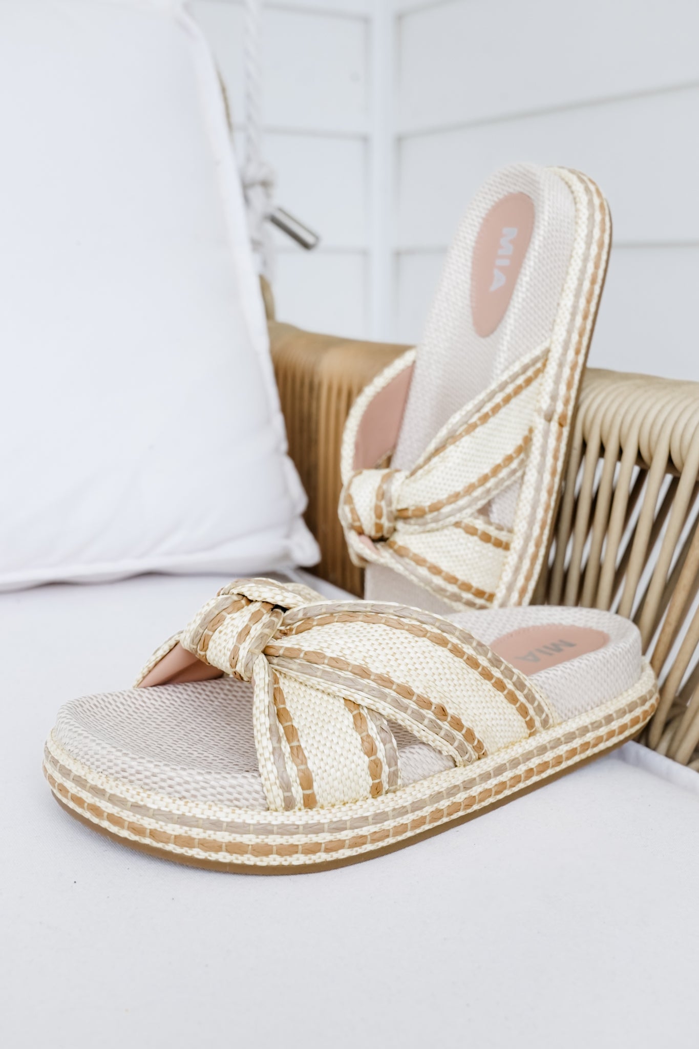 MIA Woven Platform Slide Sandals with Braided Cross-Strap Detail