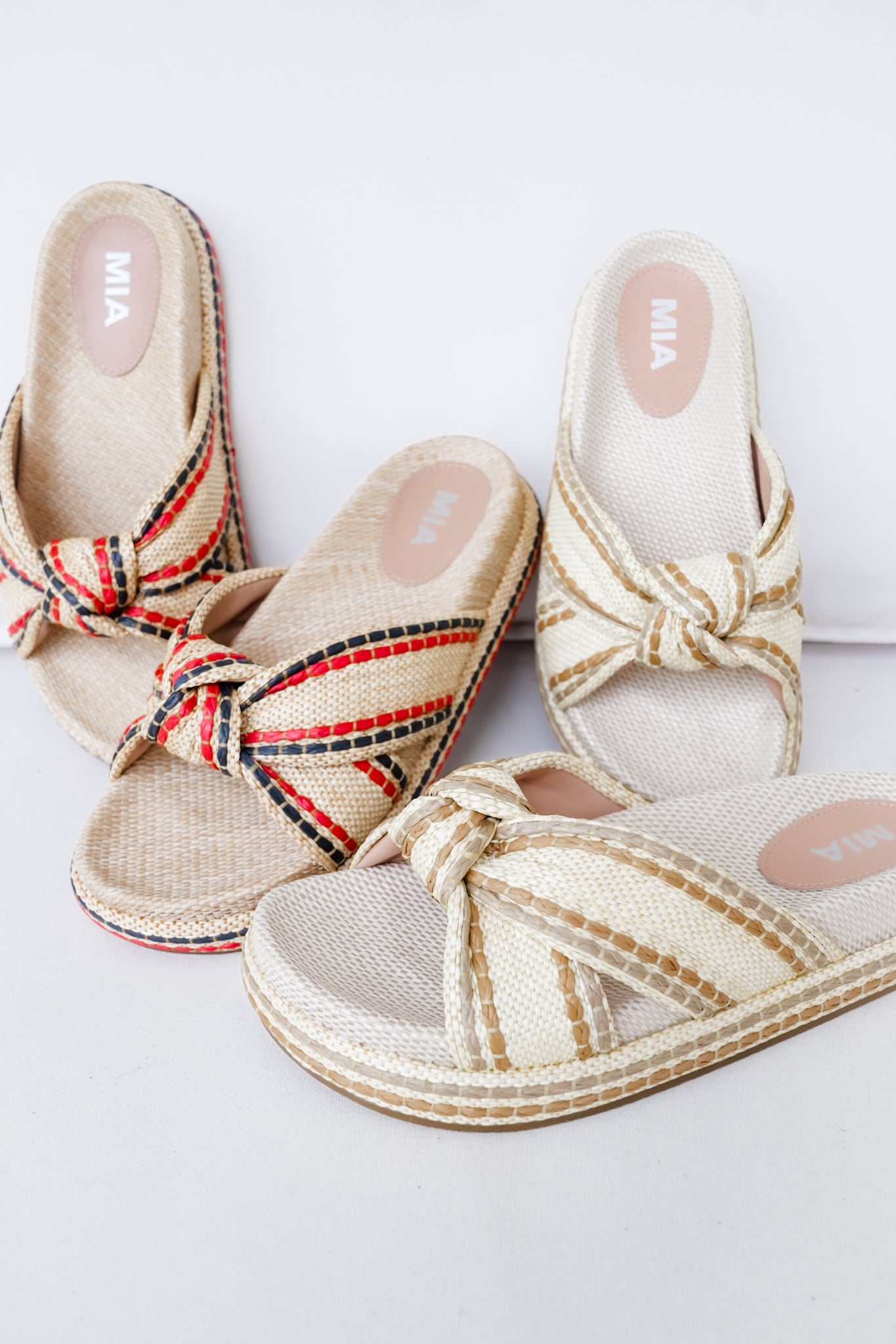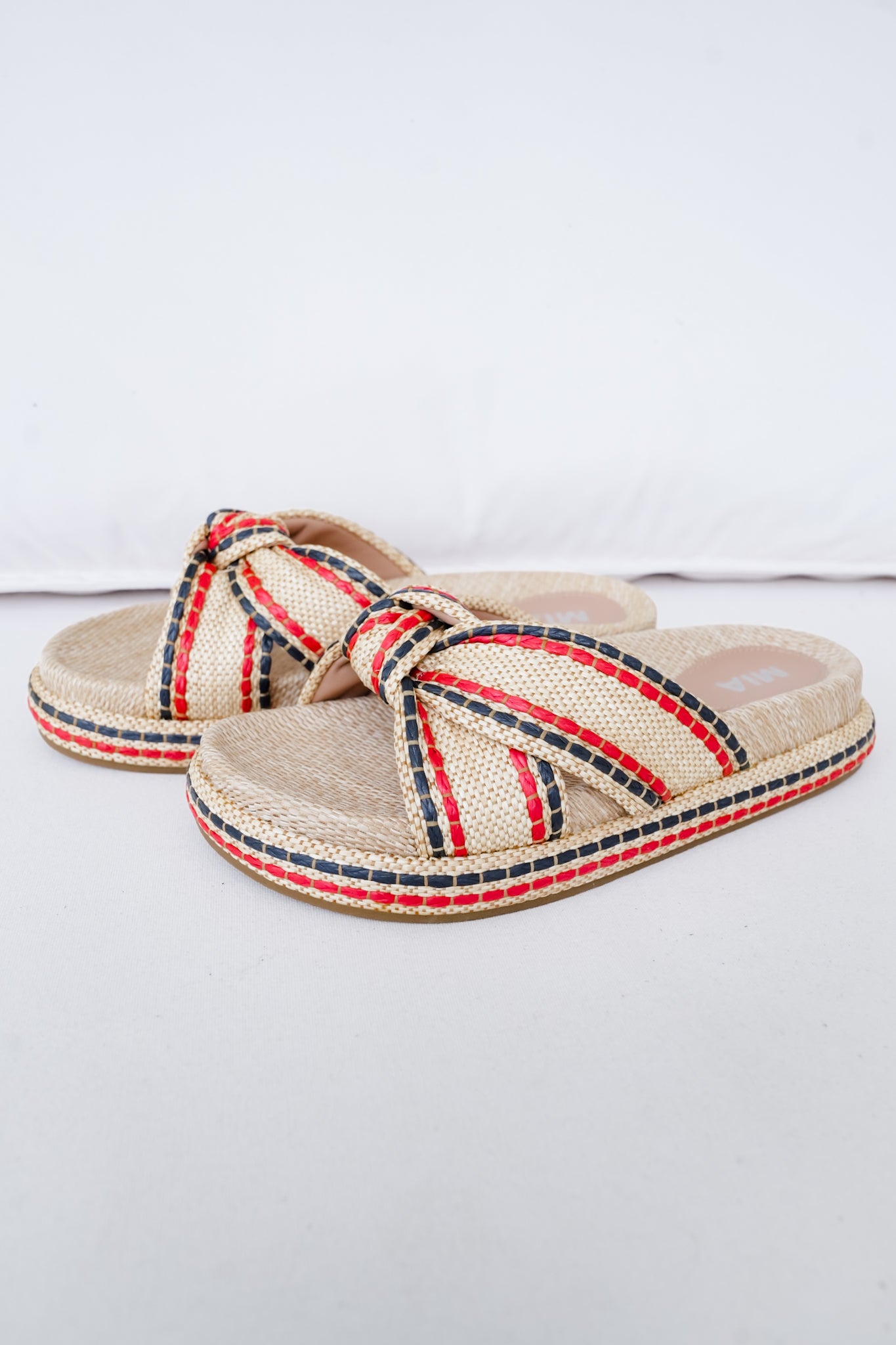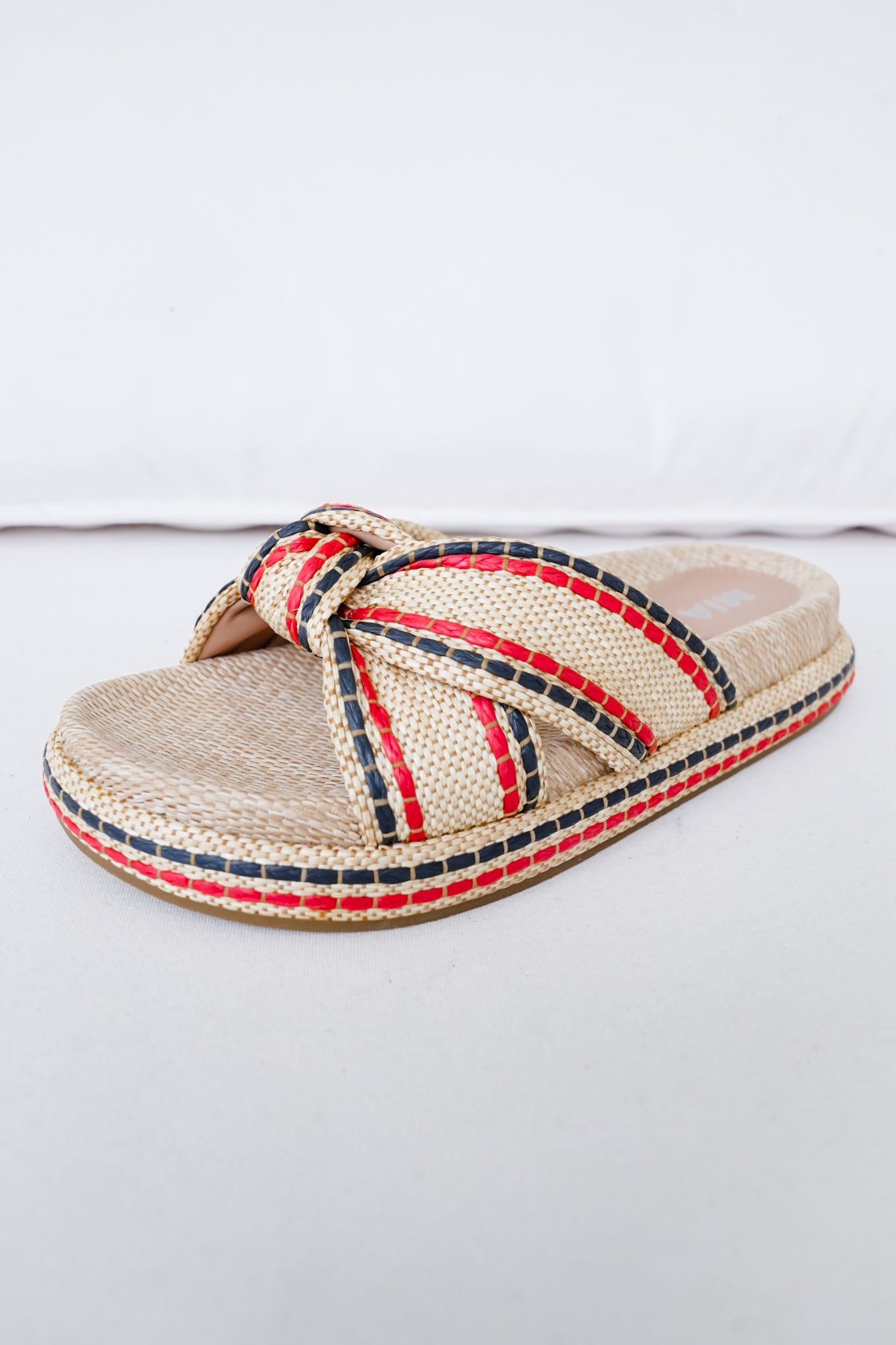 MIA Woven Platform Slide Sandals with Braided Cross-Strap Detail