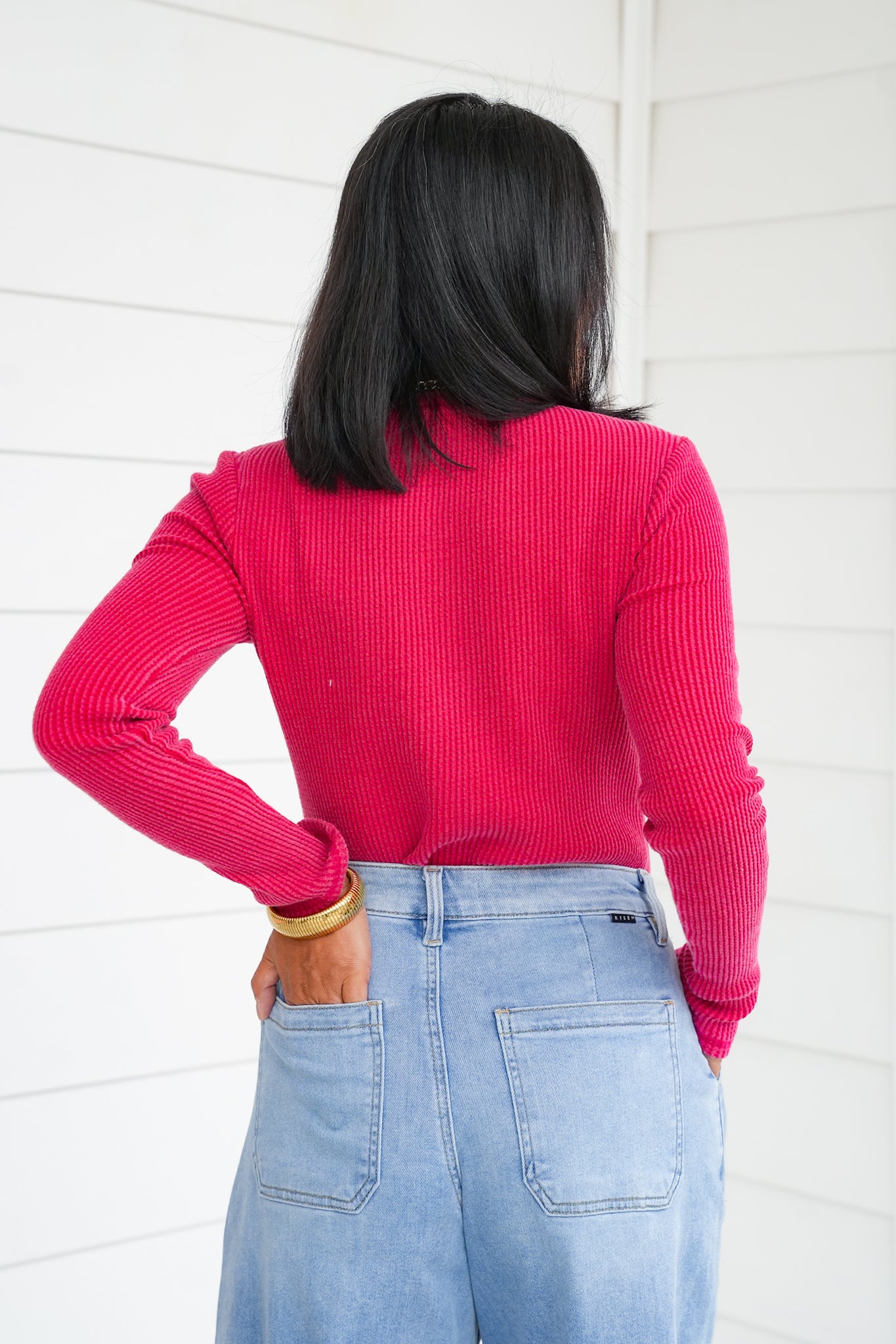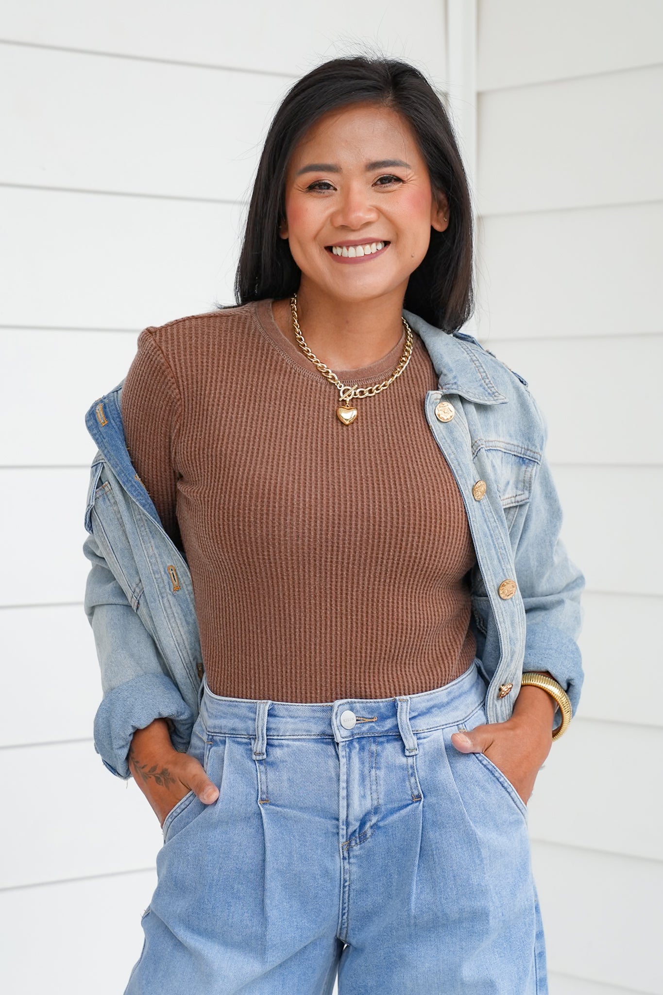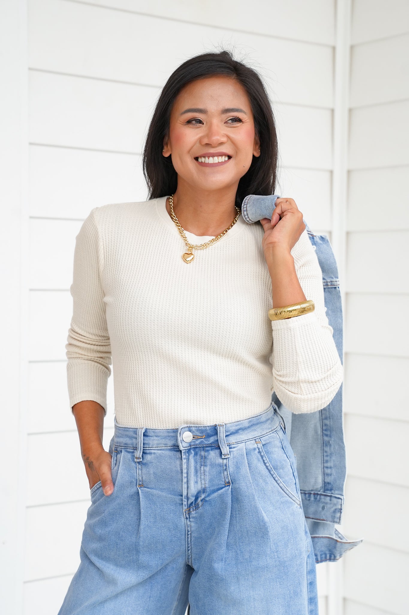 This mineral wash waffle knit top is the elevated basic your closet has been waiting for! With its soft texture, classic crew neckline, and long sleeves, it’s easy to wear on its own or layered under jackets, cardigans, or vests. The mineral wash gives it that effortlessly cool, lived-in vibe while still feeling polished enough for everyday wear. A versatile piece like this is one you’ll find yourself reaching for again and again, whether you’re dressing it up or keeping it casual.