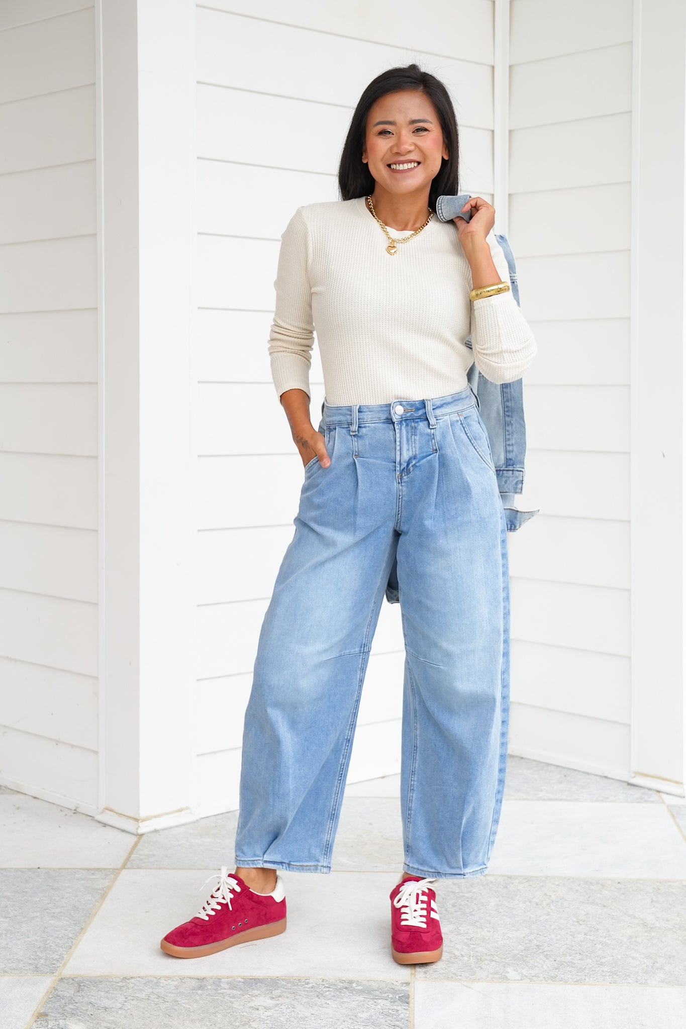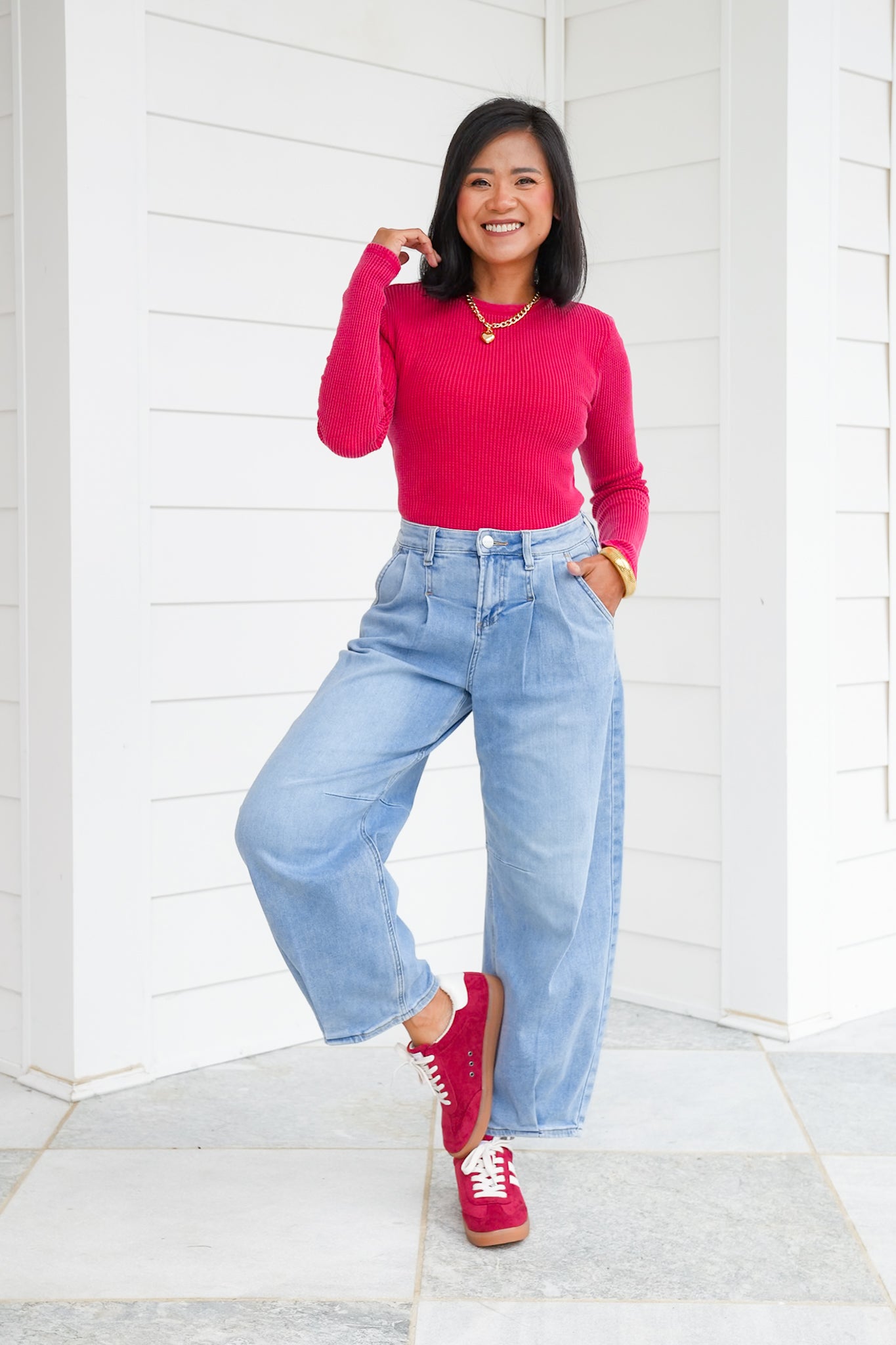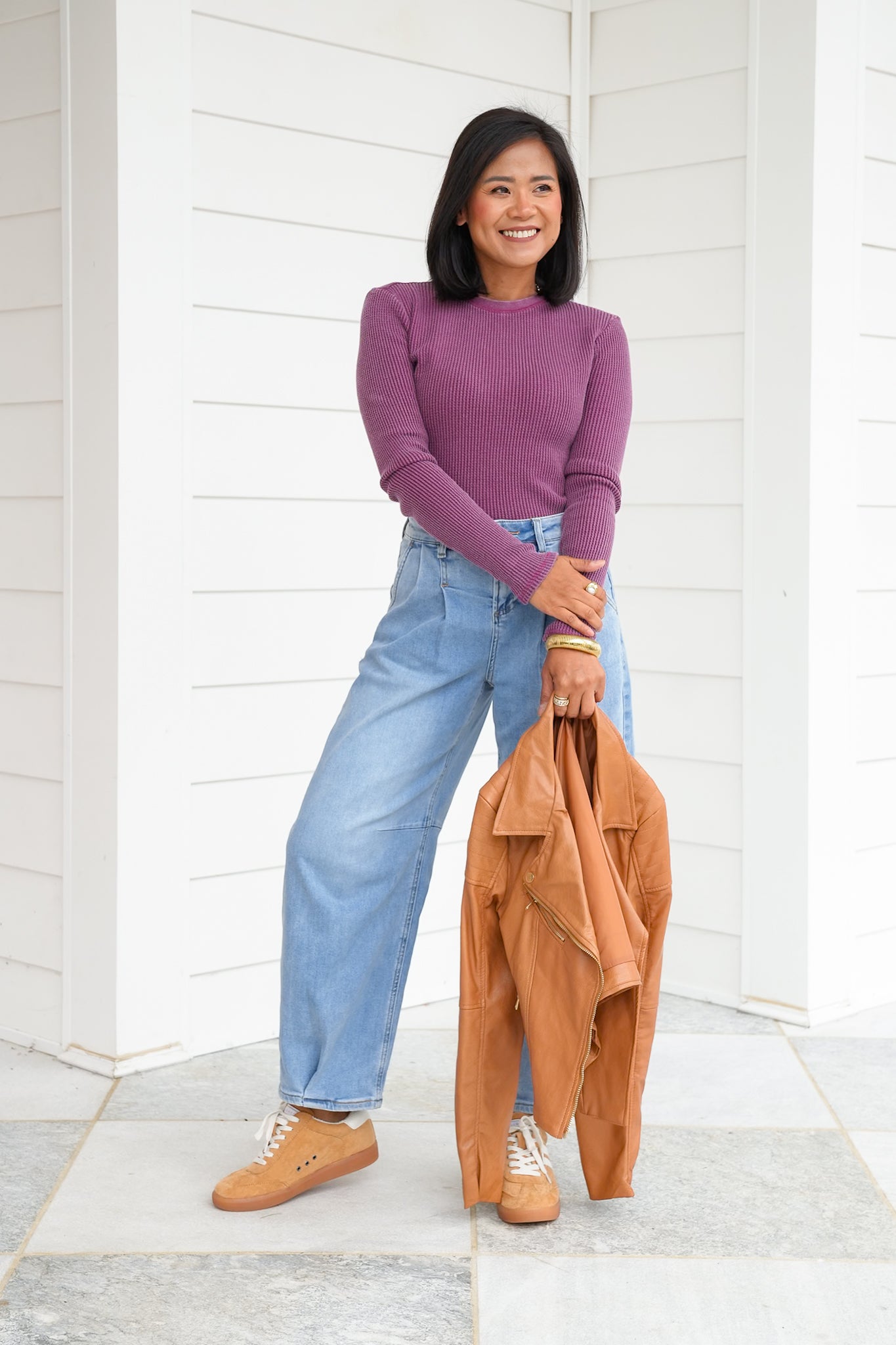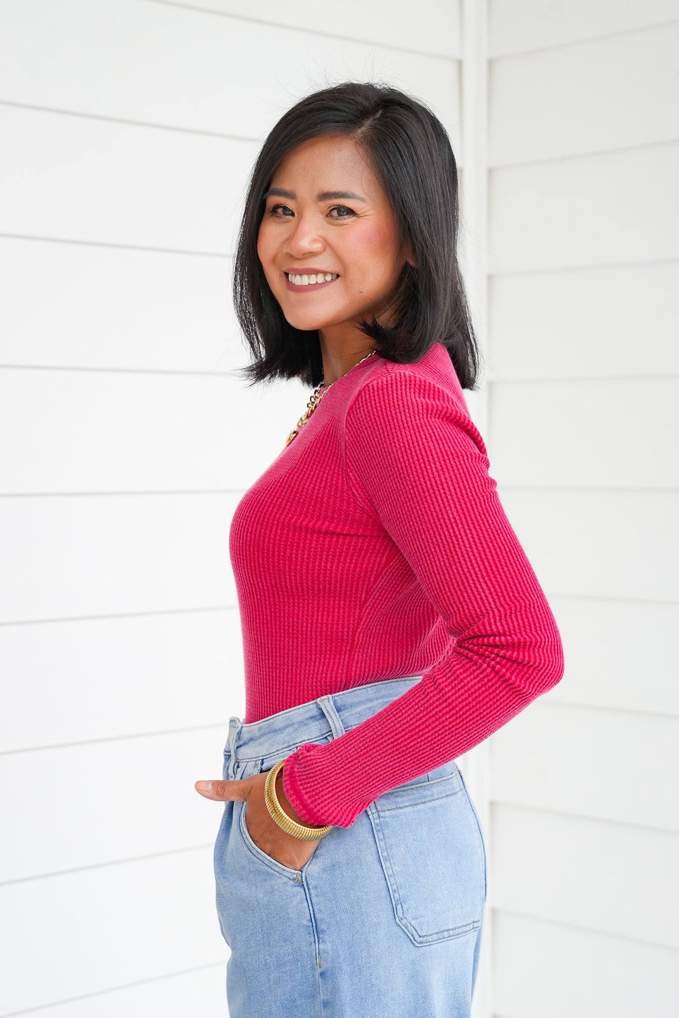 This mineral wash waffle knit top is the elevated basic your closet has been waiting for! With its soft texture, classic crew neckline, and long sleeves, it’s easy to wear on its own or layered under jackets, cardigans, or vests. The mineral wash gives it that effortlessly cool, lived-in vibe while still feeling polished enough for everyday wear. A versatile piece like this is one you’ll find yourself reaching for again and again, whether you’re dressing it up or keeping it casual.