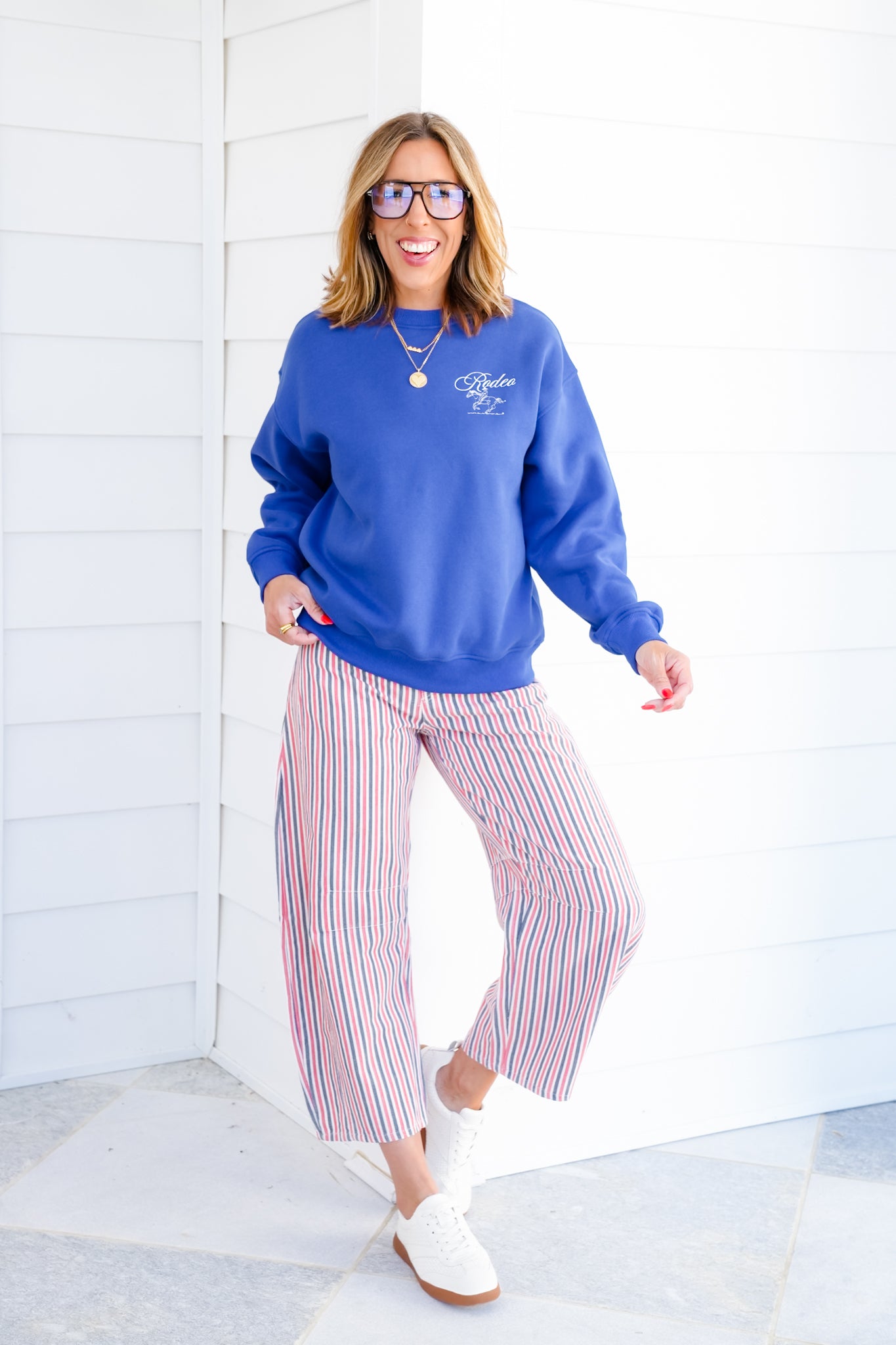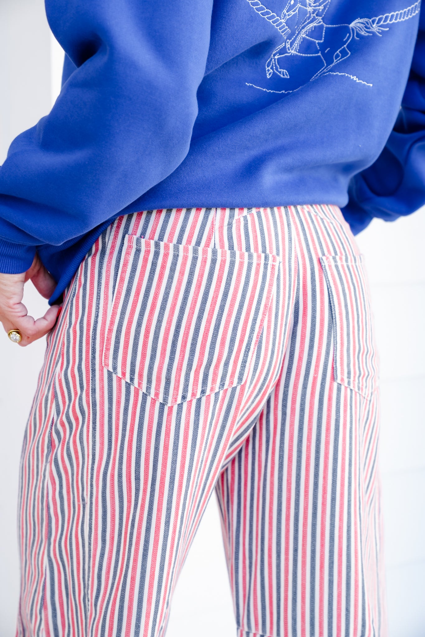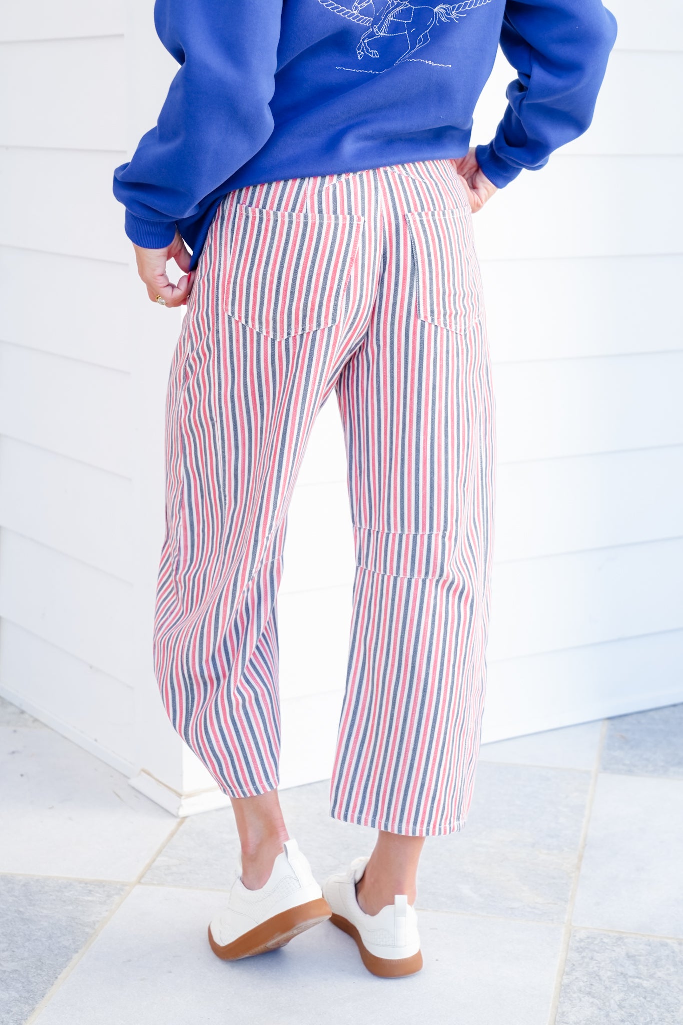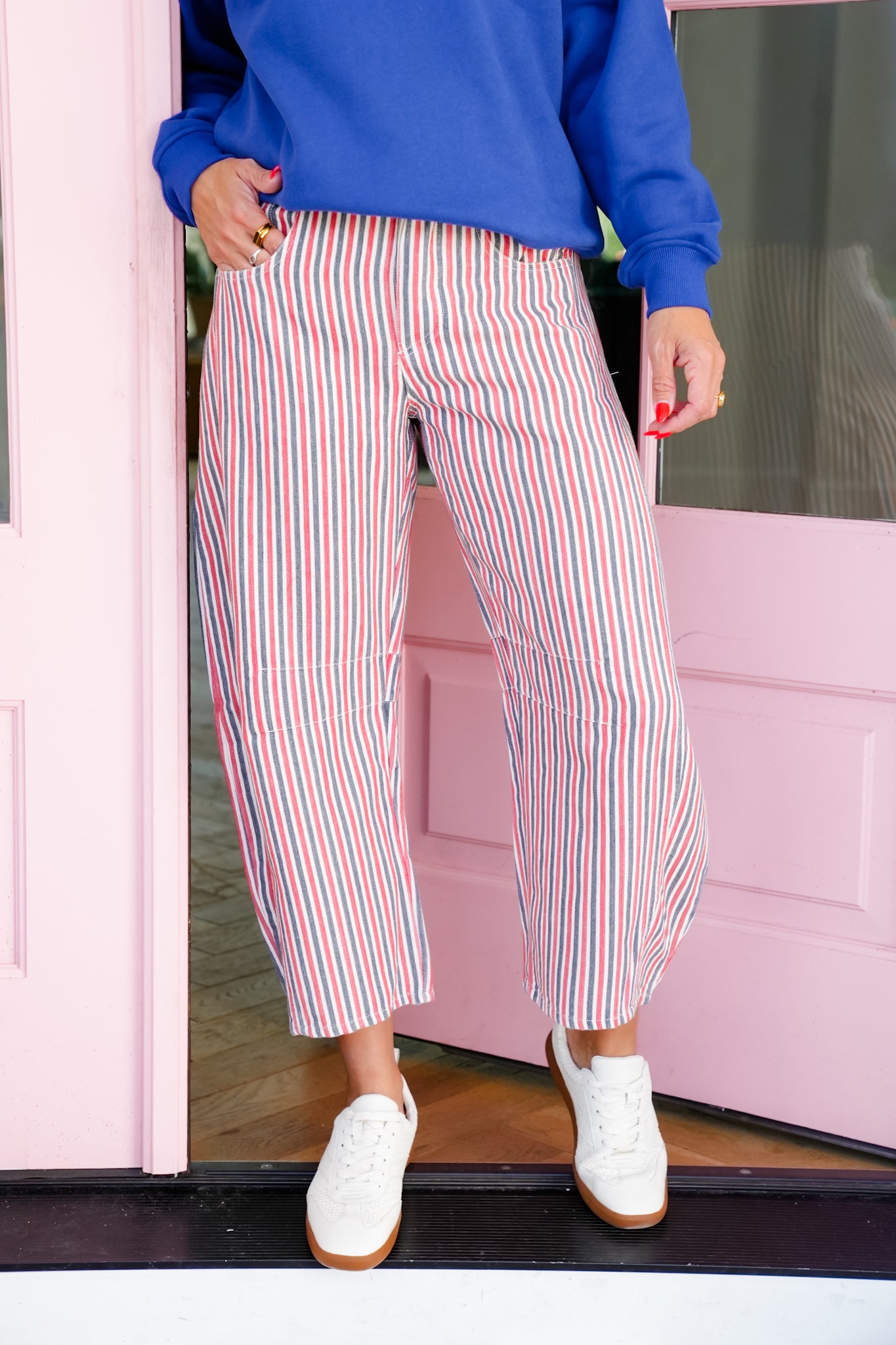 Add a pop of fun to your wardrobe with these striped barrel pants. The relaxed silhouette and retro-inspired stripes make them the kind of piece that instantly stands out. Pair with a graphic tee or a cozy pullover for casual days, or tuck in a blouse for a playful twist on classic styling.