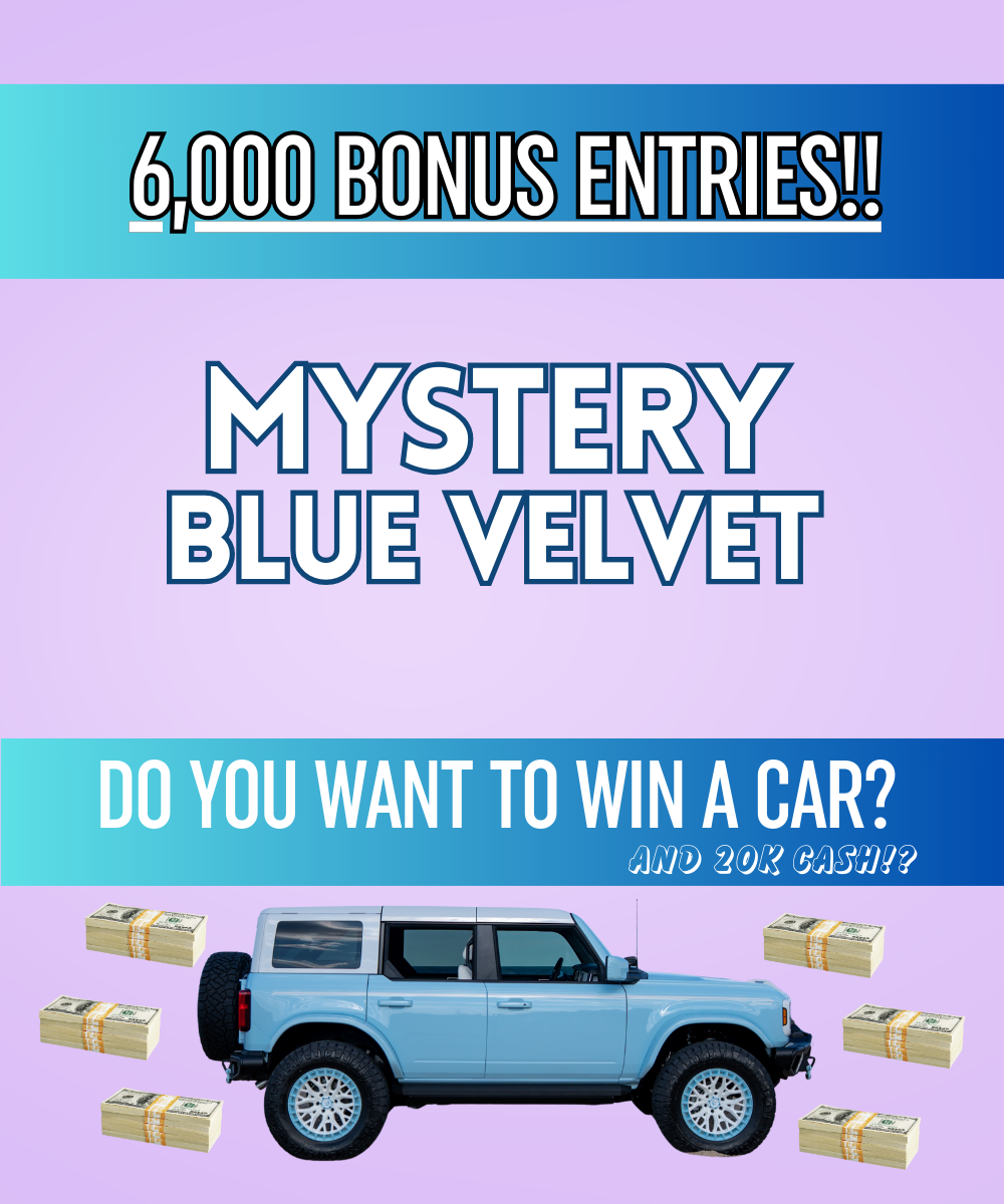 Grab our 6000 ENTRIES BLUE VELVET bundle and score instant entries into our Dream Car Giveaway! It’s quick, easy, and puts you that much closer to cruising away in your dream ride. 🚗💨