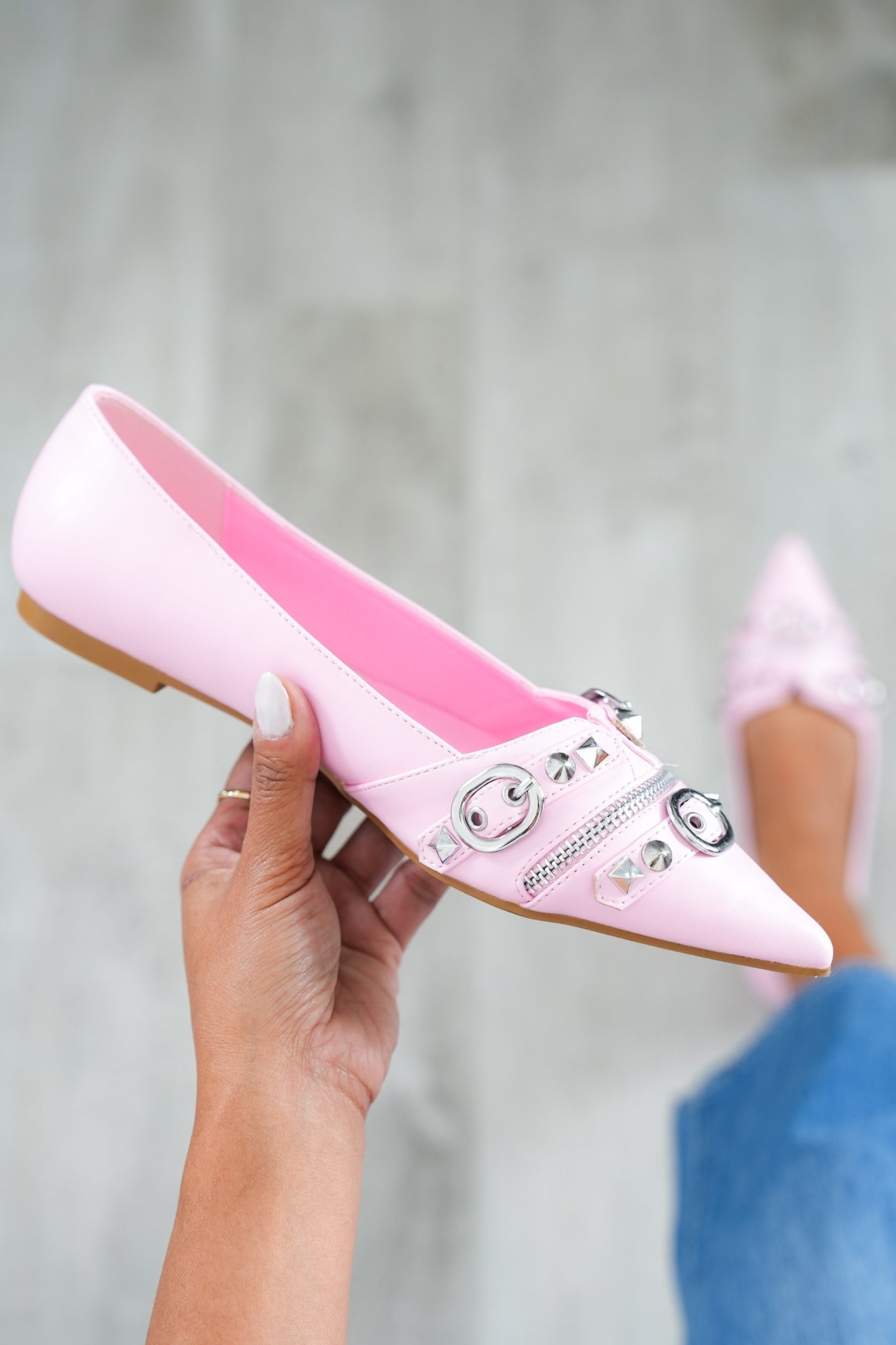 These darling pink flats bring a perfect blend of sweet and edgy style to your shoe collection! The pretty blush shade gets a cool upgrade with zipper and stud details, while the pointed toe adds a sleek touch to this versatile design. They are the perfect choice for adding a feminine touch with just the right amount of attitude to any outfit!