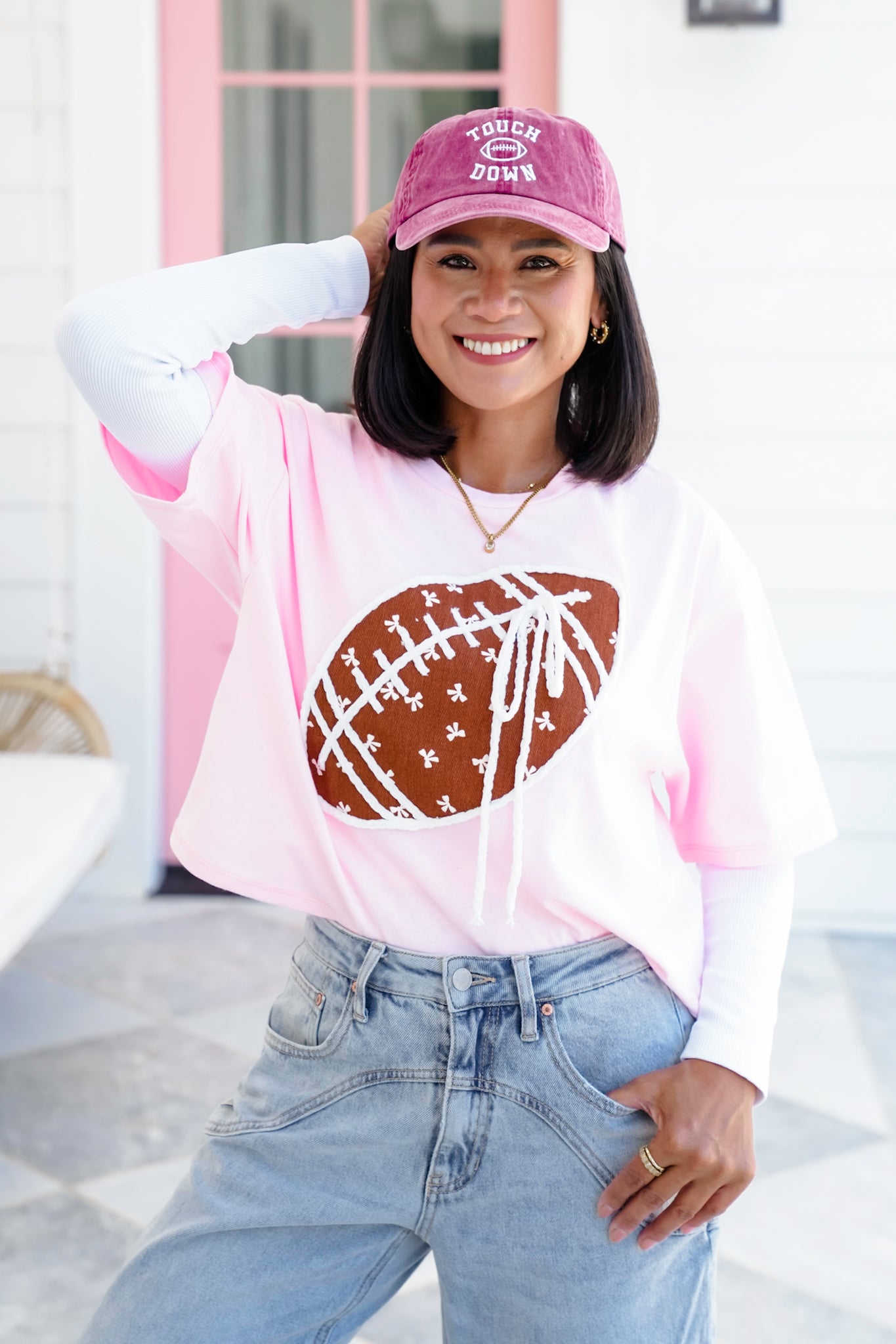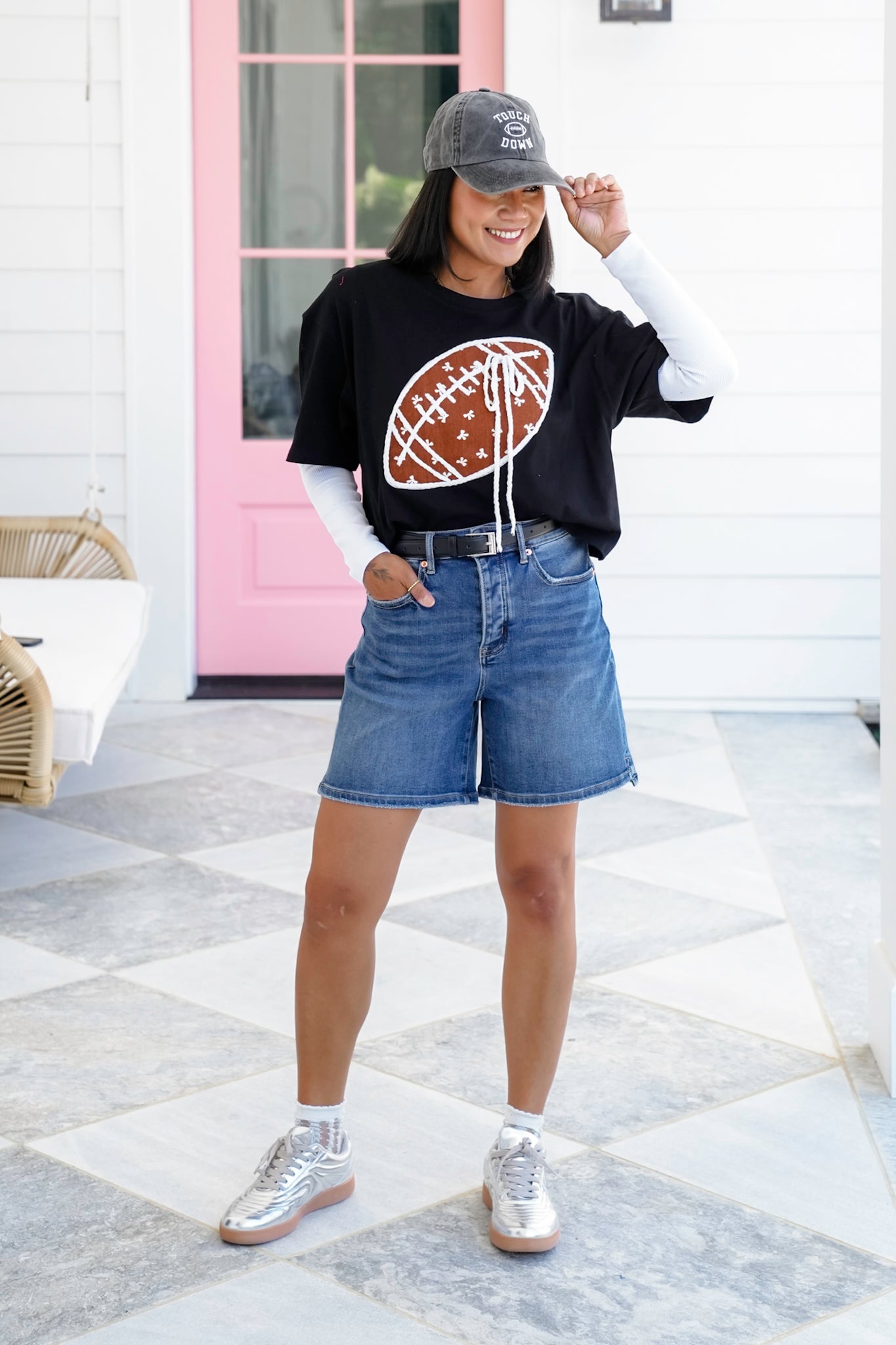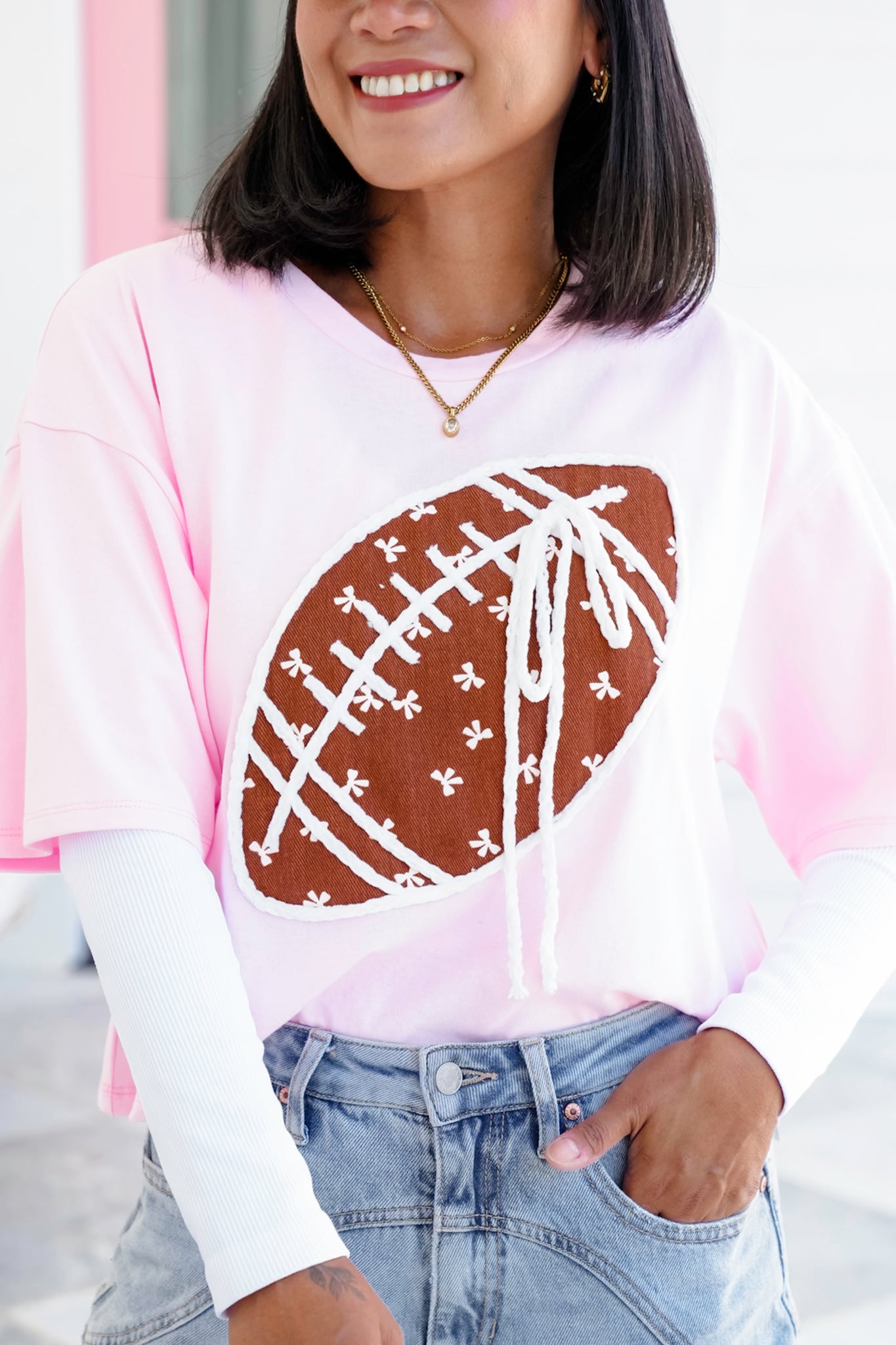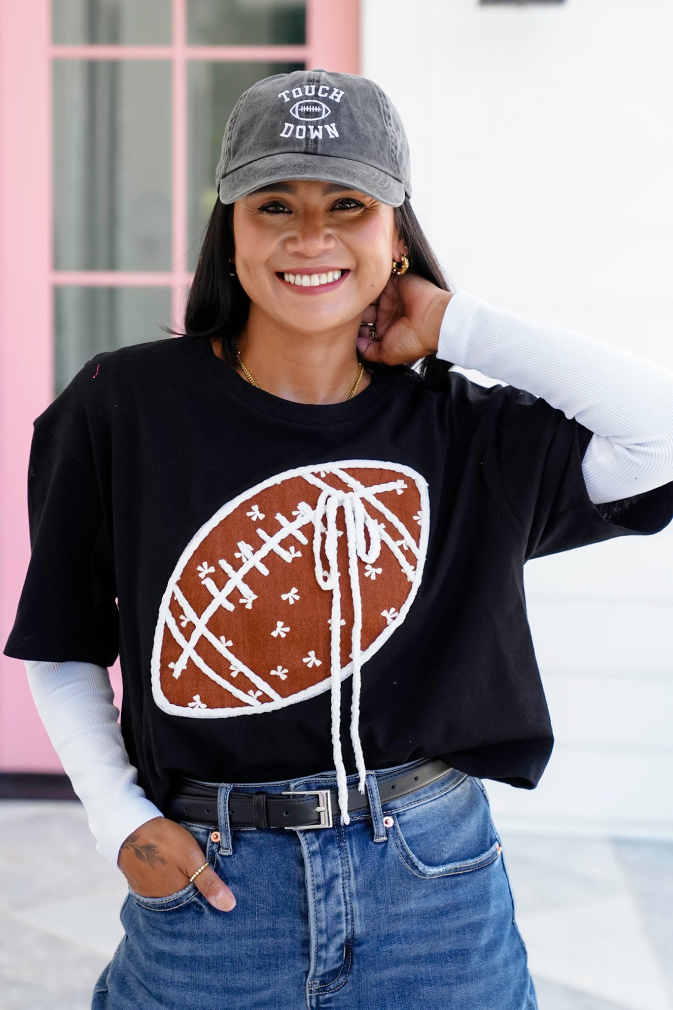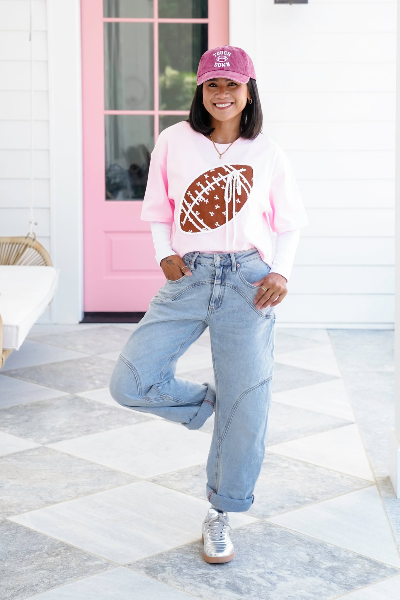 Whether you’re in the stands or at the snack table, this football graphic tee brings the fun! The oversized football detail on the front adds a sporty, playful twist, while the roomy fit keeps you feeling relaxed and ready for anything. Pair with wide-leg jeans, leggings, or denim skirts—this one’s made for team spirit with a side of comfort.