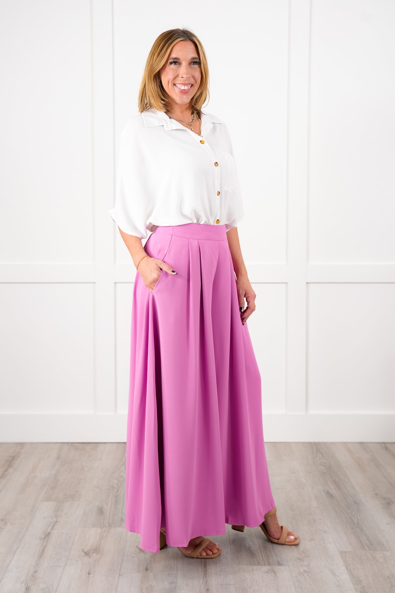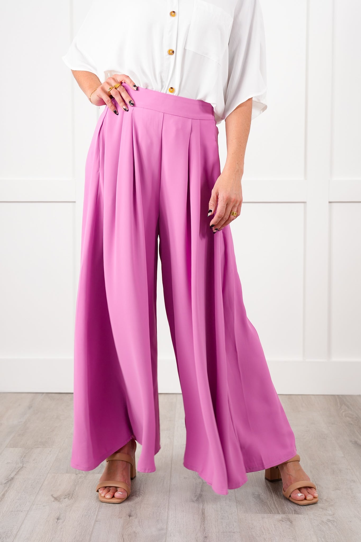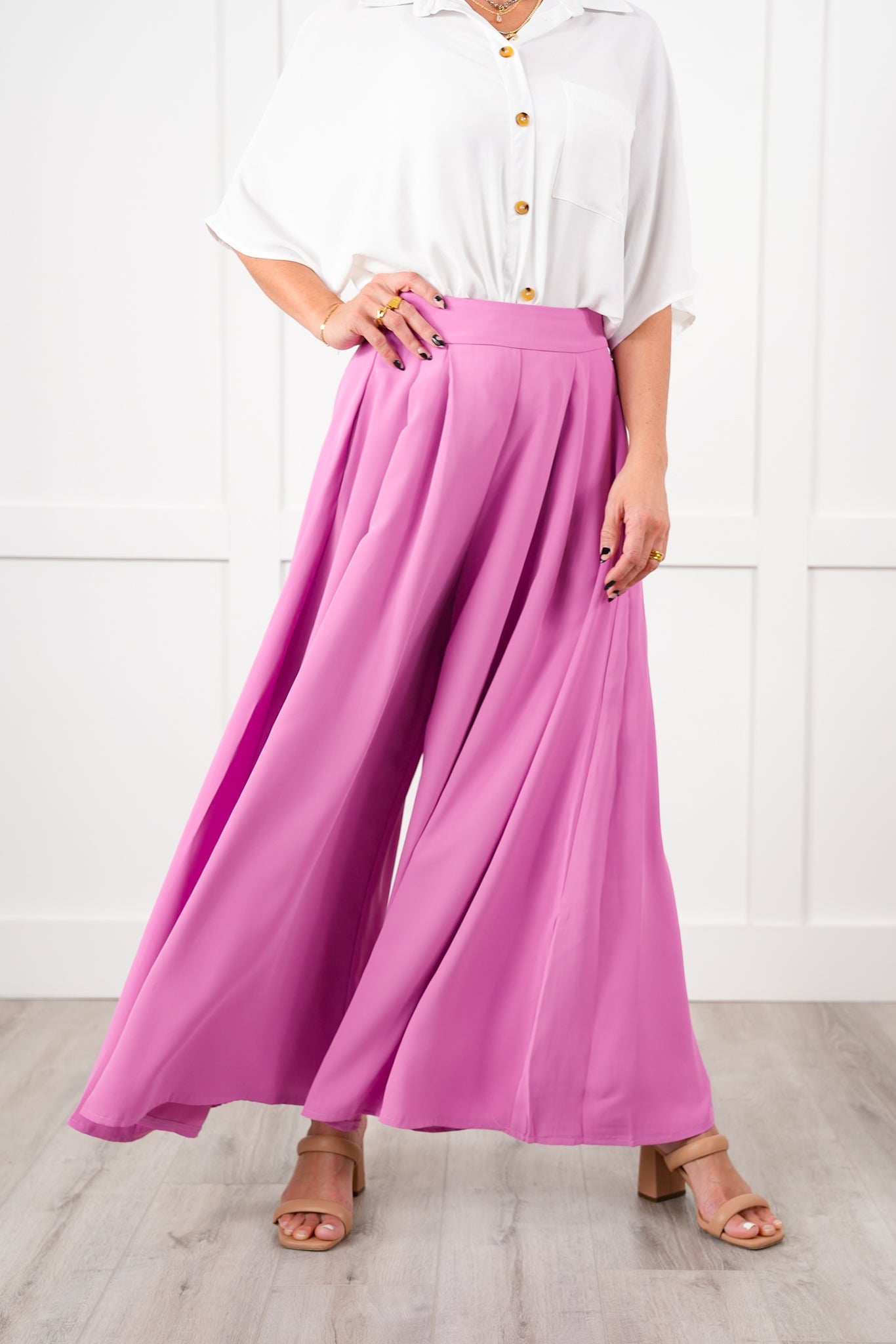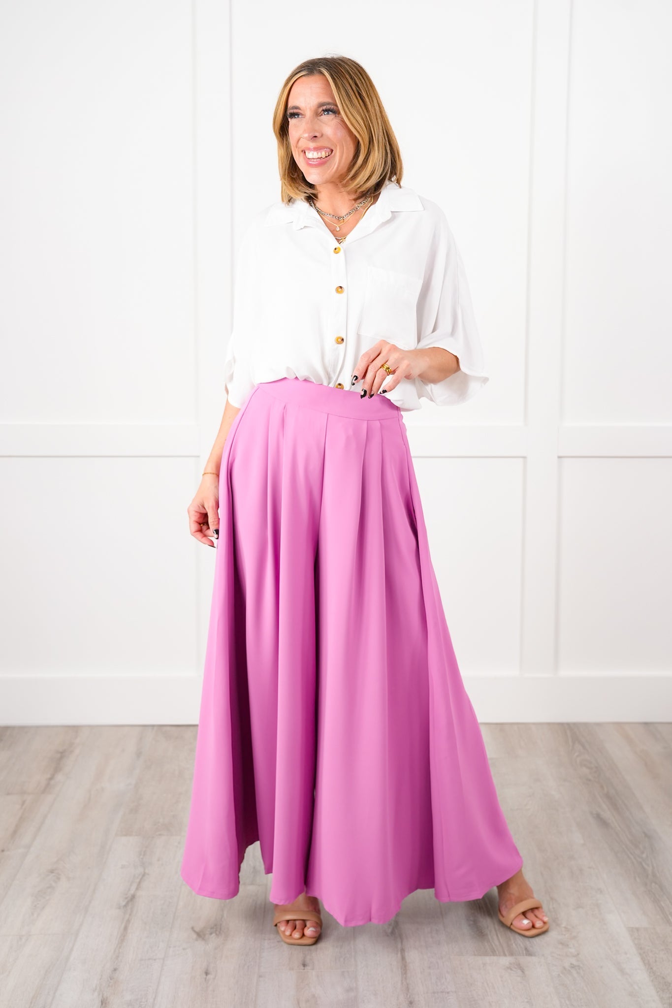 Bring on the compliments with these stunning pleated wide-leg pants! The high waist lengthens your frame, and graceful pleats make each step look like a runway strut. Tuck in a silky tank or add a fitted blazer for a night out that feels effortlessly elevated. These chic pants are available in multiple colors, so you can customize your look to suit your personality!
