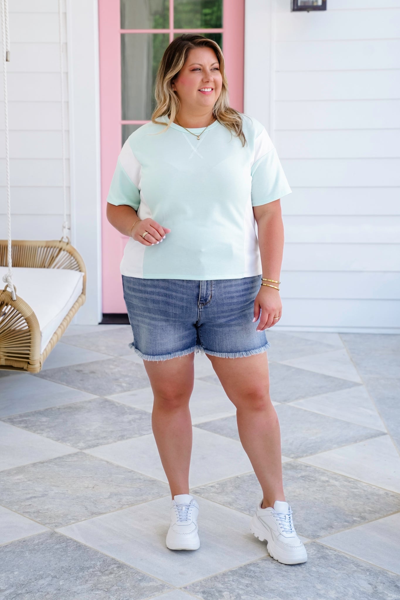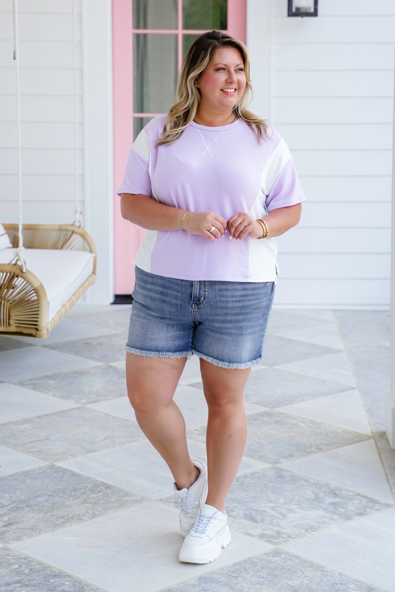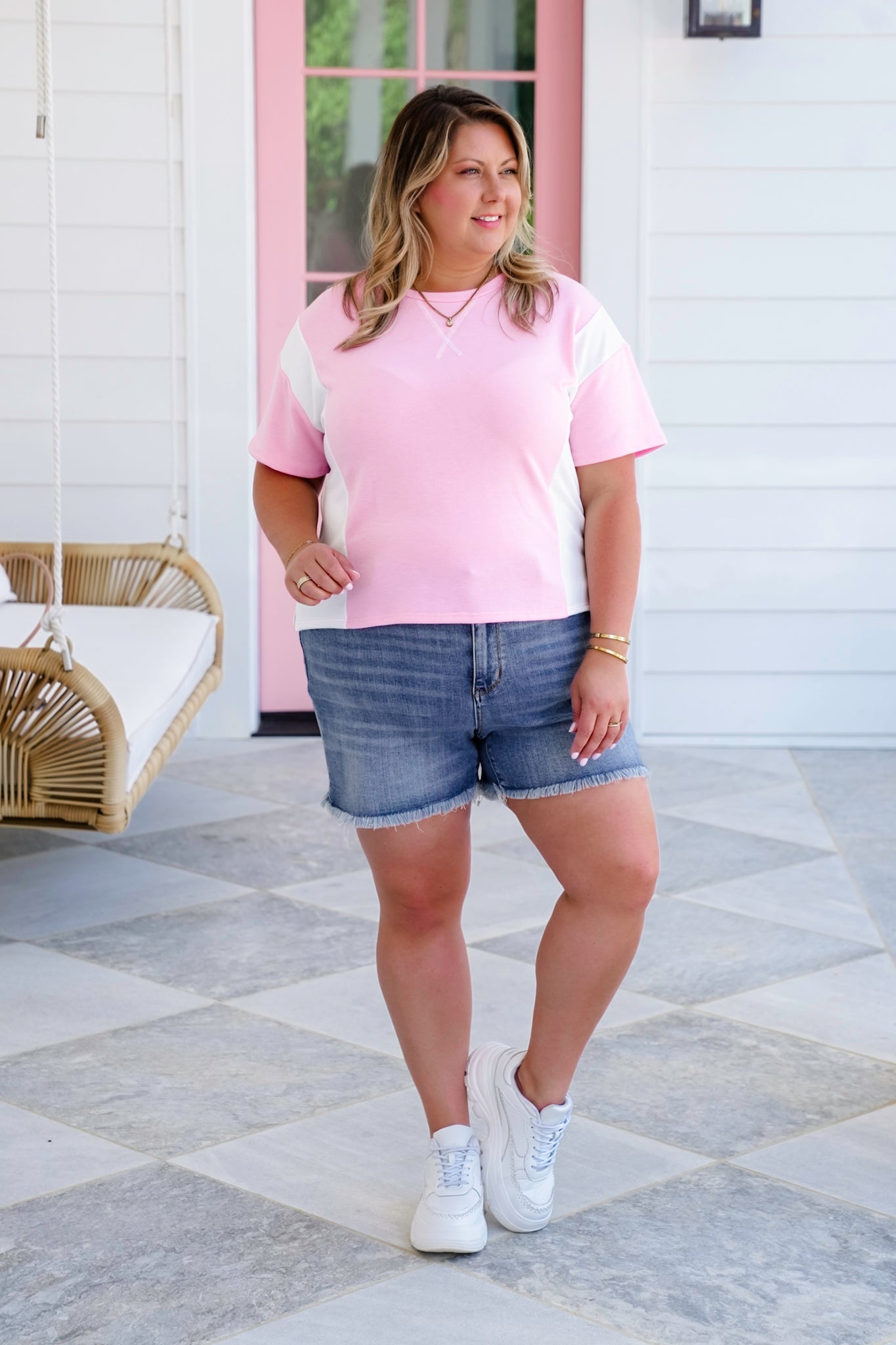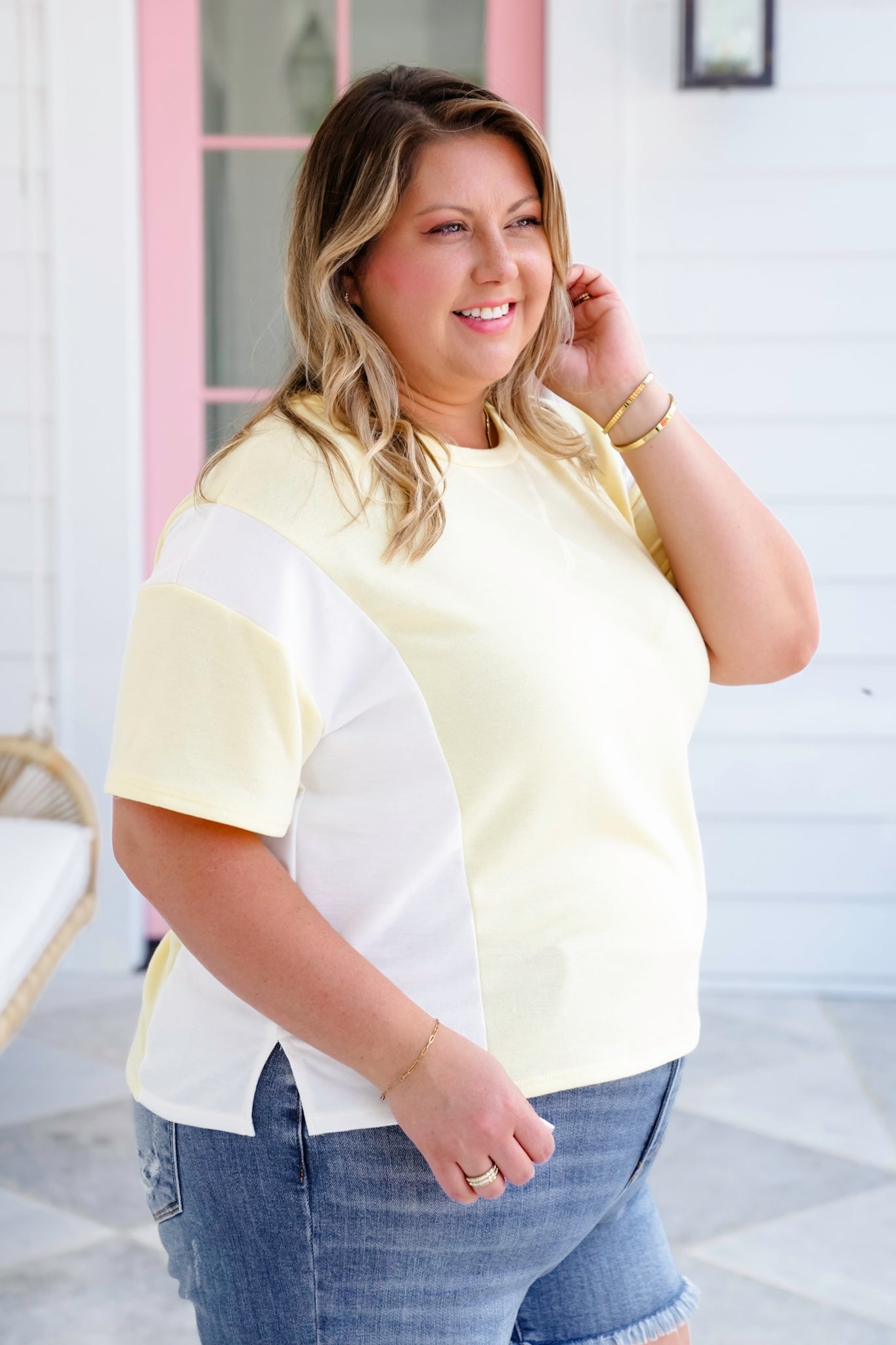 Soft, sweet, and full of laid-back charm, this color block tee is the perfect grab-and-go top for sunny days! The dreamy pastel tones and playful contrast make it pop, while the round neckline and boxy cut keep things relaxed and easygoing.