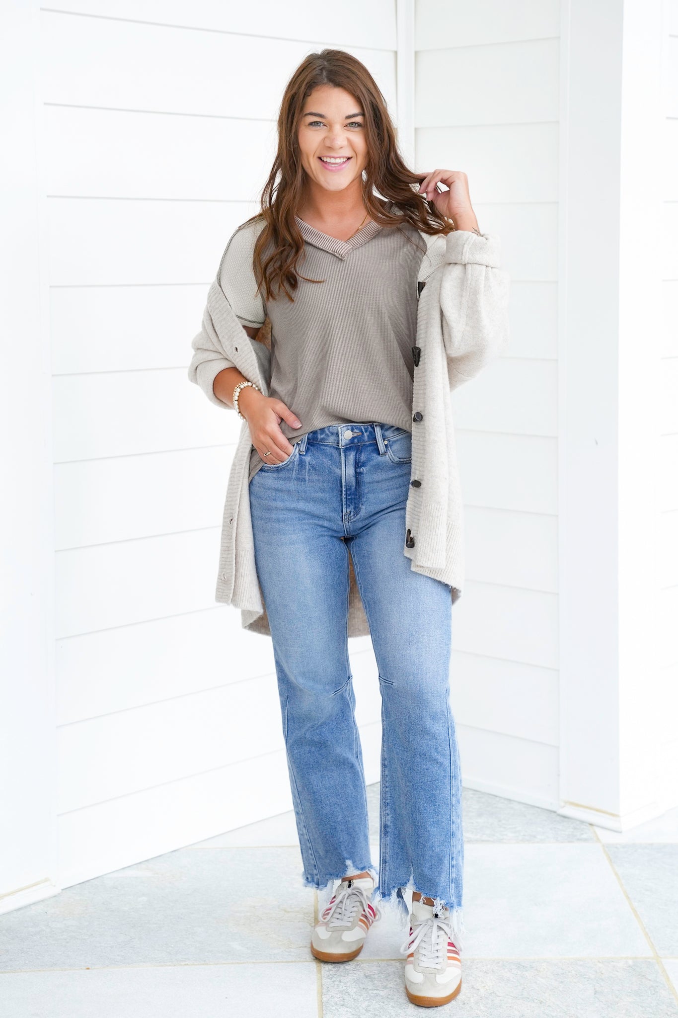 This top is the kind of piece that makes you feel put together without even trying. The pop of contrast at the neckline and sleeves adds just enough fun, while the relaxed drape flatters without clinging. Toss it on with jeans and sneakers or half-tuck it into shorts for weekend errands.