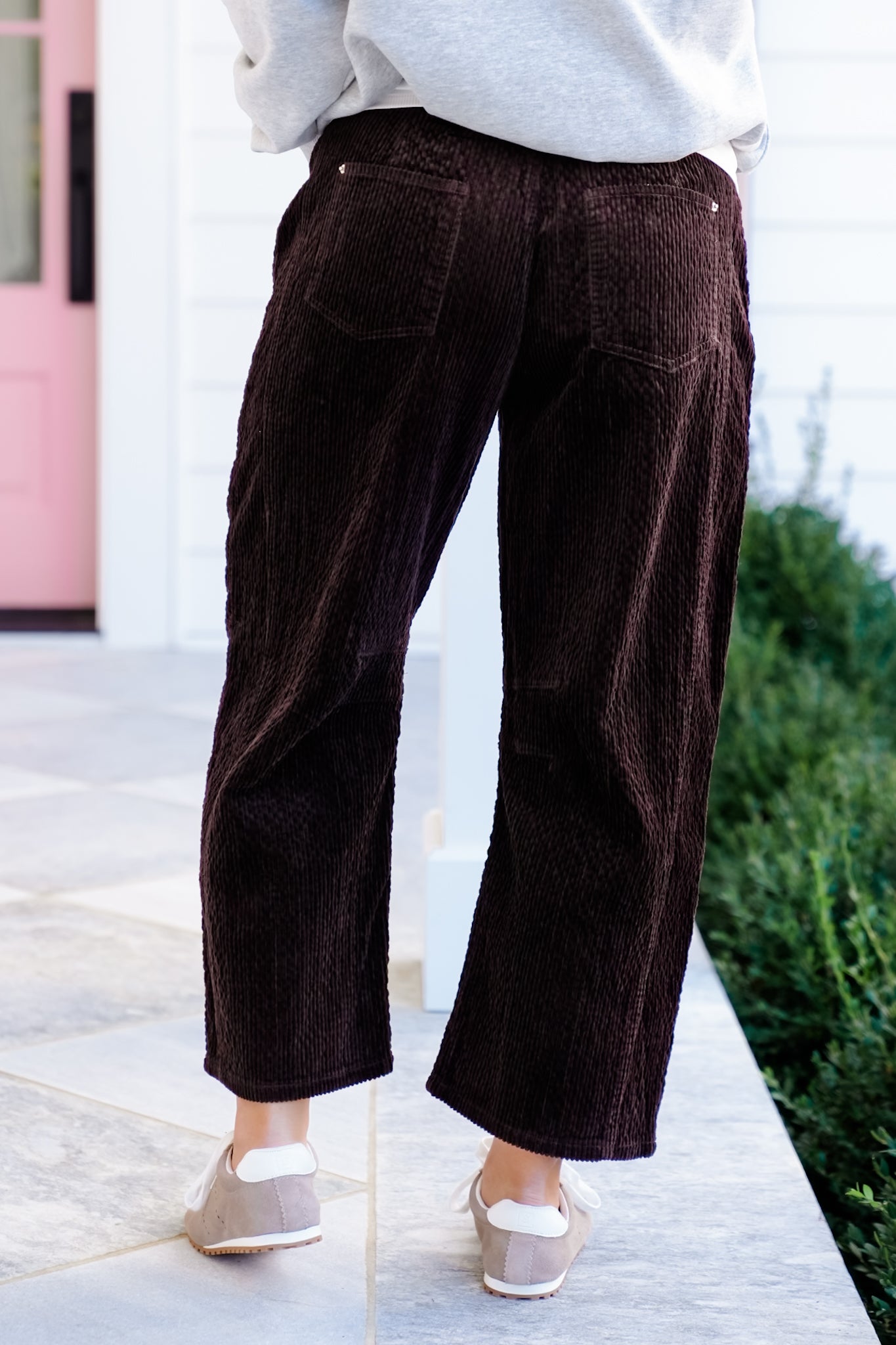 Plus/Reg Corduroy High Waist Barrel Leg Pants