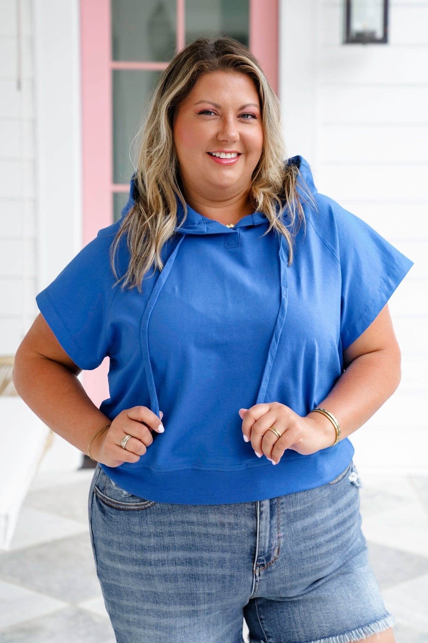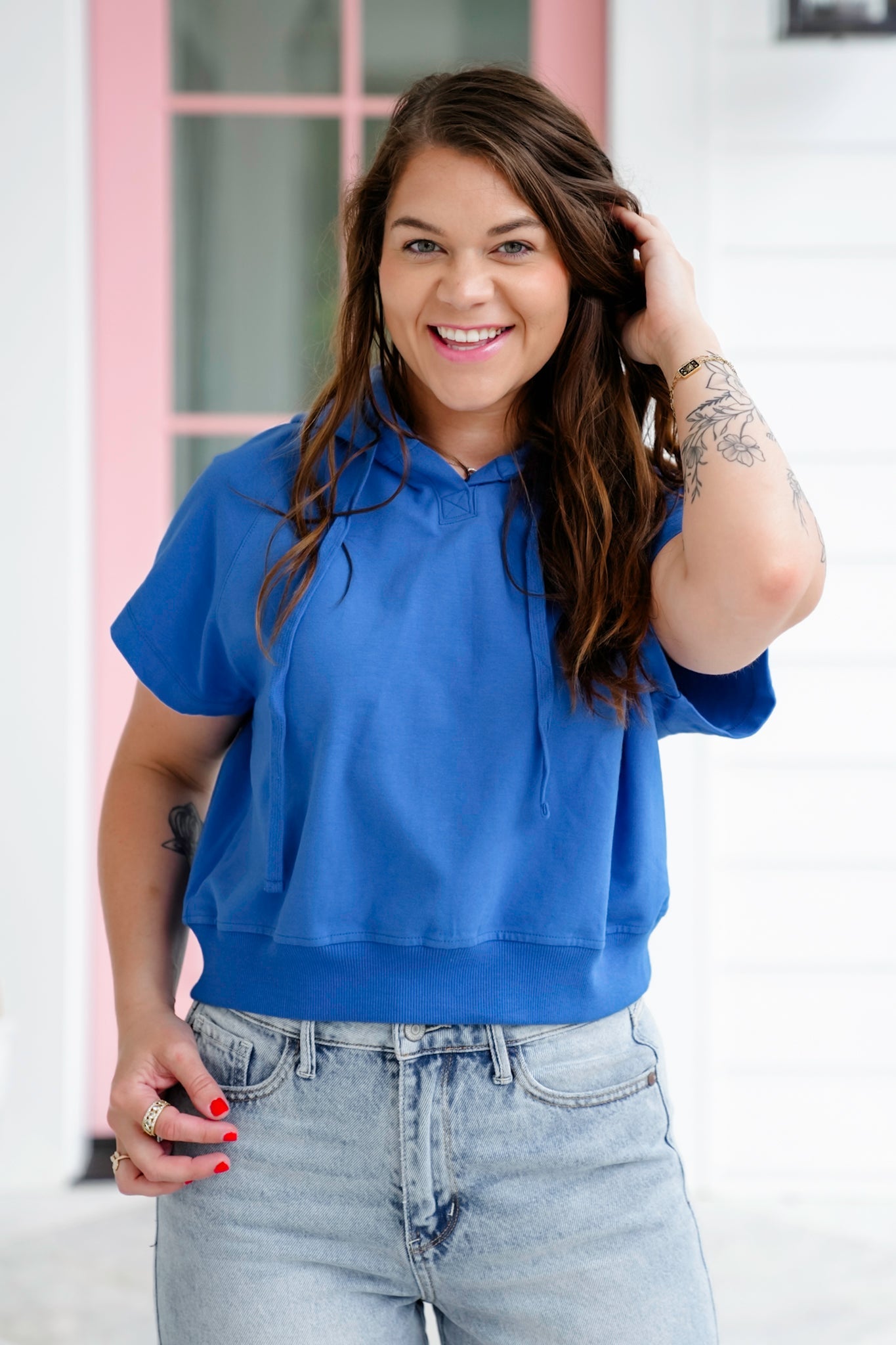 Plus/Reg Cotton Blend Short Sleeve Hoodie Top